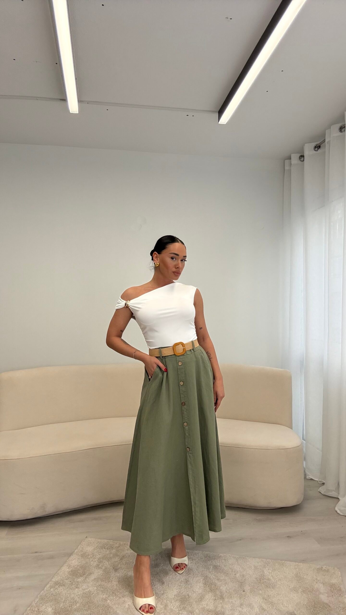 FUSTAN MAXI OVERSIZE ME DETAJ KONTRAST