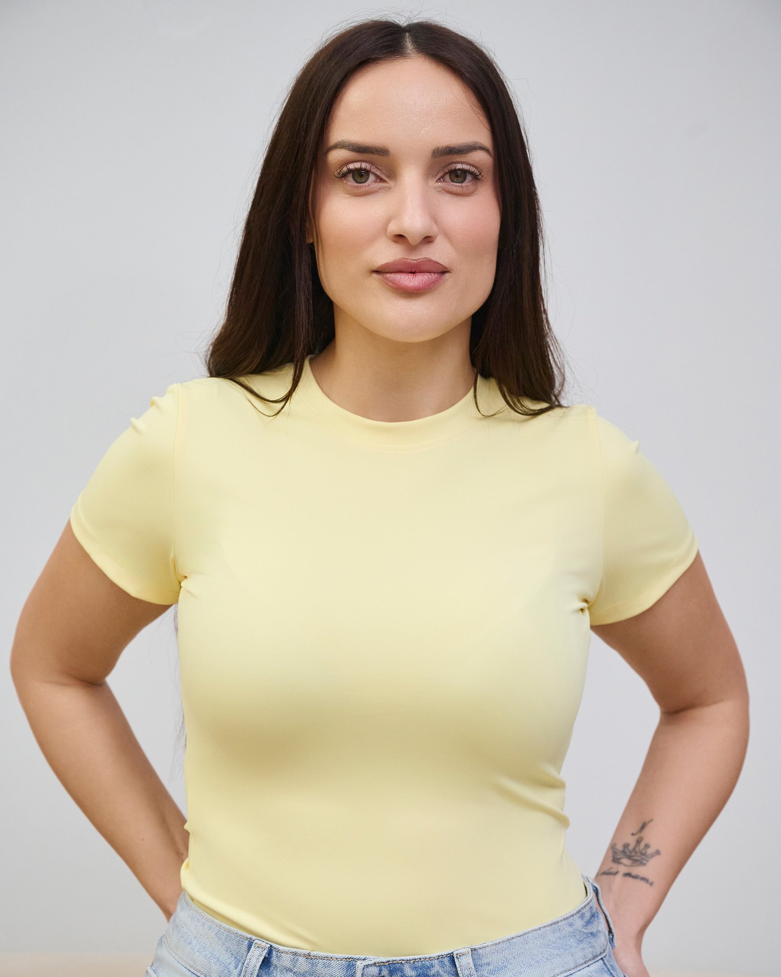 Bluzë basic me prerje klasike dhe material elastik ultra të butë, që përshtatet lehtë me trupin dhe ofron rehati gjatë gjithë ditës. Ideale për veshje të përditshme, kombinime casual apo layering modern. Një esencial garderobe për çdo sezon.