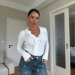 Bluzë e bardhë me mëngë të gjata dhe kopsa dekorative dhe material ribbed elastik është një zgjedhje perfekte për një look të përditshëm, por gjithmonë të sofistikuar. Modeli ka kopsat dekorative dhe detajet romantike në jakë, duke shtuar finesë dhe feminitet në një veshje minimaliste.