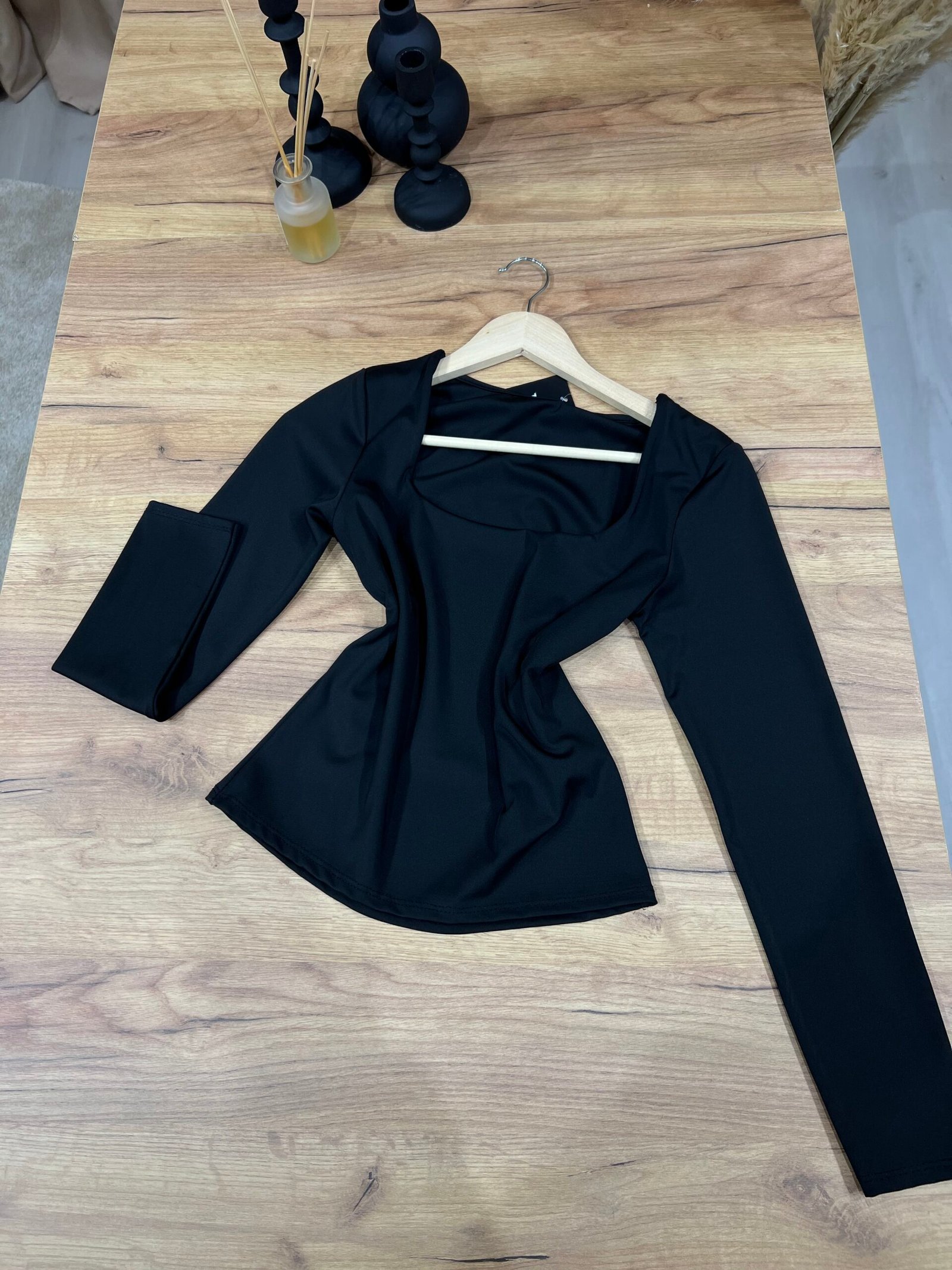 Bluzë elegante me jakë katrore dhe mëngë të gjata, që thekson linjat natyrale të trupit dhe krijon një siluetë të pastër, moderne dhe shumë femërore. Materiali i butë dhe elastik siguron rehati maksimale dhe përshtatje perfekte për kombinime ditore chic, zyrë apo layering elegant për mbrëmje. Një basic i rafinuar, esencial për çdo garderobë moderne.