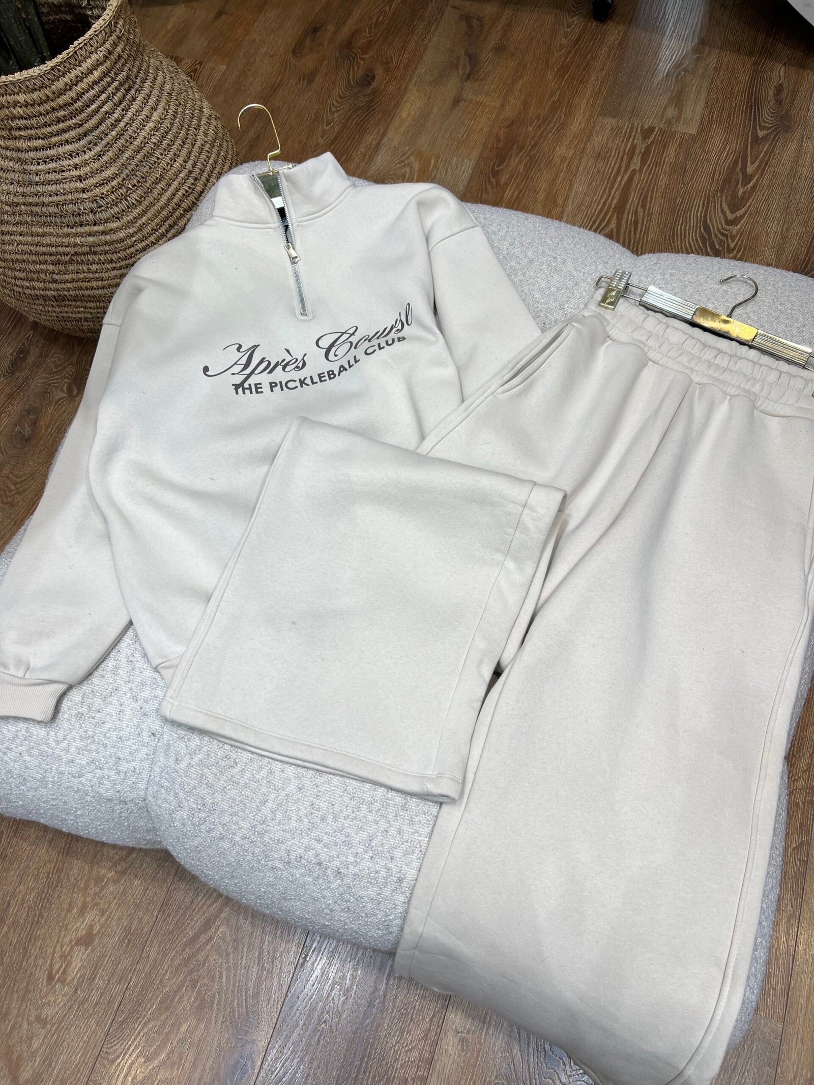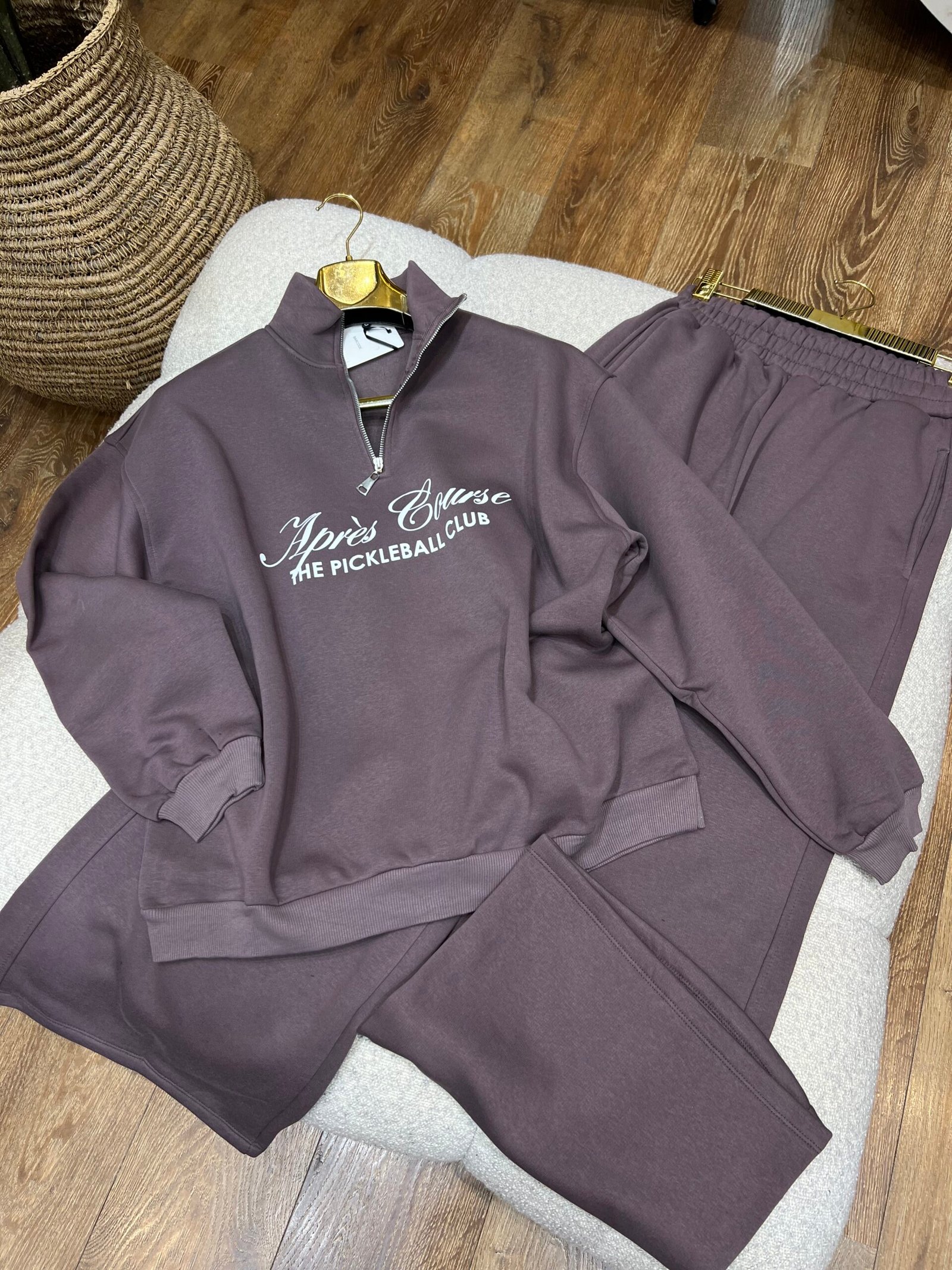Set komod dhe modern me pulovër me gjysmë-zinxhir dhe pantallona sportive, i përshtatur për një pamje casual dhe të kuruar gjatë ditës. Pulovra ka printim të përparmë që shton stil dhe veçanti, ndërsa prerja e lirshme garanton rehati maksimale. Pantallonat me bel elastik dhe formë praktike janë ideale për përditshmëri, udhëtime dhe momente relaksi.