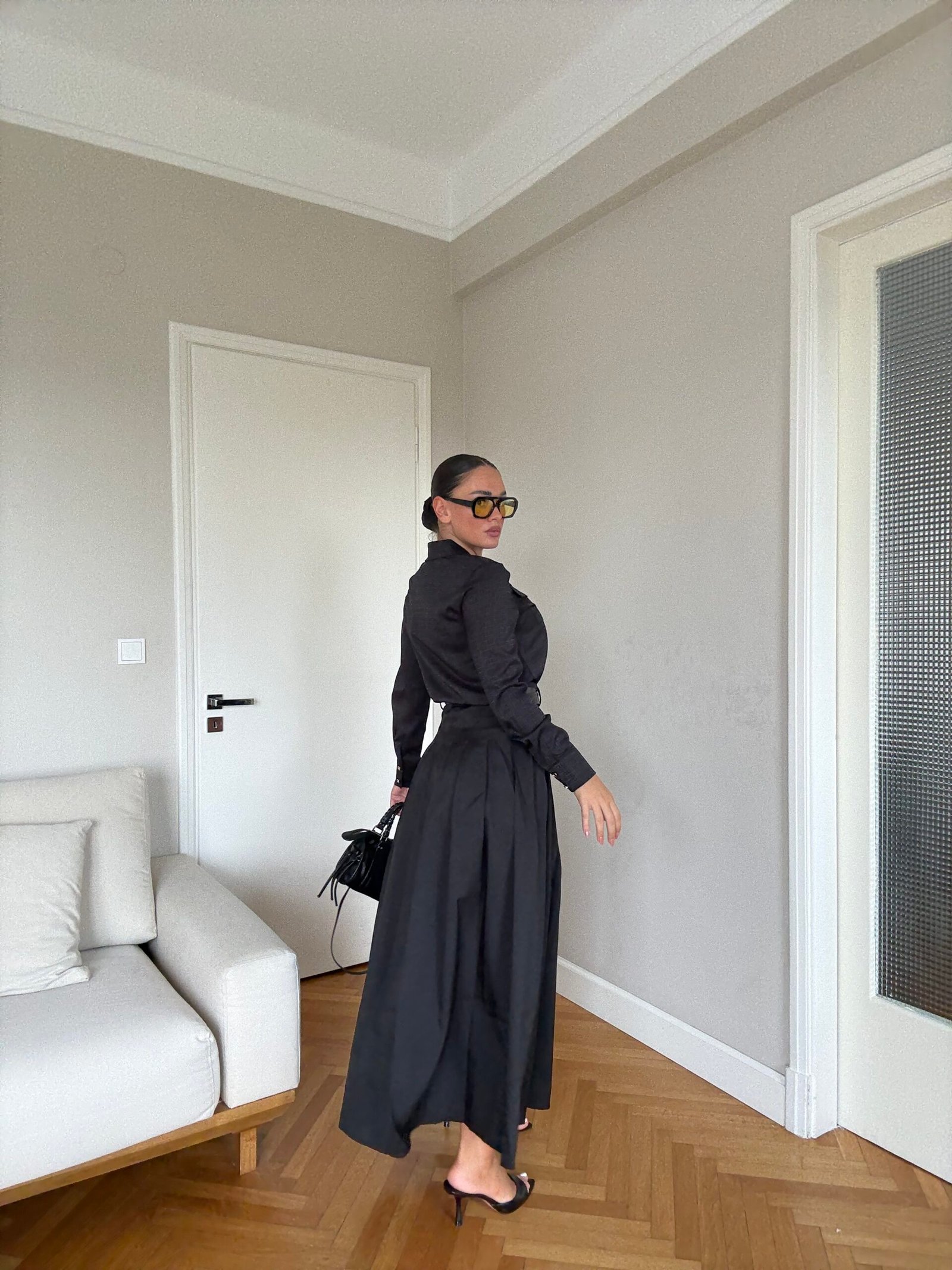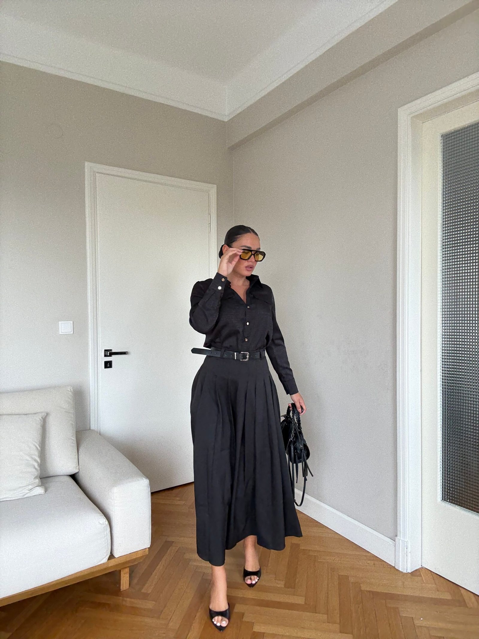 Fund elegant i plisuar në gjatësi maxi me rrip të rregullueshëm në bel. Model klasik dhe modern njëkohësisht, perfekt për kombinime chic me këmisha, bluza apo xhaketa në çdo sezon.
