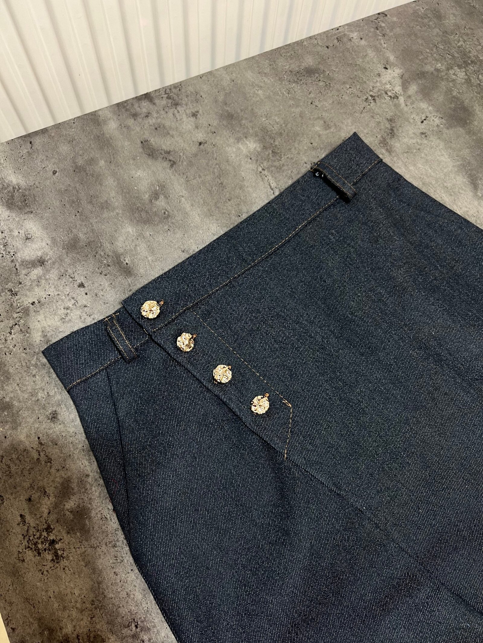Fund me dizajn modern dhe prerje asimetrike që krijon efekt vizual elegant. Detajet me kopsa dekorative në pjesën e përparme shtojnë një prekje luksoze, ndërsa materiali elastik siguron rehati dhe përshtatje perfekte me linjat e trupit.