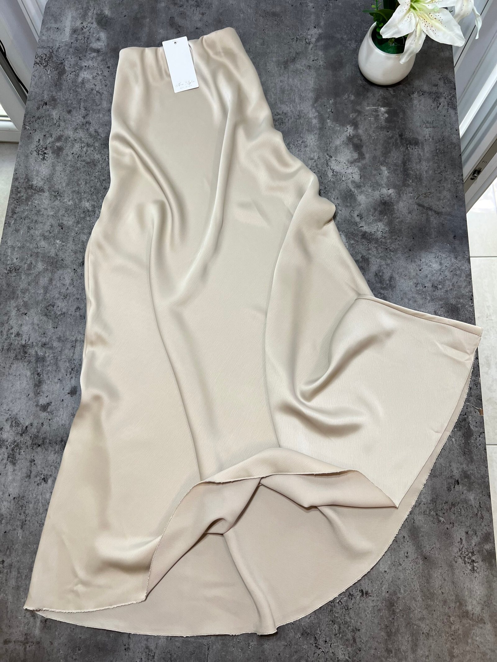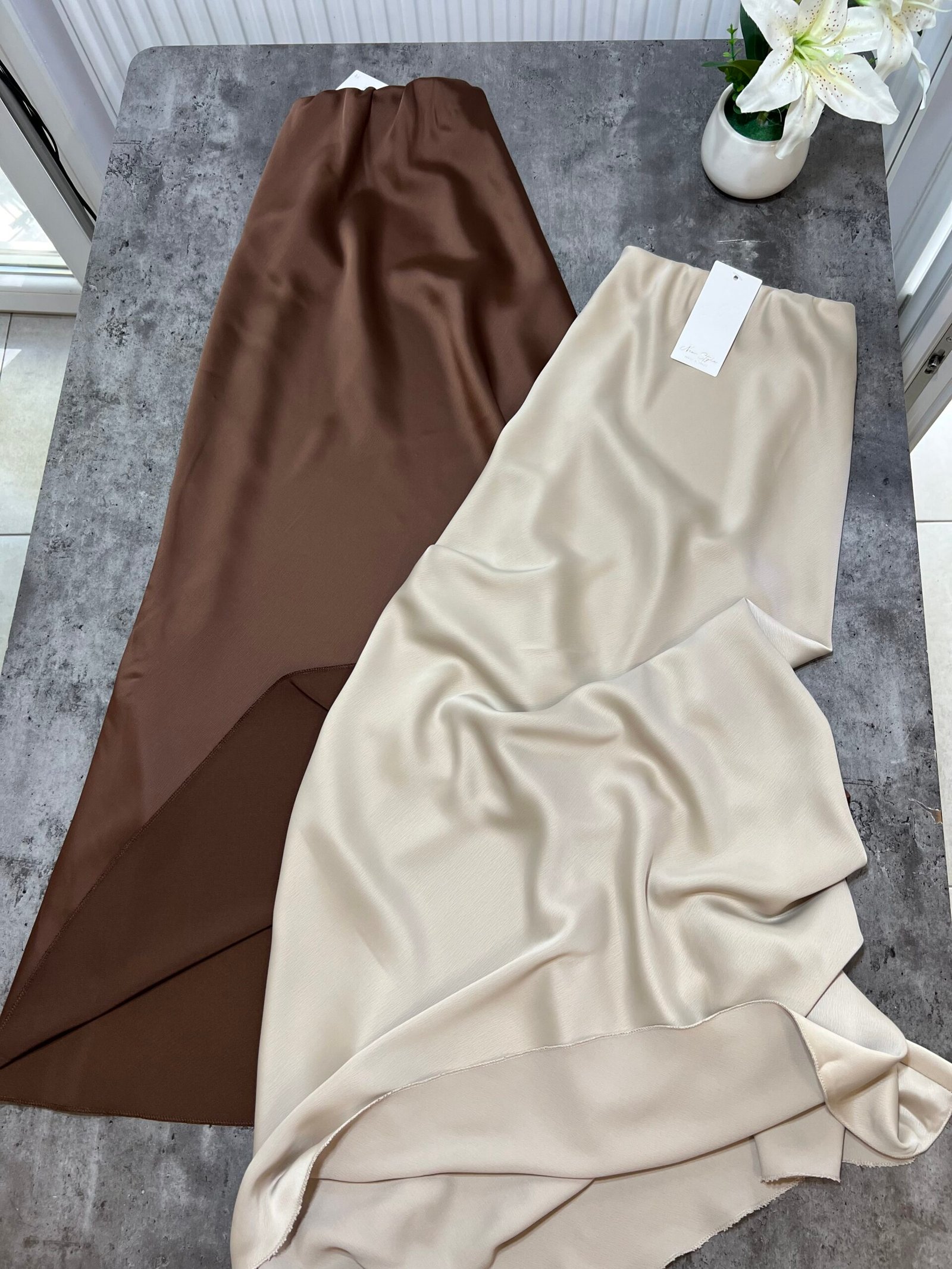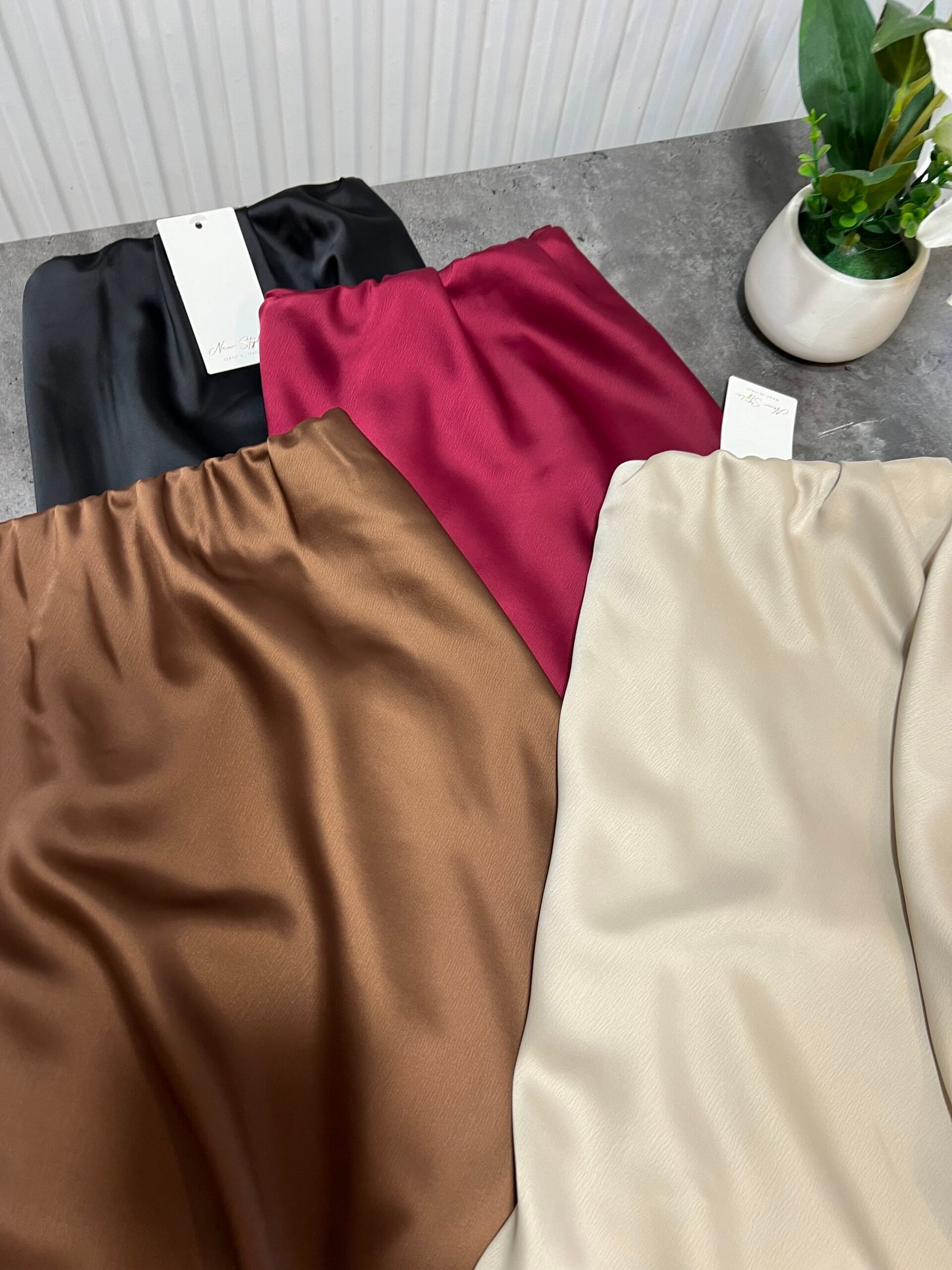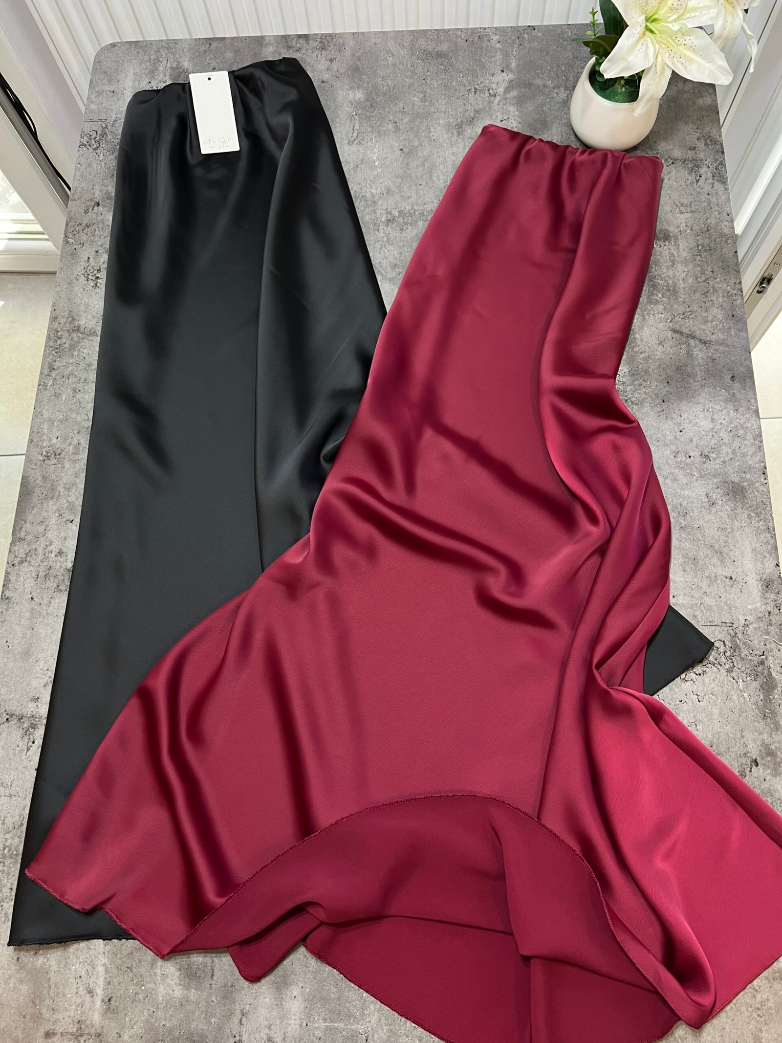 Ky fund i gjatë prej sateni me shkëlqim të lehtë sjell një pamje elegante dhe femërore që përshtatet në çdo sezon. Materiali i butë dhe i rrjedhshëm siguron rehati dhe një rënie perfekte, ndërsa dizajni minimalist e bën të lehtë për t’u kombinuar si me këmisha elegante, ashtu edhe me bluza apo triko për një look më casual.