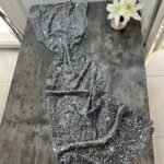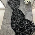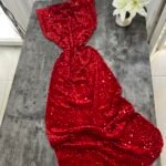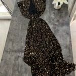 Me punim teminash. Me jakë të ngritur rreth qafës, me mbërthim kopsash pas. Shpinë e ekspozuar.