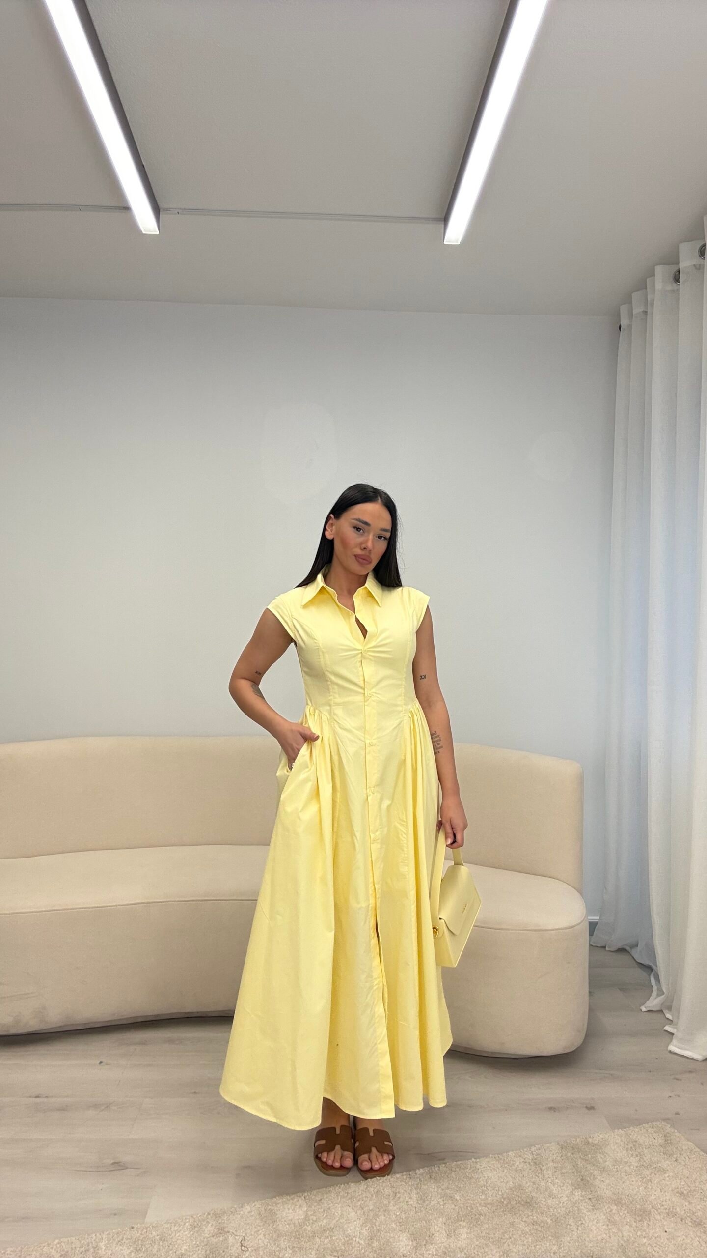 Fustan i gjatë me bust të punuar me teksturë elastike që përshtatet bukur me trupin dhe thekson belin. Fund i gjatë, i lehtë dhe rrjedhës që krijon lëvizje elegante, ideal për ditë vere, pushime dhe dalje të rafinuara.