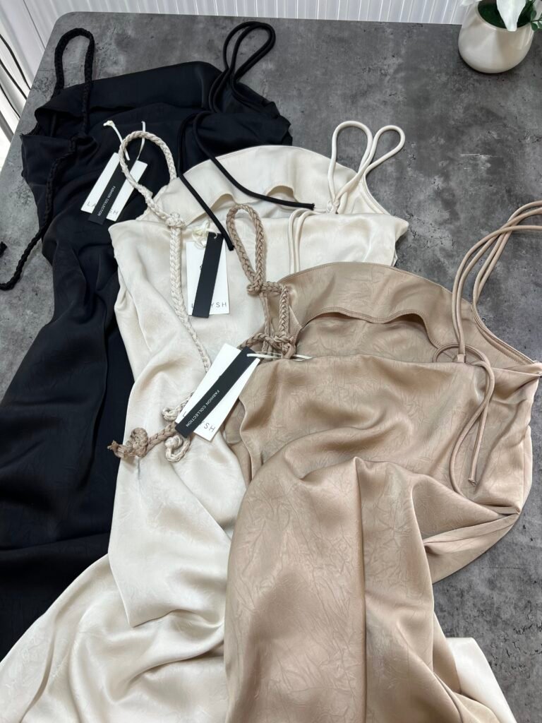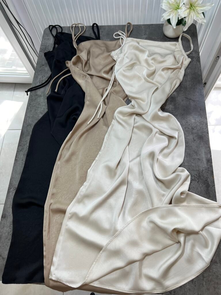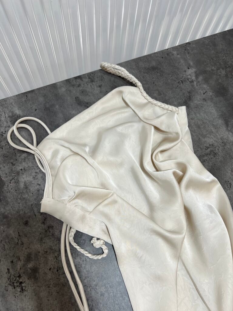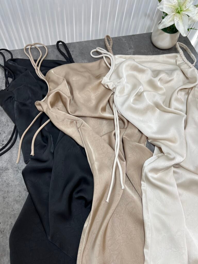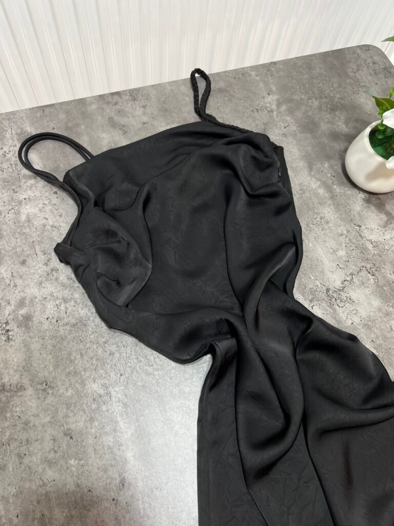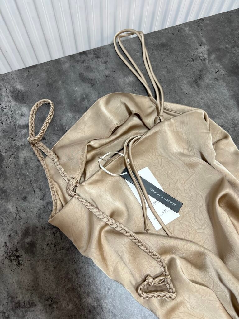 Ne material te plote, të derdhur, vjen ne prerje të drejtë sipër dhe i gjerë në pjesën fundore. Dopio copë në pjesën e sipërme. Rripa me gjatësi të aksesueshme.