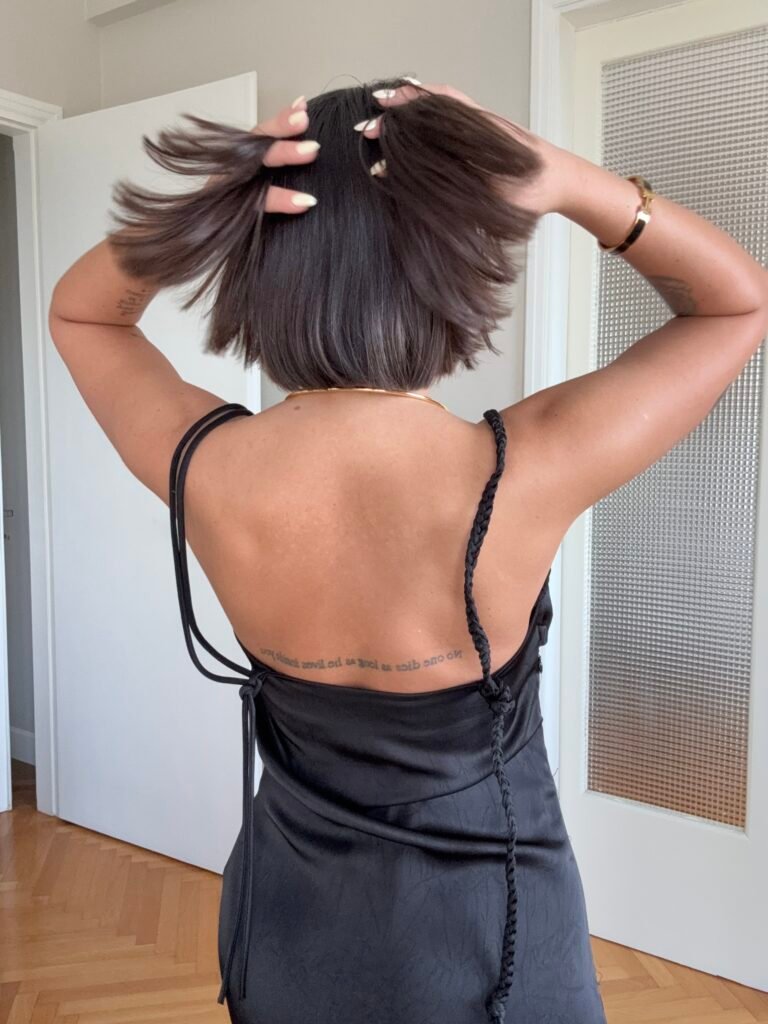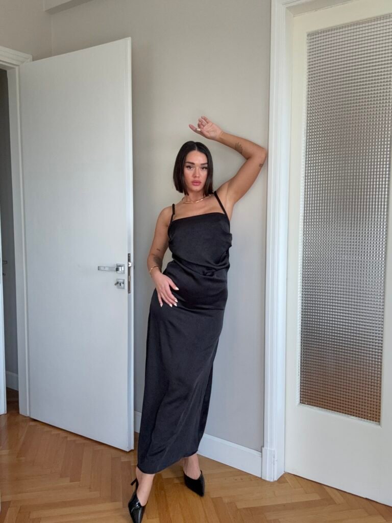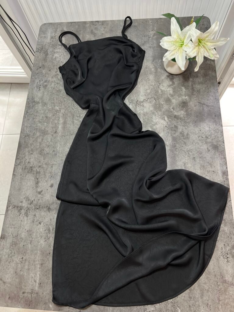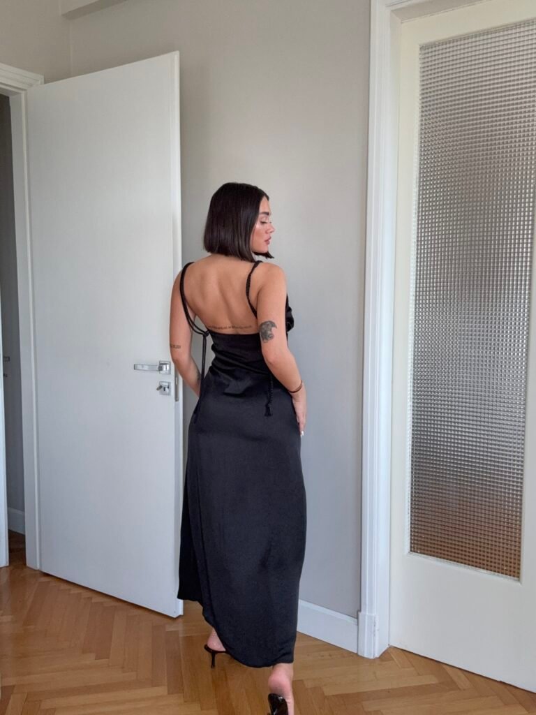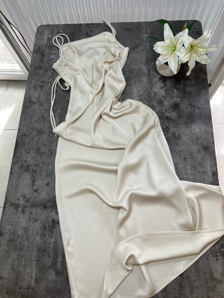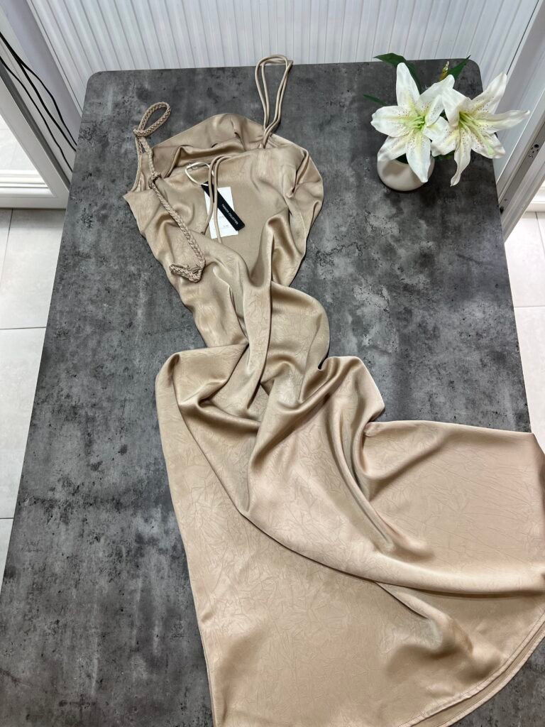Ne material te plote, të derdhur, vjen ne prerje të drejtë sipër dhe i gjerë në pjesën fundore. Dopio copë në pjesën e sipërme. Rripa me gjatësi të aksesueshme.