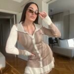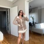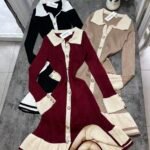 Në ndërthurje 2-ngjyreshe vjen me jakë të rregullt në formë V dhe pala në pjesën fundore.