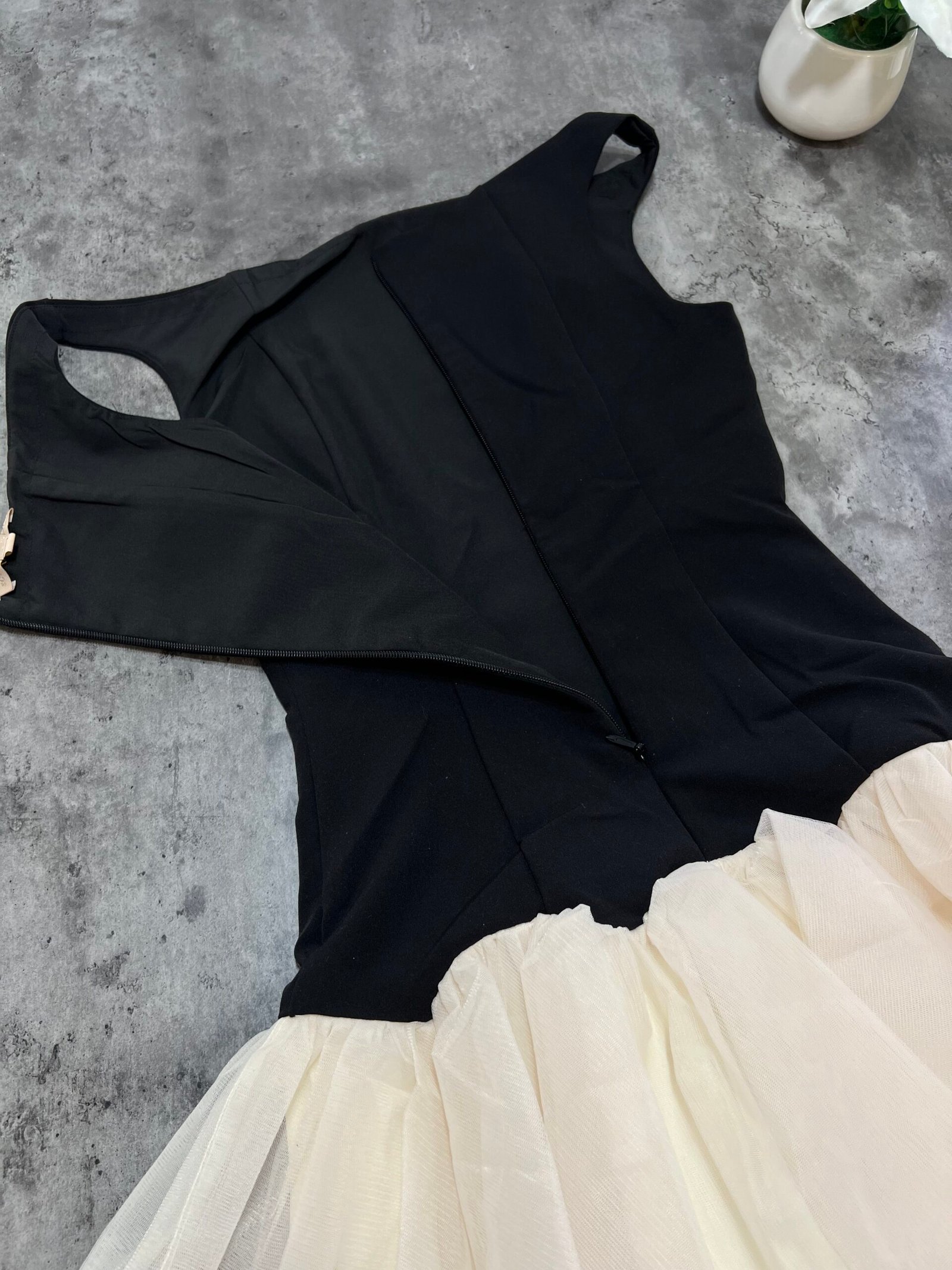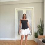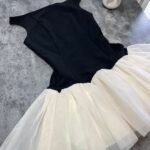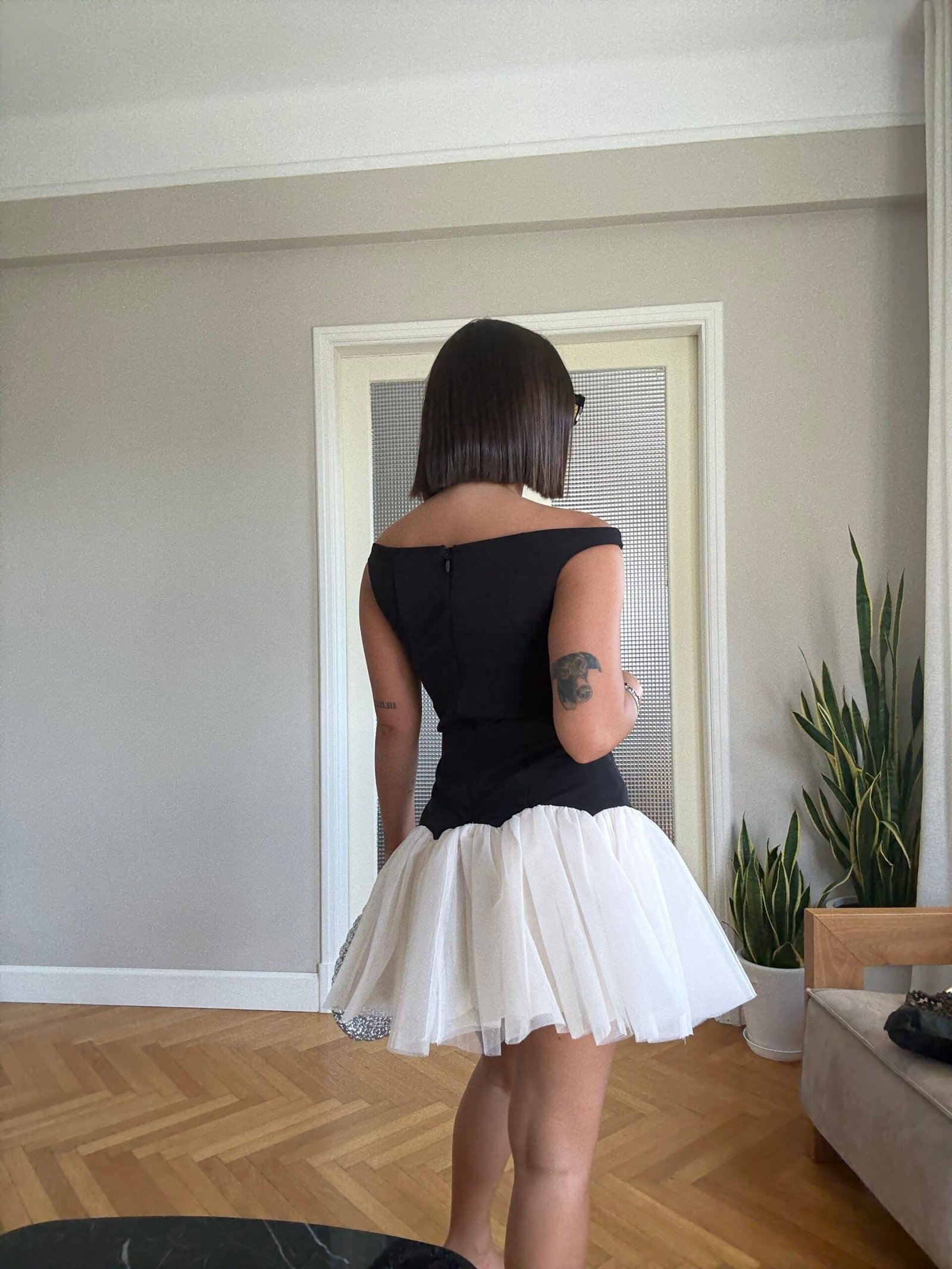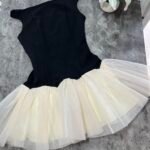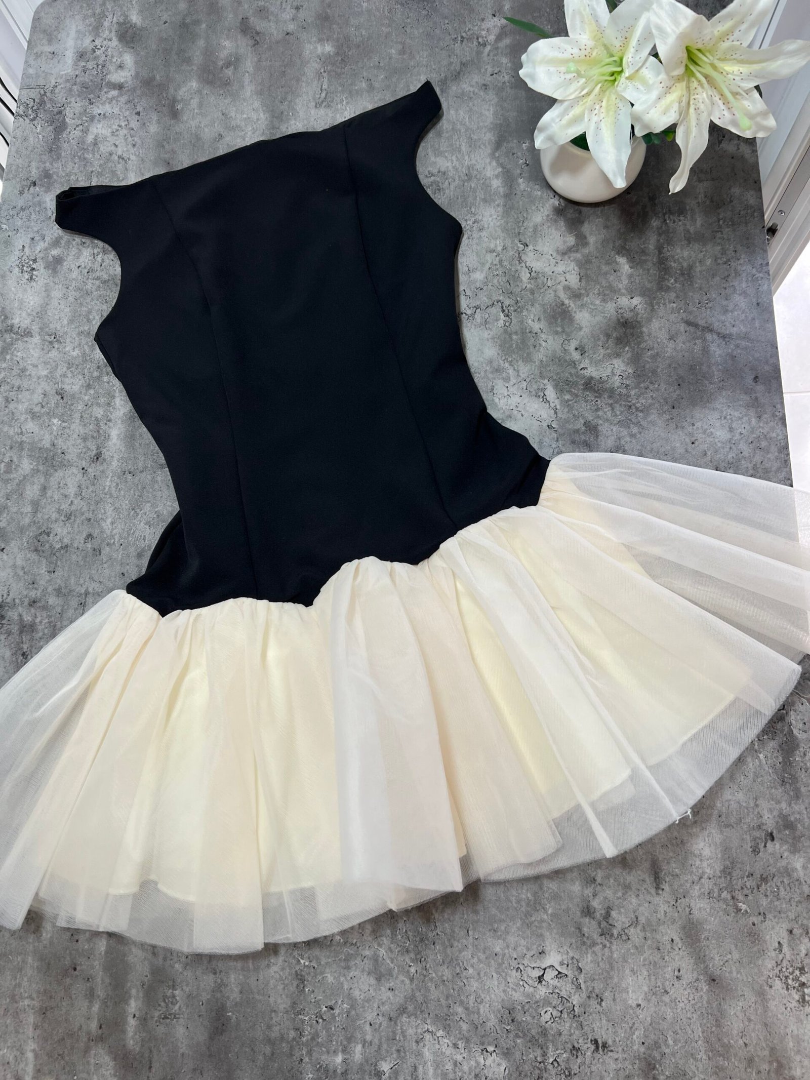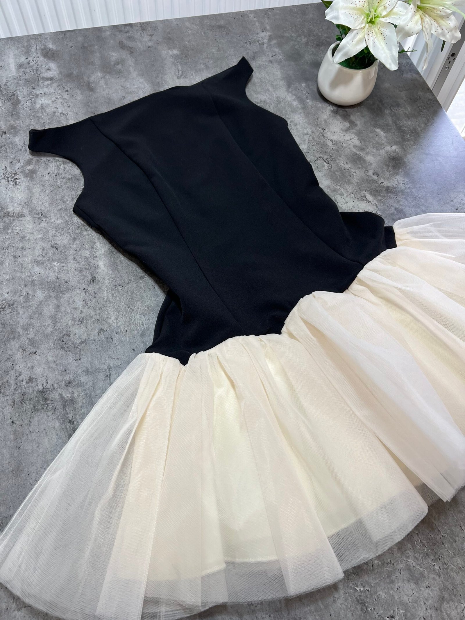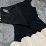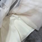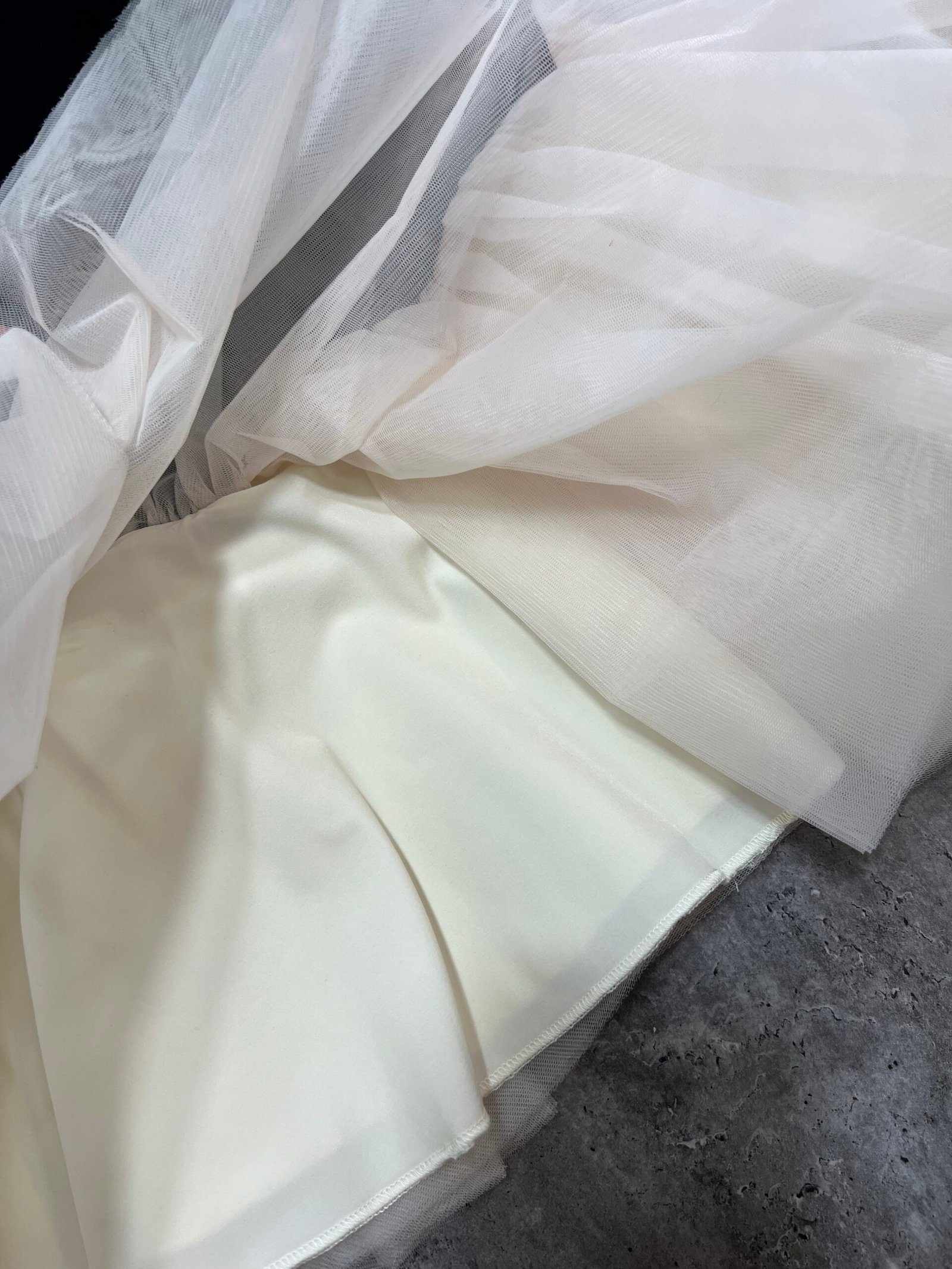 Në material të plotë të ngrirë, dopio cope me astar. Ekspozon supet, thekson silueten, dhe vjen i fryre në pjesën fundore me punimin e copës së ngrirë të tylit.