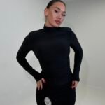 Fustan mini në ngjyrë të zezë me prerje të ngushtë, mëngë të gjata dhe jakë të lartë, i dizajnuar për një siluetë të formuar dhe shumë elegante. Detaji kristal dekorativ në pjesën e fundit shton shkëlqim dhe efekt glam perfekt për mbrëmje, evente dhe festa. Material elastik që përshtatet bukur me trupin dhe krijon një pamje moderne, sensuale dhe të rafinuar.