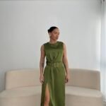 Fustan midi satin që i jep look-ut një ndjesi luksi të qetë. Prerja e drejtë balancohet me rripin në bel që thekson siluetën, ndërsa çarja anësore shton sensualitet të kontrolluar dhe lëvizje elegante. Detaji me dantellë në fund e përfundon me një prekje delikate dhe shumë femërore, perfekt për një stil classy që bie në sy pa u sforcuar.