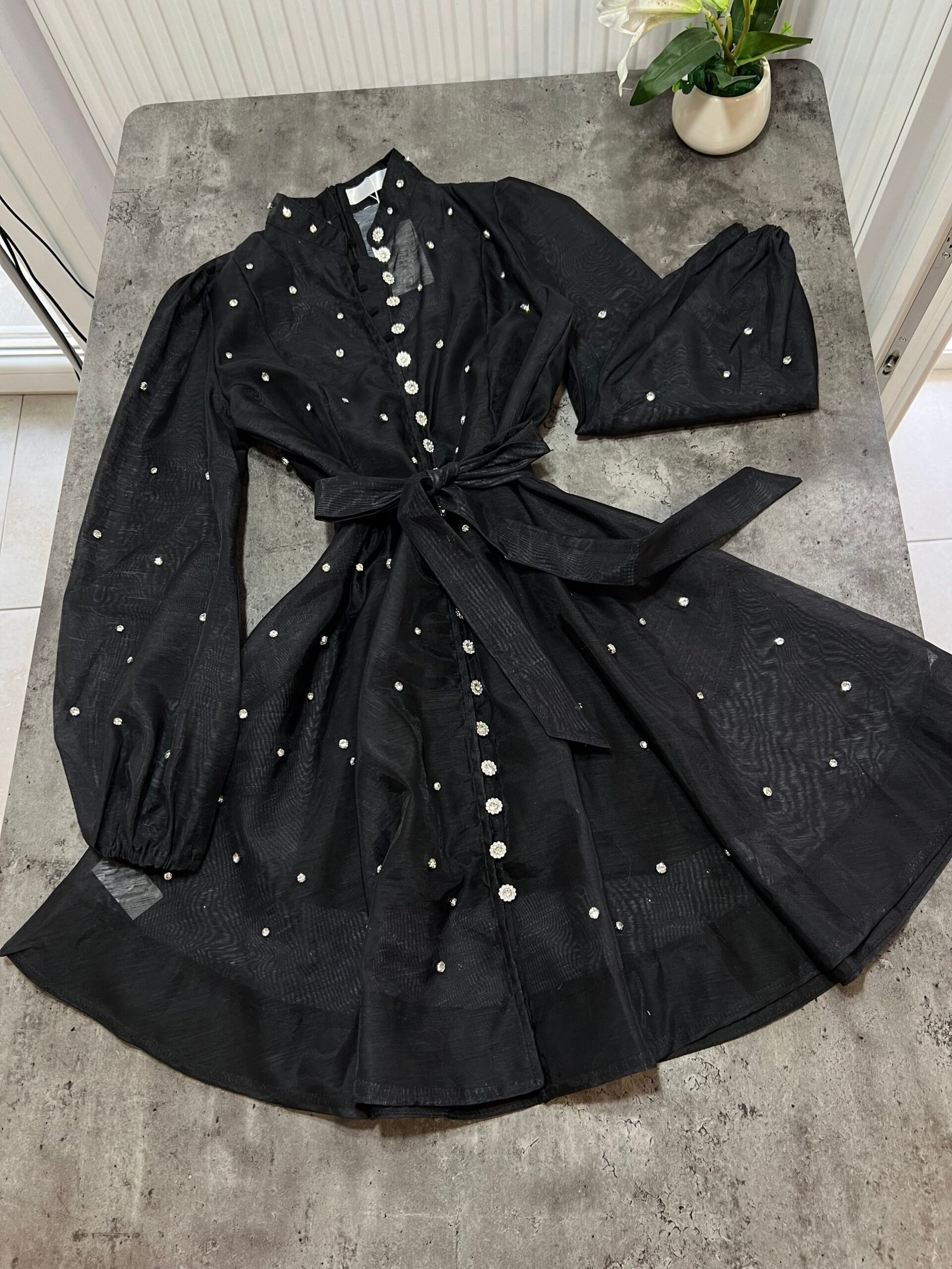 Vjen me 2 pjesë. Pjesa e astarit ne trajtë kanatjere të gjatë e ndarë nga pjesa e sipërme. Lart tyl i ngrirë me punim gurash te vegjël. Me lidhese në bel. Krahë të gufuar me llastik në pjesën e duarve. Me kopsa me gura përgjate gjithë gjatësisë. Thekson pjesën e bustit, qëndron me pala të ngrira dhe me volum në pjesën fundore.