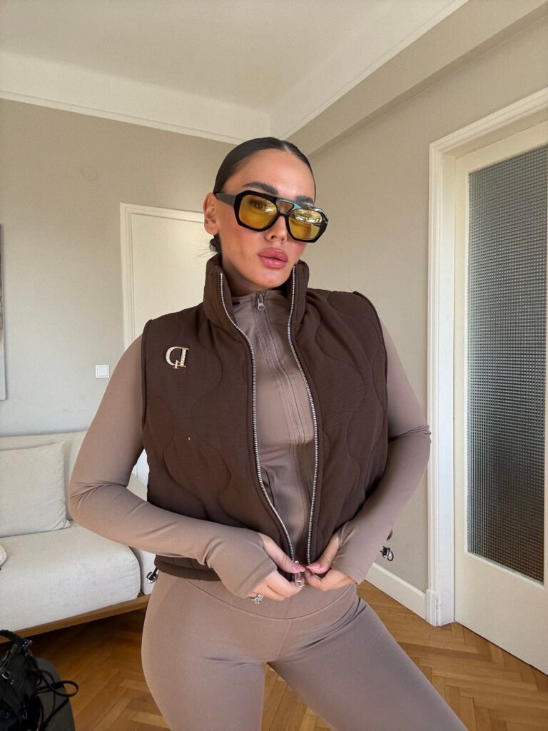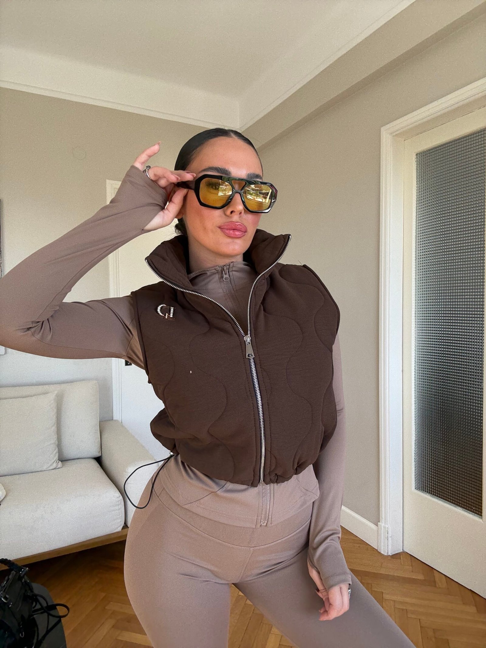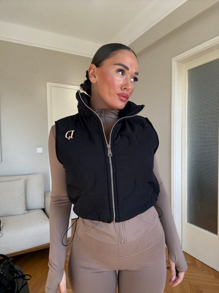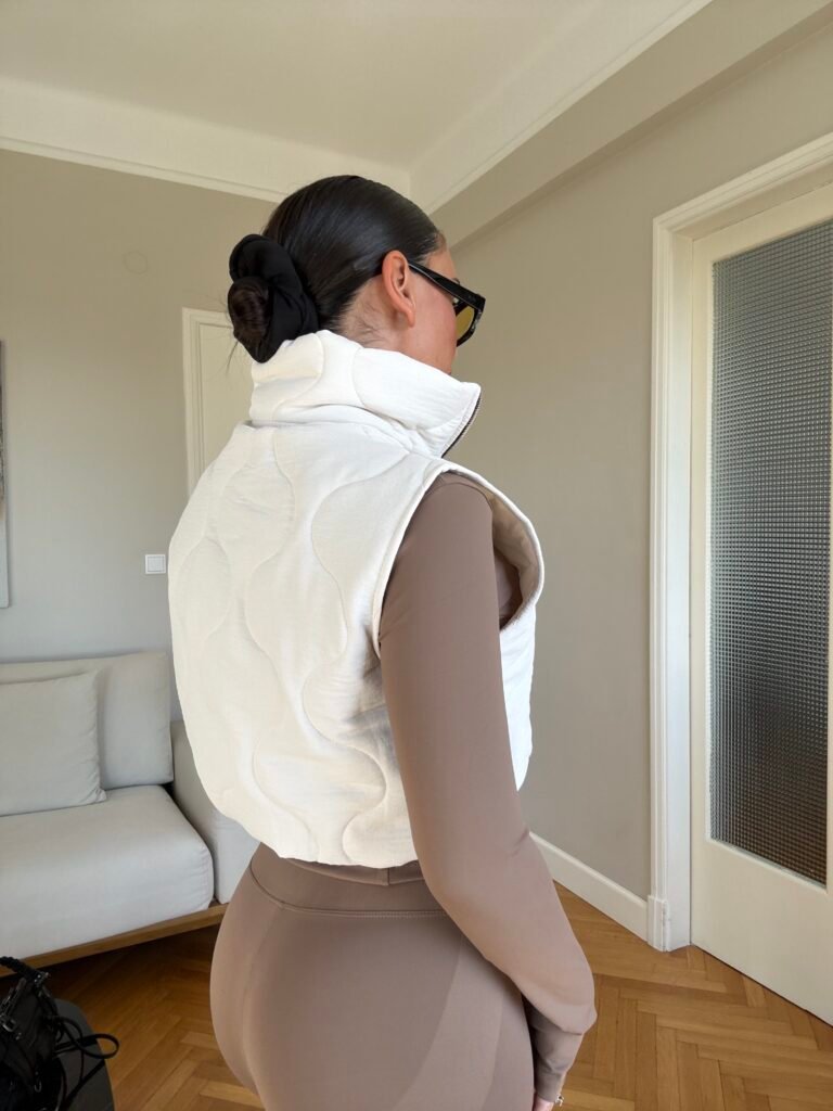 Jelek i shkurtër i mbushur me dizajn quilted dhe mbyllje me zinxhir, që sjell një pamje sportive dhe moderne njëkohësisht. Praktik dhe i rehatshëm për veshje shtesë gjatë ditëve të freskëta, duke ofruar ngrohtësi pa kufizuar lëvizjen. Me prerje të thjeshtë dhe elegante, është zgjedhja ideale për kombinime urbane dhe casual.