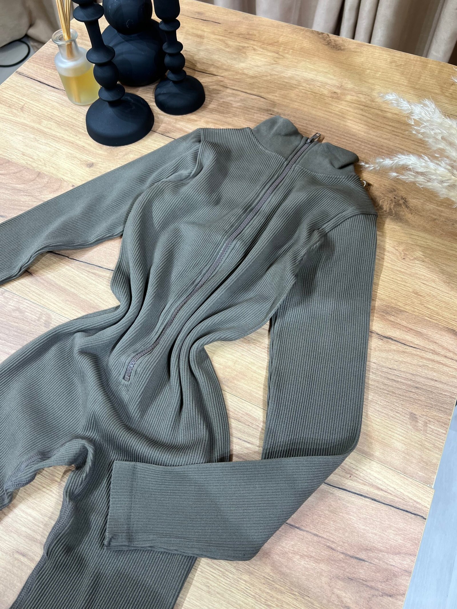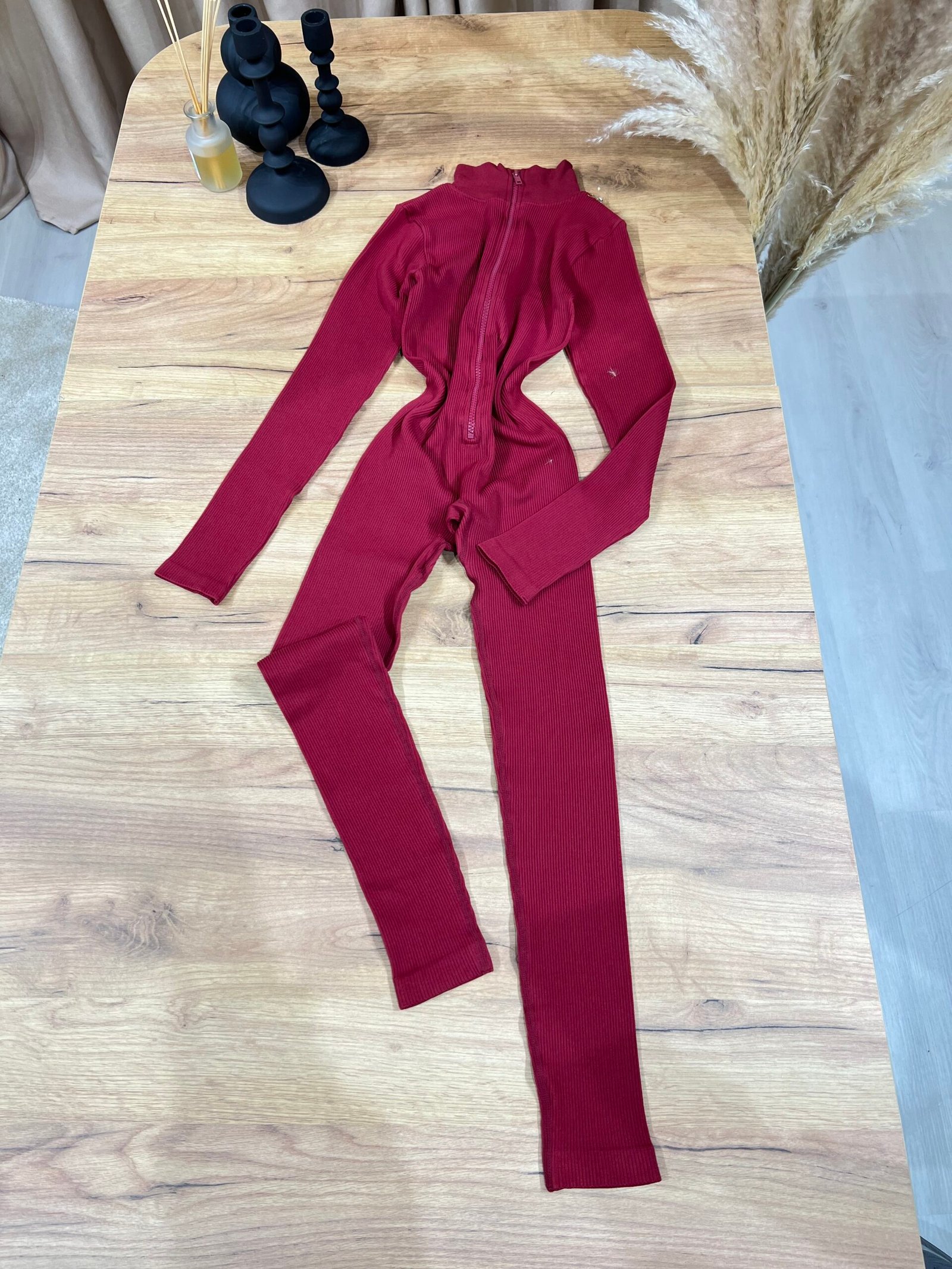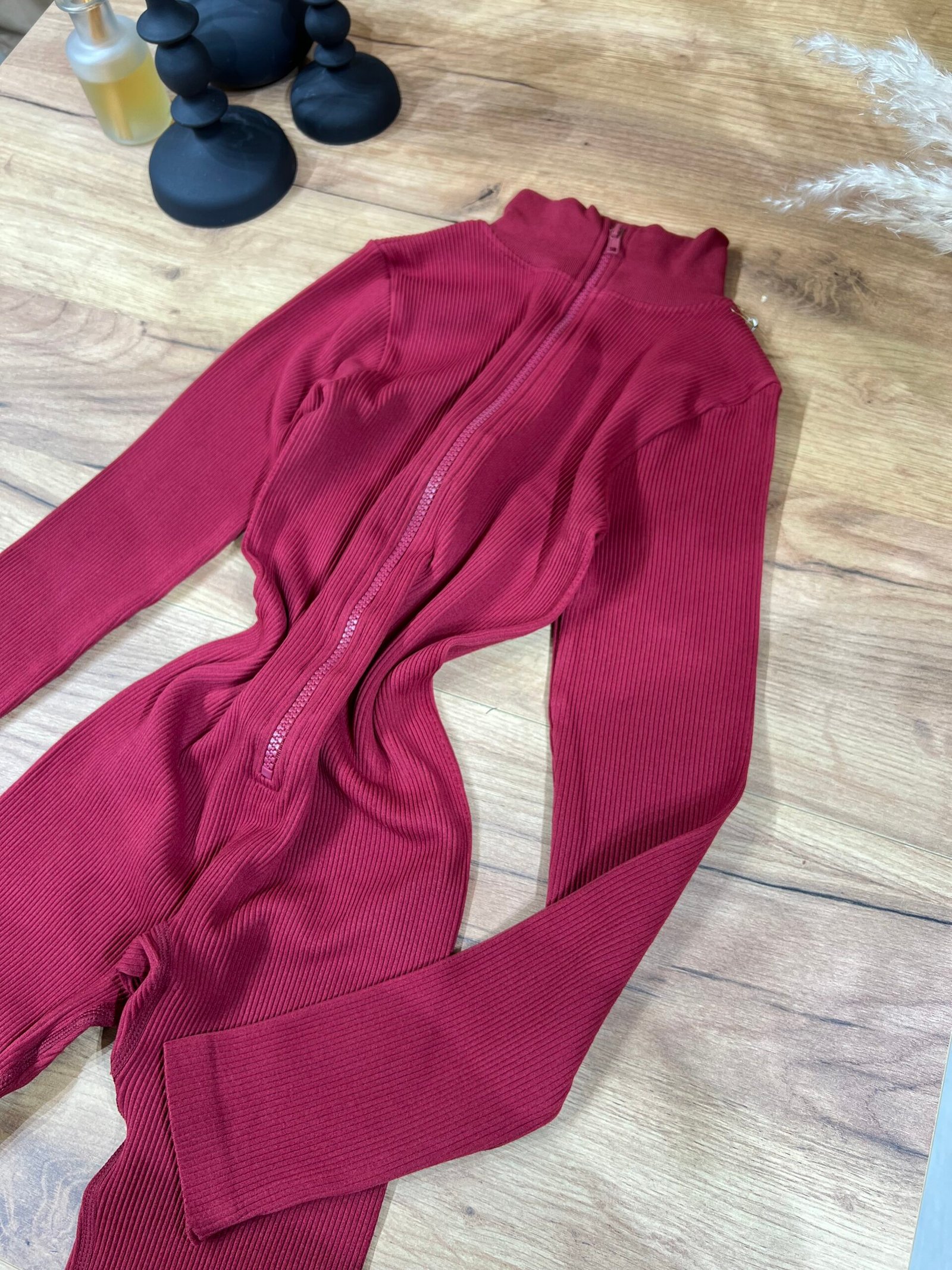 Jumpsuit modern me material ribbed elastik, prerje që përshtatet perfekt pas trupit dhe zinxhir përpara që thekson siluetën. Dizajni minimal me jakë të lartë krijon një look clean, sport-chic dhe shumë aktual. Ideal për veshje të përditshme, udhëtime, kombinime casual urbane apo stil athleisure me elegancë të thjeshtë.