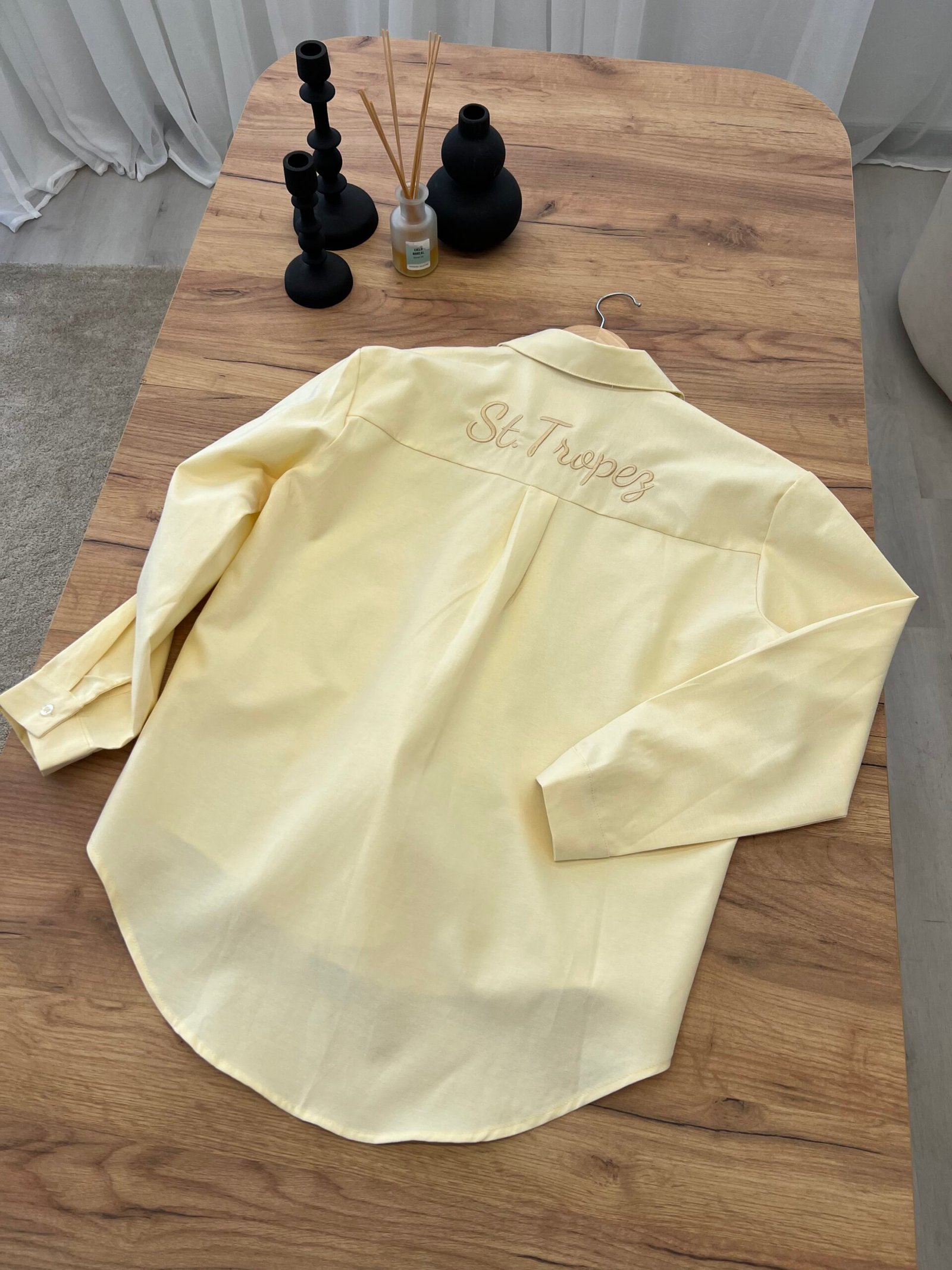 Këmishë elegante me prerje të lirshme dhe qëndisje delikate që i japin një prekje unike dhe moderne. Material i lehtë që bie bukur në trup, ideale për kombinime casual chic ose veshje të kuruara të përditshme. Zgjedhje perfekte për stil minimalist me karakter.