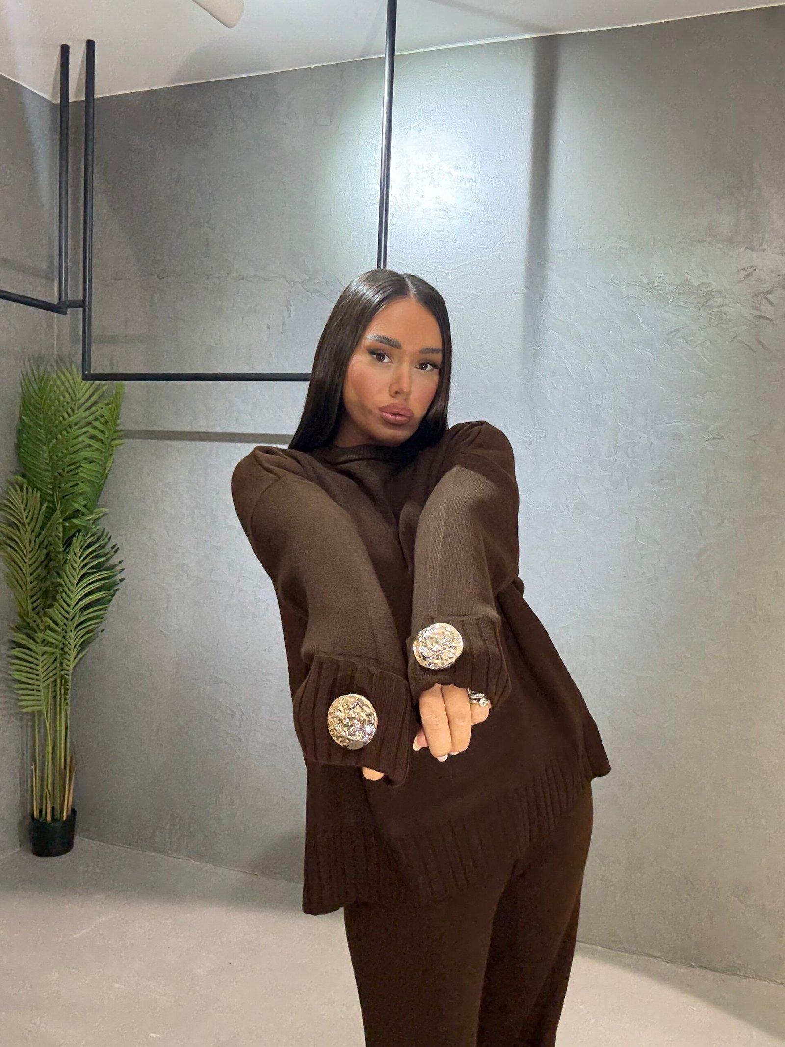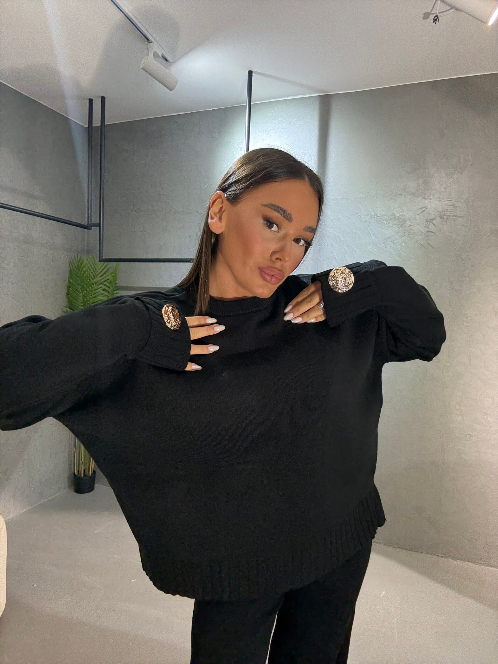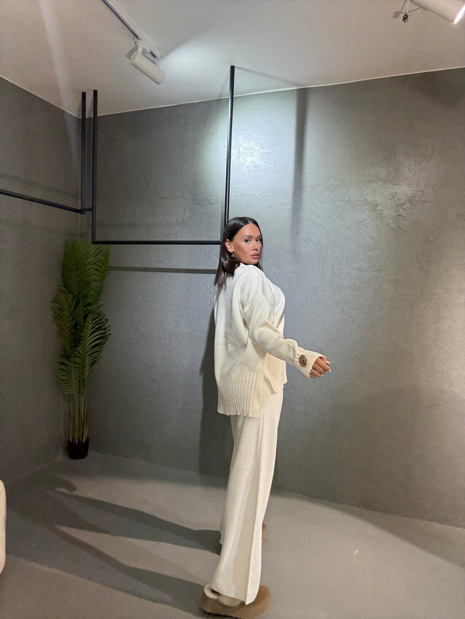 Kostum i butë dhe elegant me prerje komode që ofron stil dhe rehati në çdo moment të ditës. Trikoja ka detaje dekorative me kristale në mëngë për një prekje luksi diskret, ndërsa pantallonat me linja të pastra sigurojnë një pamje të sofistikuar dhe të përditshme njëkohësisht. Një zgjedhje perfekte për kombinime minimaliste dhe moderne.