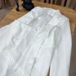 Material me rënie të bukur dhe strukturë që mban formën, duke krijuar një look power-dressing feminin dhe modern.