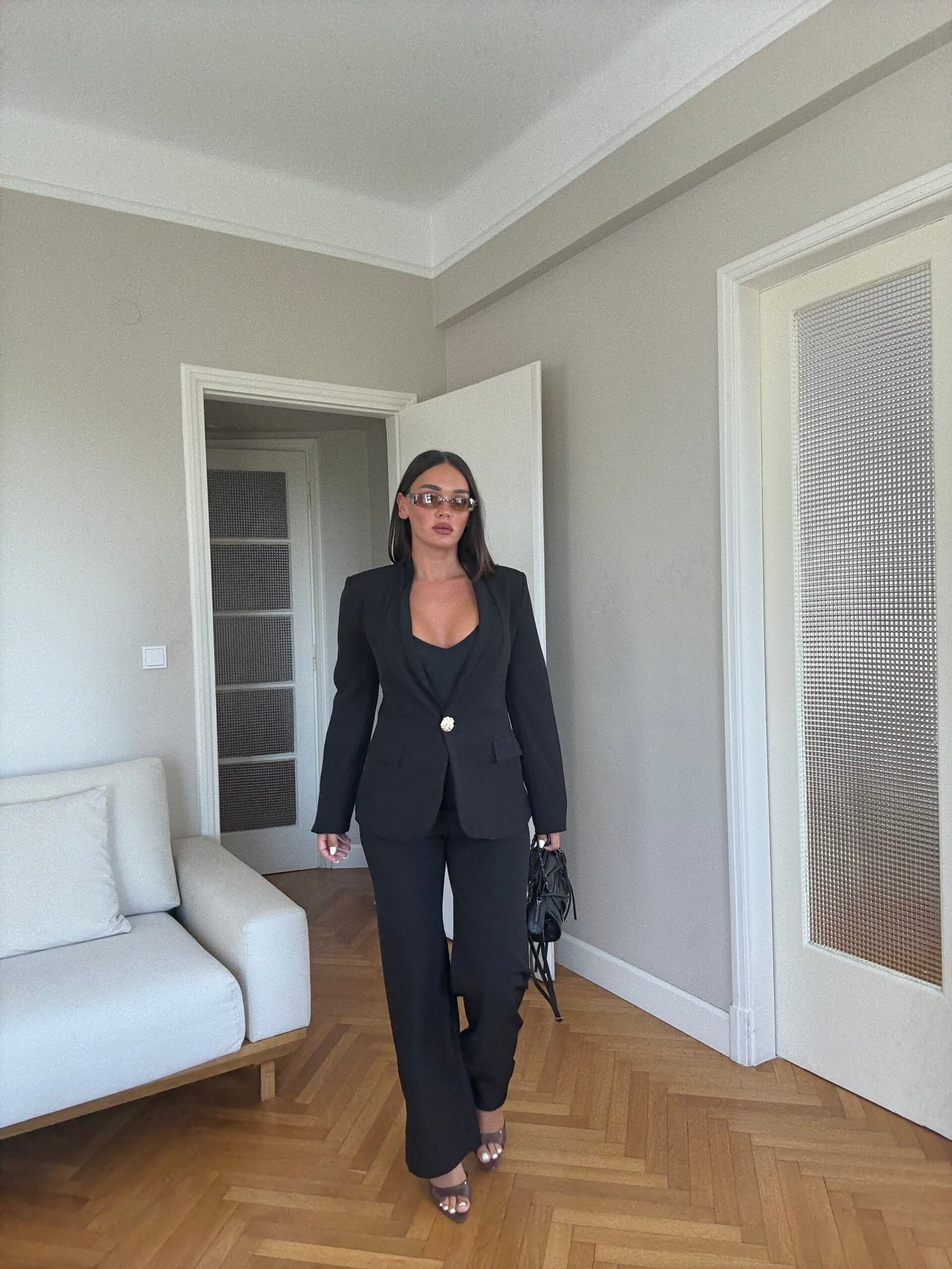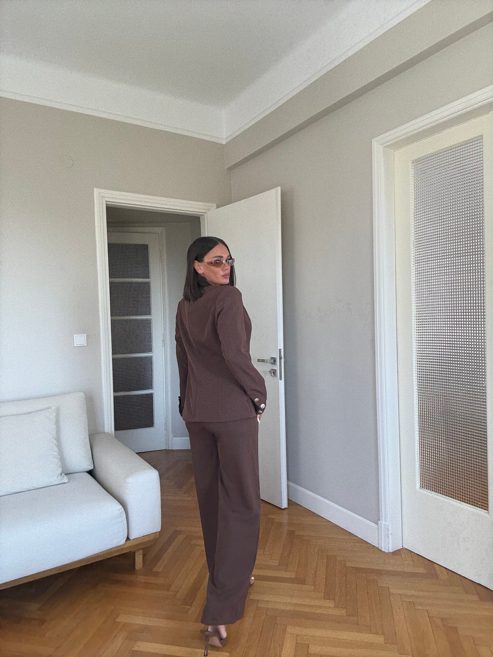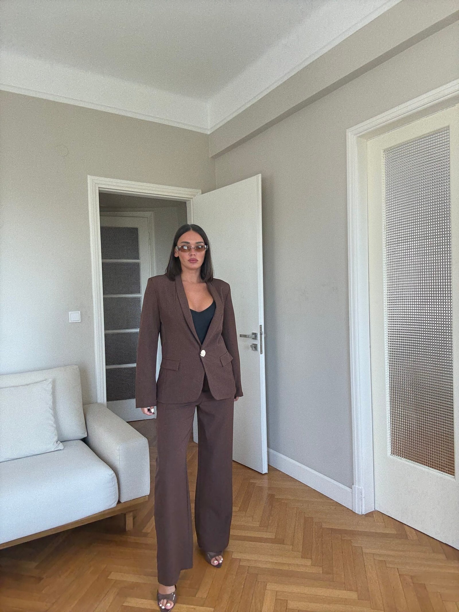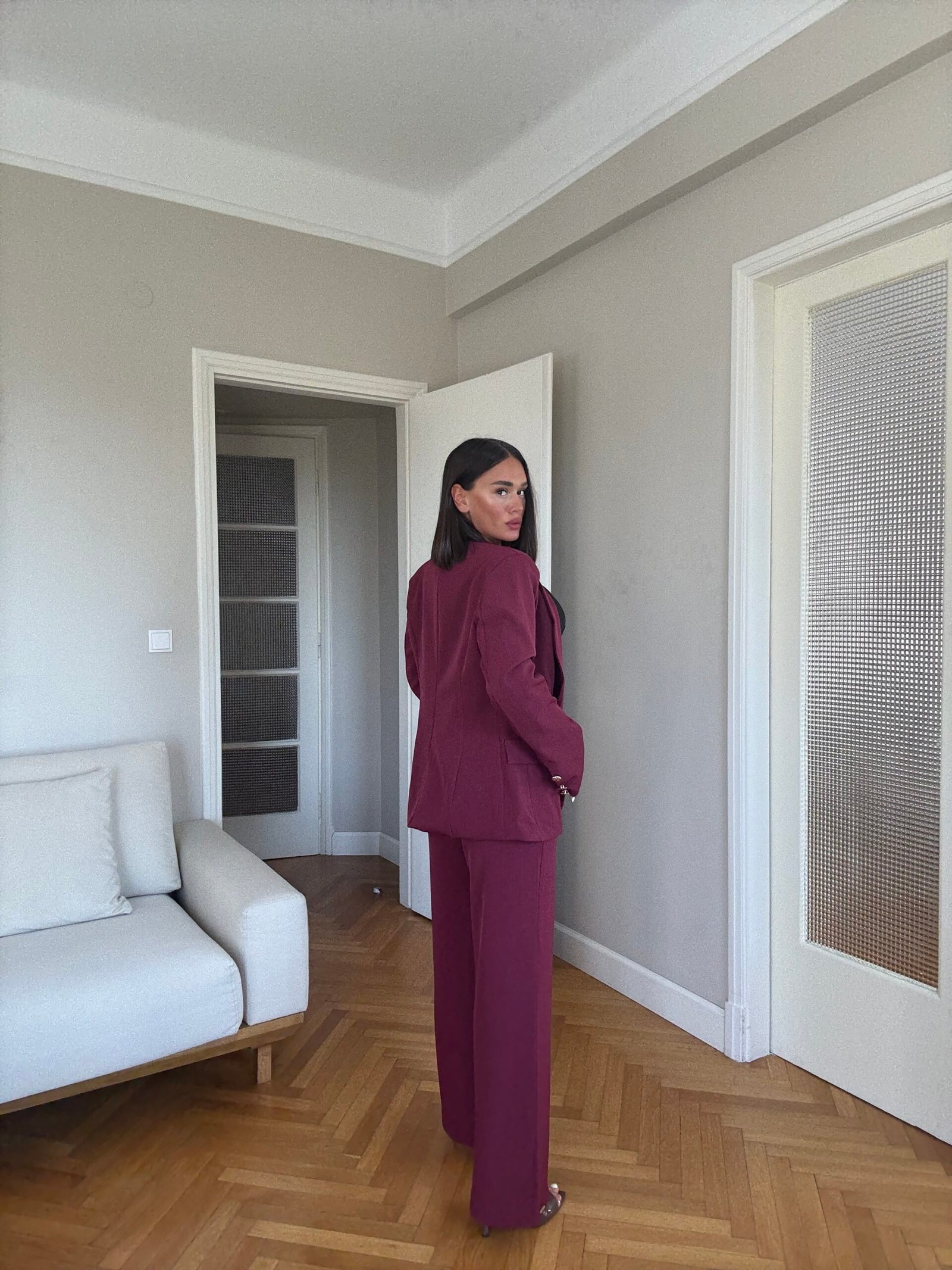 Ky kostum dy pjesësh për femra është kombinimi perfekt mes elegancës dhe stilit modern. Me një xhaketë të strukturuar me një kopse dhe pantallona me këmbë të gjera, ky set krijon një siluetë të gjatë, fine dhe profesionale. Ideale si kostum zyre për femra, për evente formale apo për dalje të përditshme me stil, ky model është i gjithanshëm dhe gjithmonë në trend.