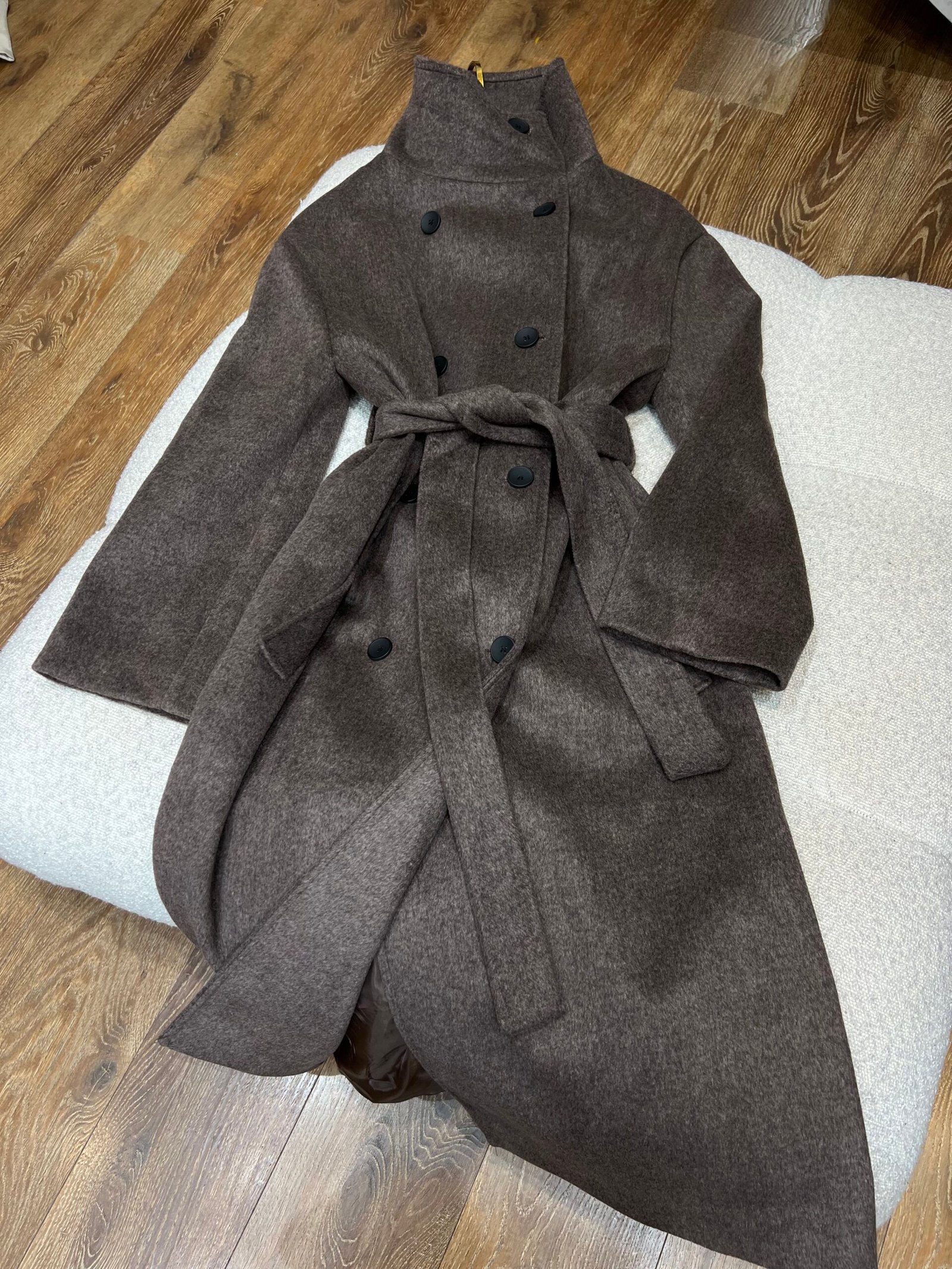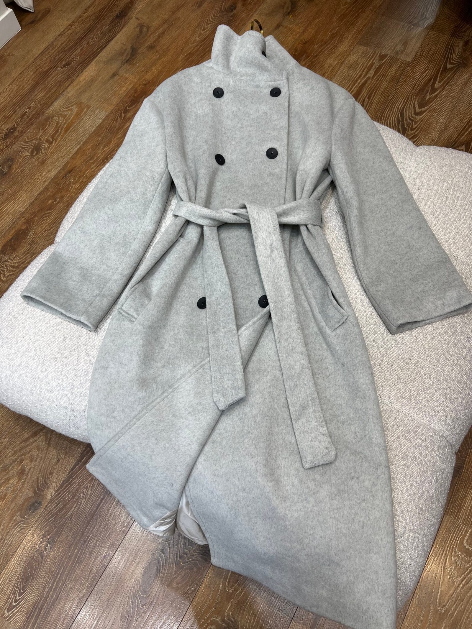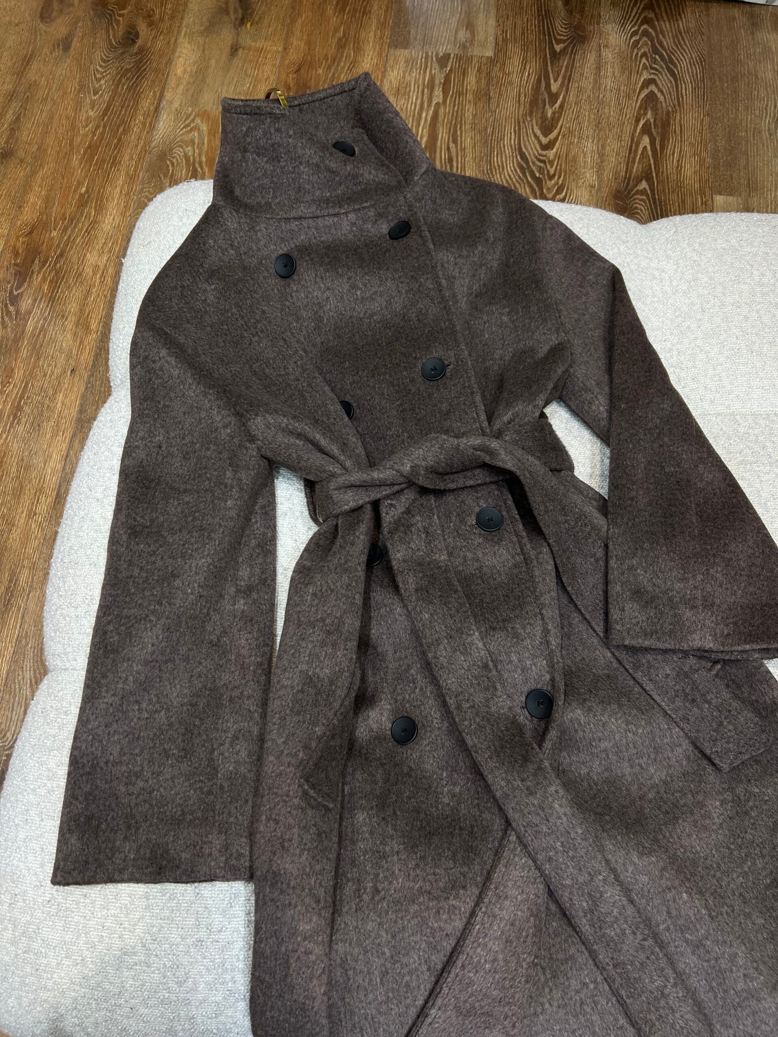 Pallto e ngrohtë dhe elegante me prerje klasike, e punuar me material të butë që rri bukur në trup. Modeli me kopsa dhe rripin në bel krijon siluetë të rregullt dhe shumë femërore, ndërsa gjatësia e gjatë e bën ideale për përditshmëri dhe kombinime chic në sezonin e ftohtë. Një zgjedhje e sigurt për stil të pastër dhe të kuruar.