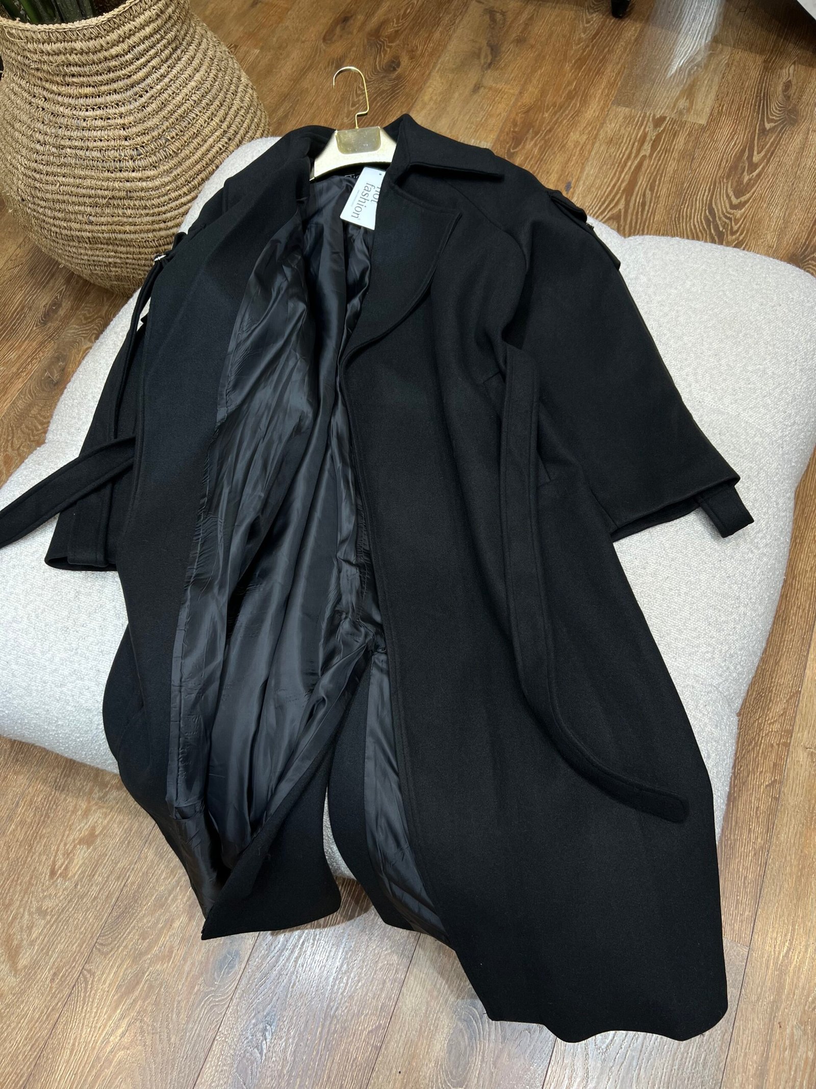 Pallto e gjatë elegante me dizajn modern dhe detaje të punuara që i japin një pamje të dallueshme dhe të rafinuar. Rripi në bel krijon një siluetë të formësuar dhe femërore, ndërsa materiali cilësor siguron ngrohtësi. Një pallto që sjell stil dhe finesë pa mundim.