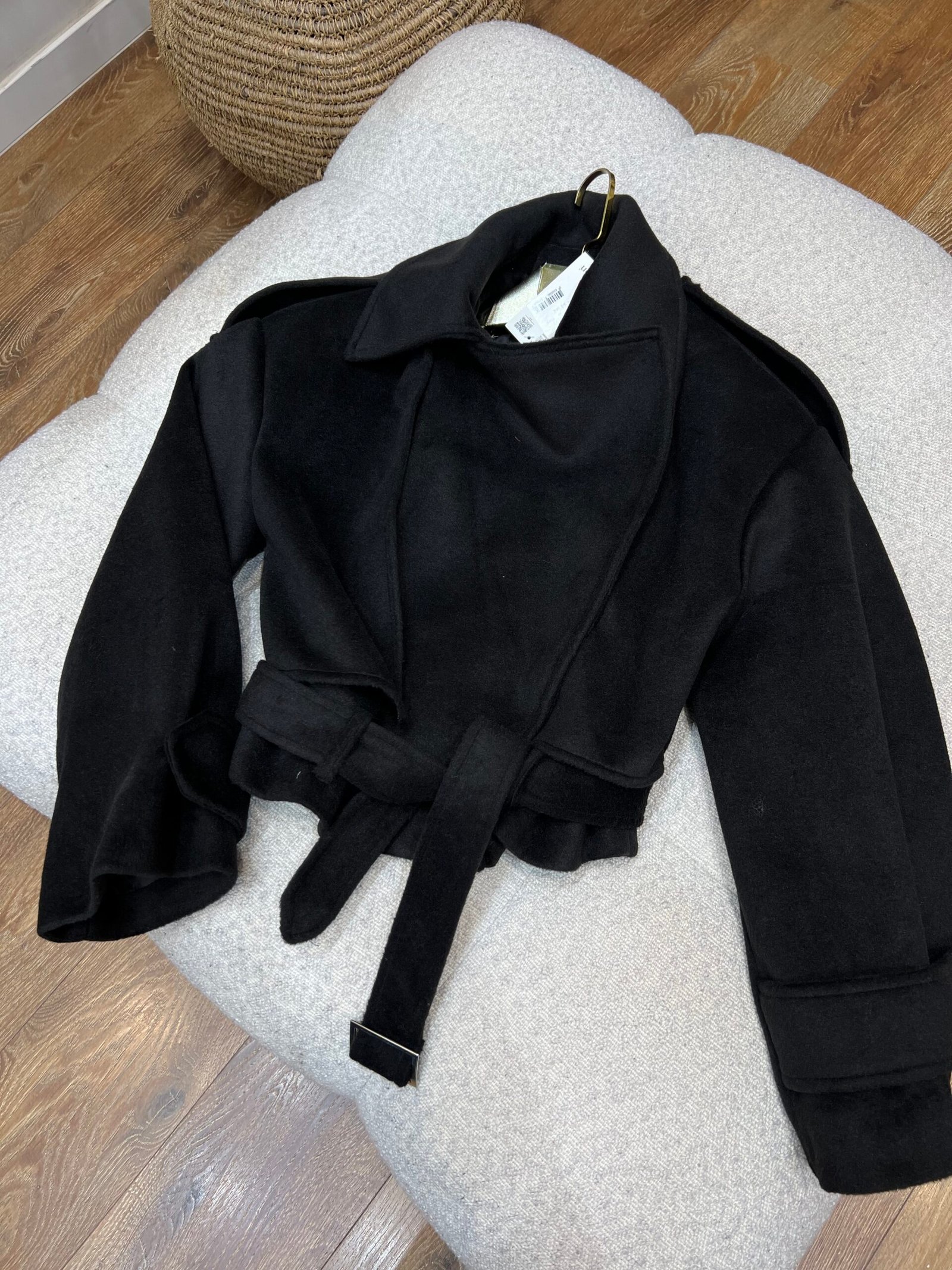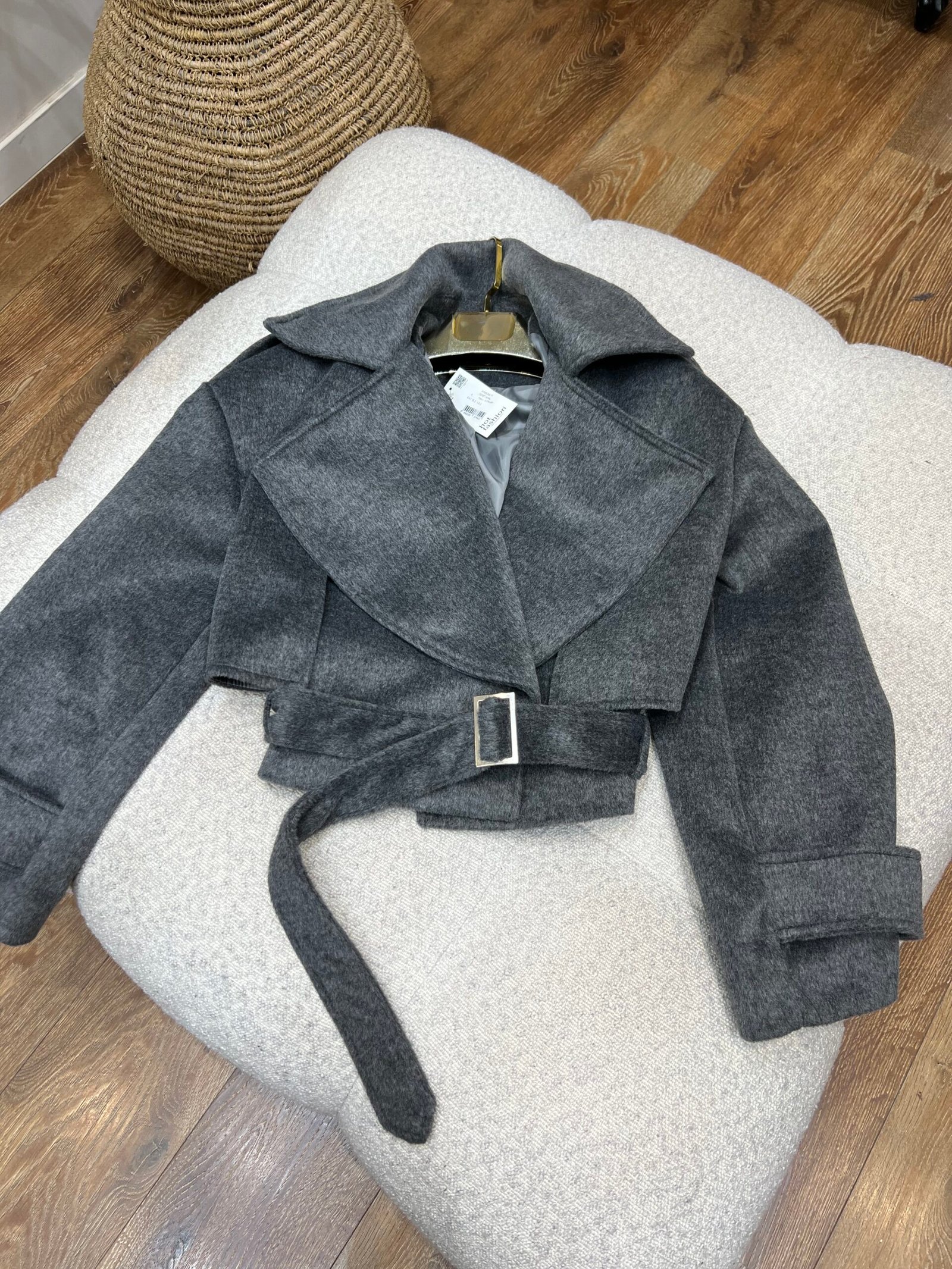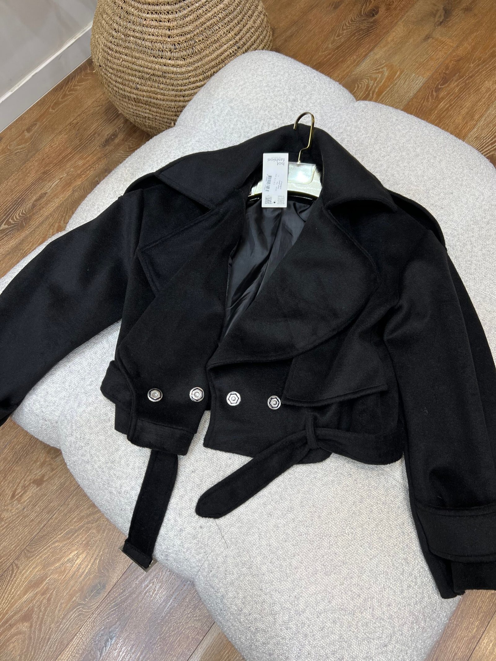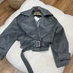 Pallto e shkurtër elegante me dizajn modern dhe prerje të rregullt që thekson siluetën dhe shton finesë në çdo kombinim. Materiali i butë dhe i qëndrueshëm ofron rehati dhe mbulim të ngrohtë, ndërsa rripi në bel mundëson përshtatje sipas dëshirës për një pamje më të formësuar.