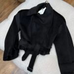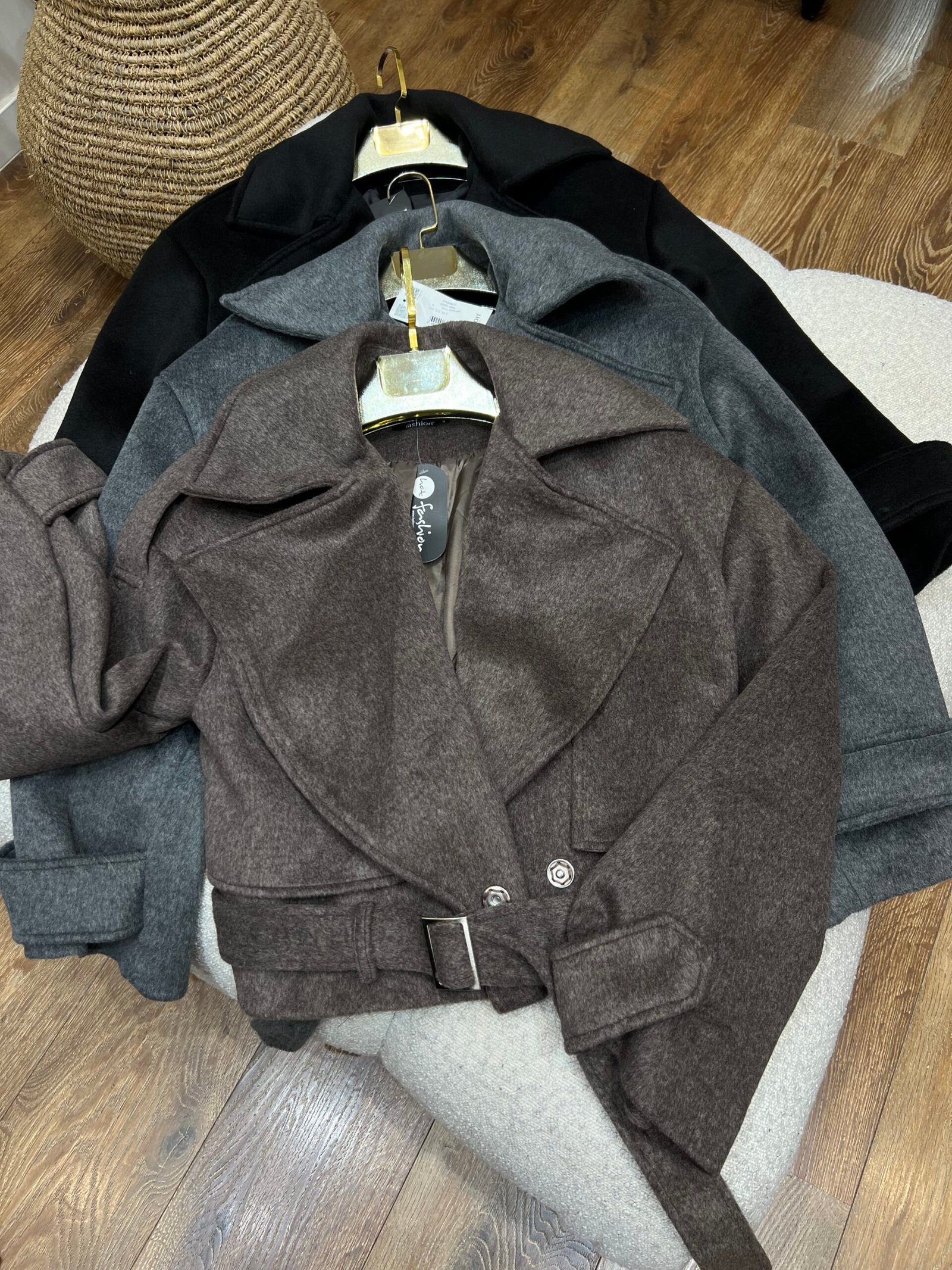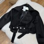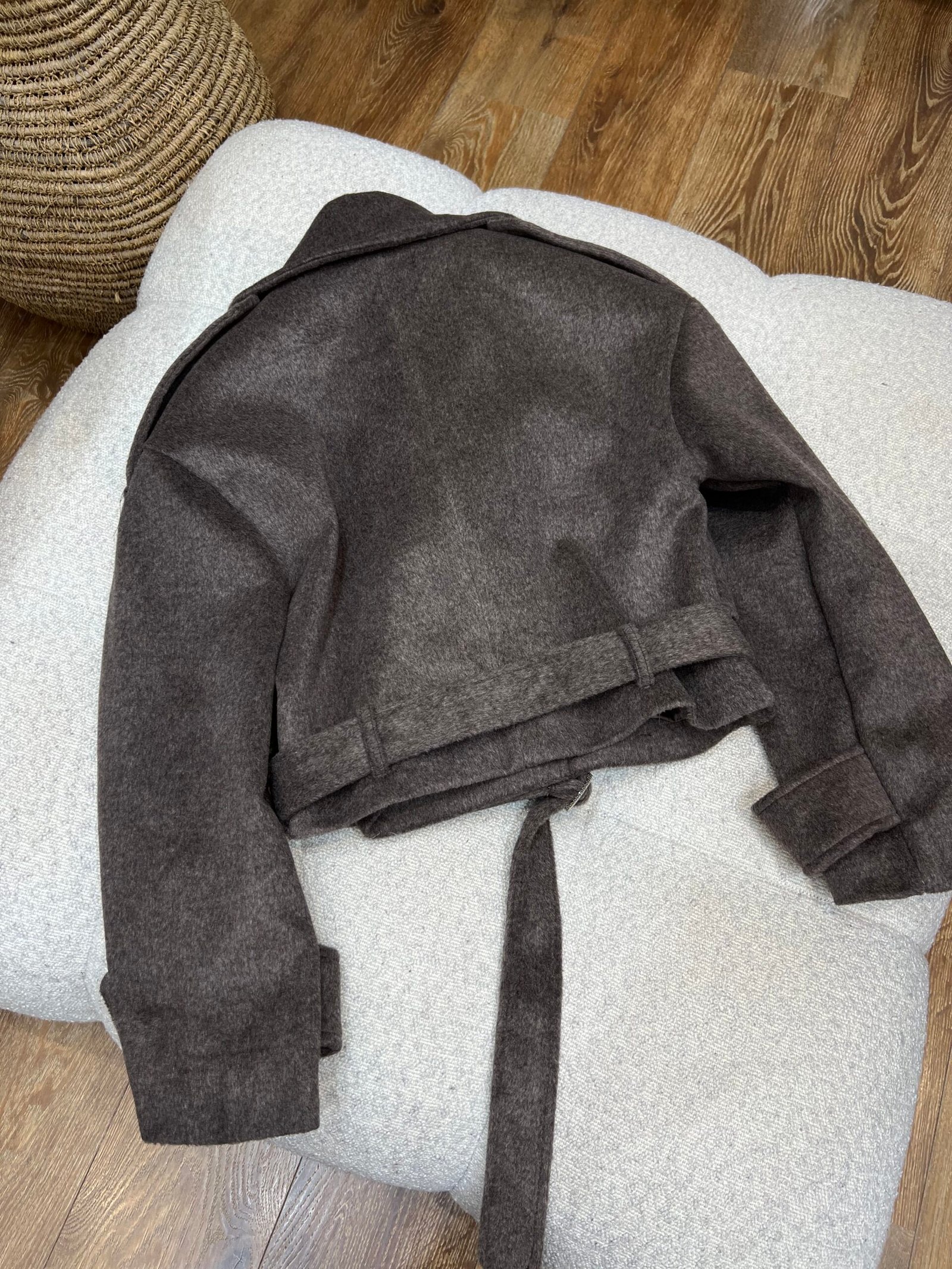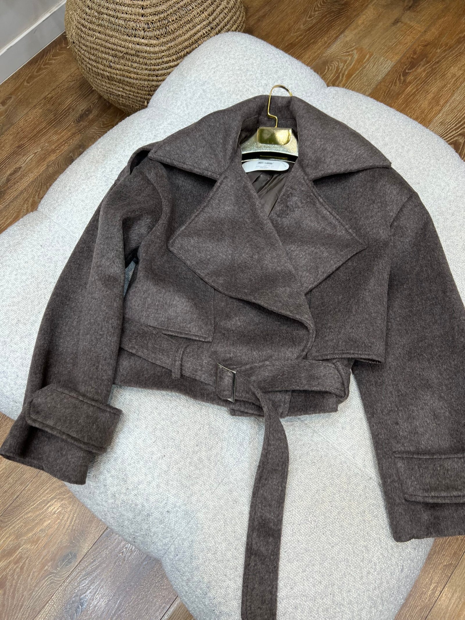 Pallto e shkurtër elegante me dizajn modern dhe prerje të rregullt që thekson siluetën dhe shton finesë në çdo kombinim. Materiali i butë dhe i qëndrueshëm ofron rehati dhe mbulim të ngrohtë, ndërsa rripi në bel mundëson përshtatje sipas dëshirës për një pamje më të formësuar.