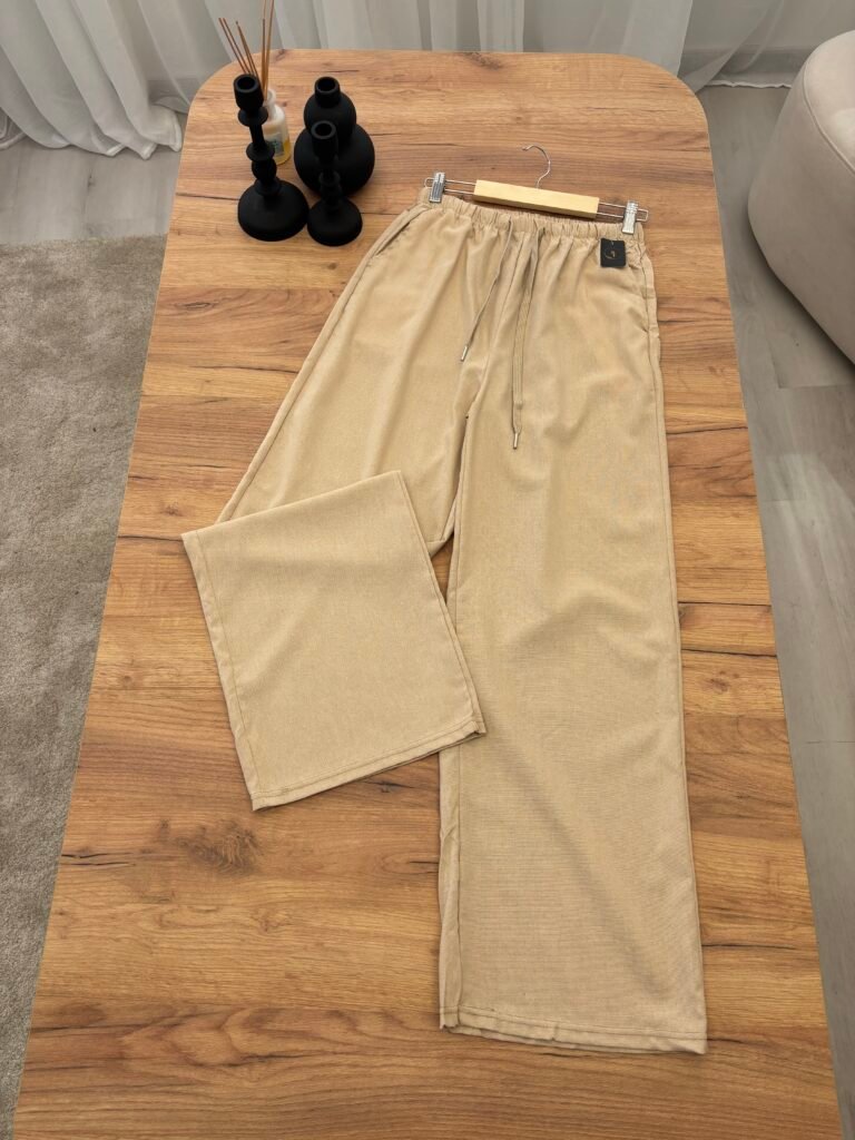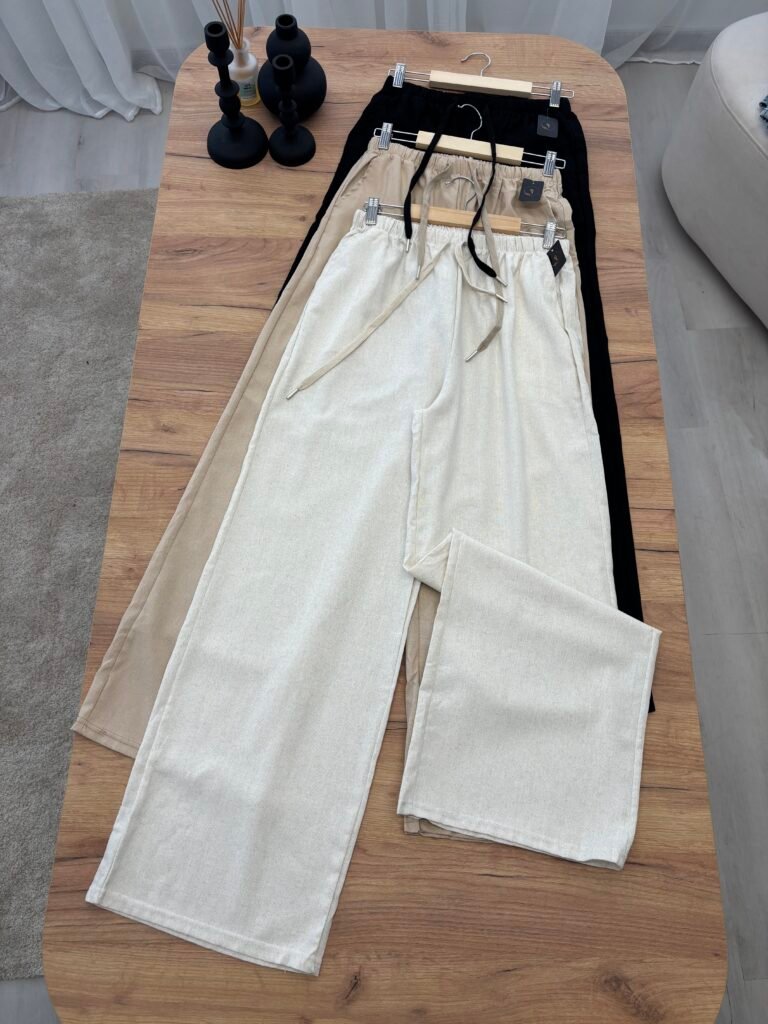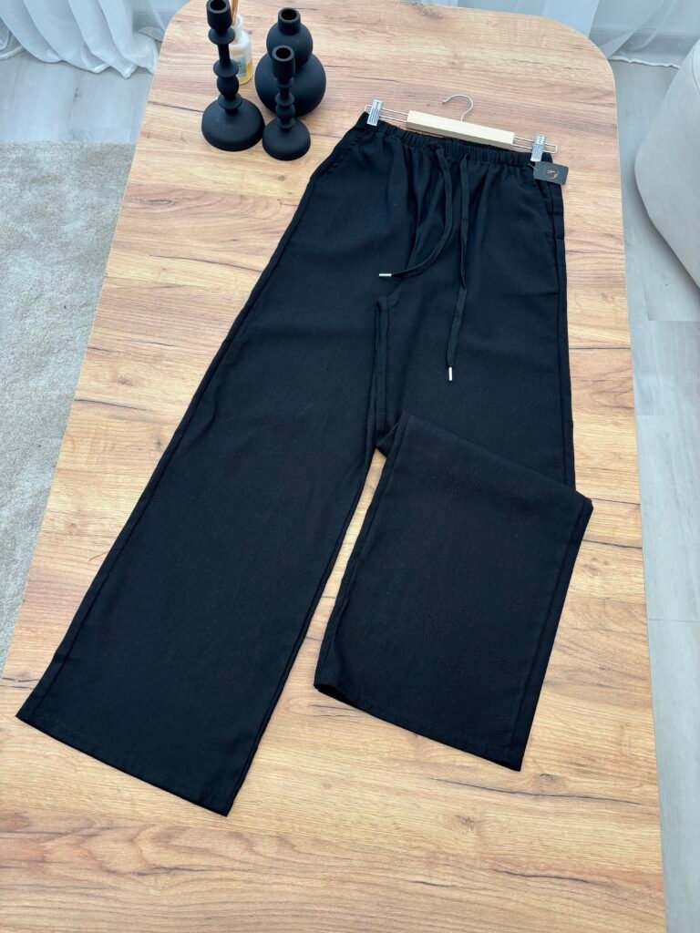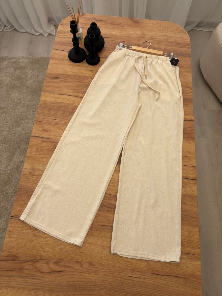 Pantallona elegante me prerje wide leg dhe bel elastik me lidhëse rregulluese për rehati maksimale. Të punuara nga material i lehtë me efekt linen, që ofron freski dhe rënie natyrale gjatë gjithë ditës. Perfekte për përditshmëri, pushime dhe city looks.