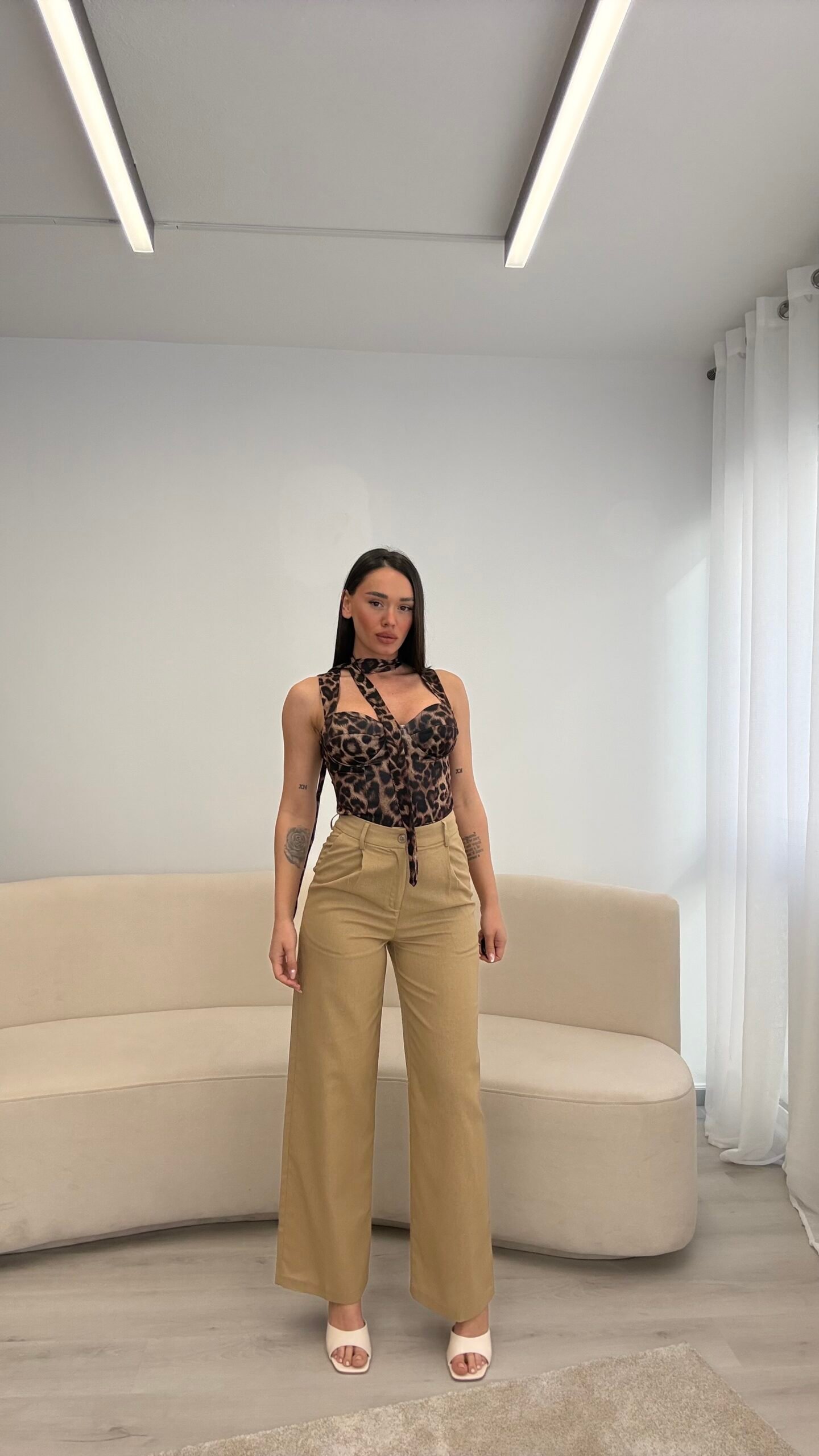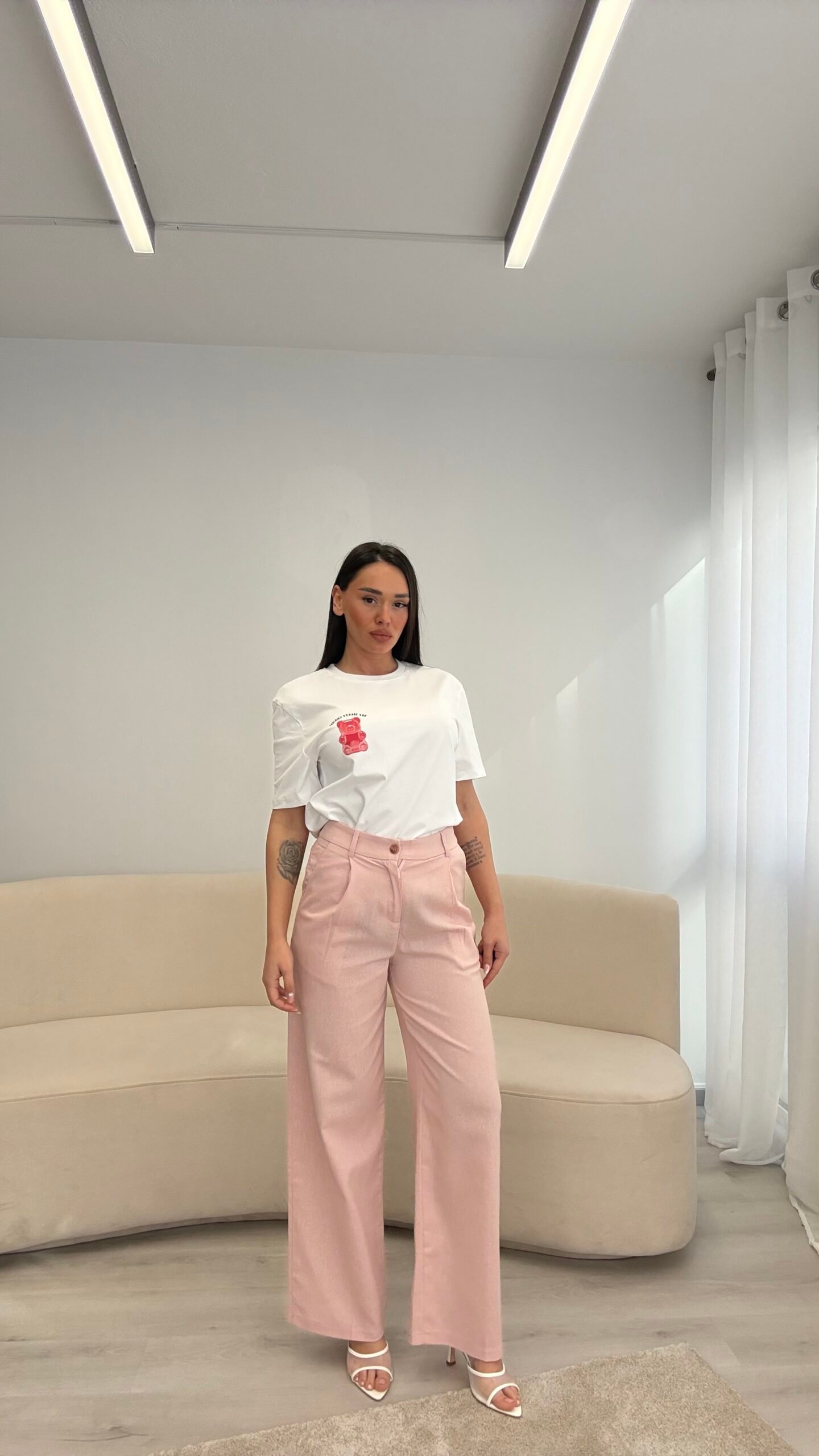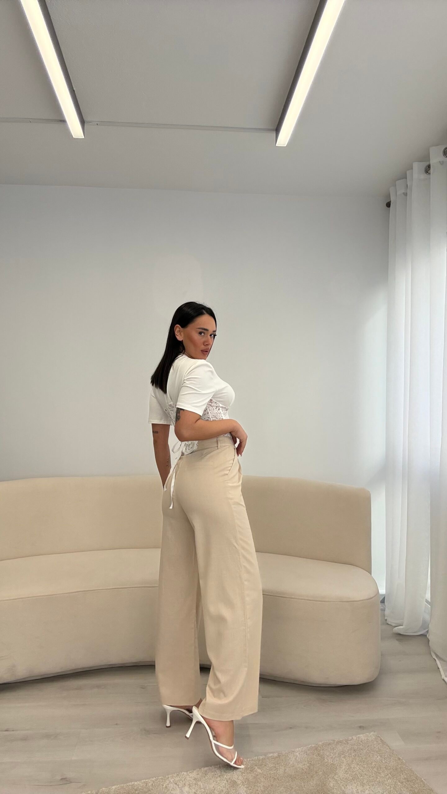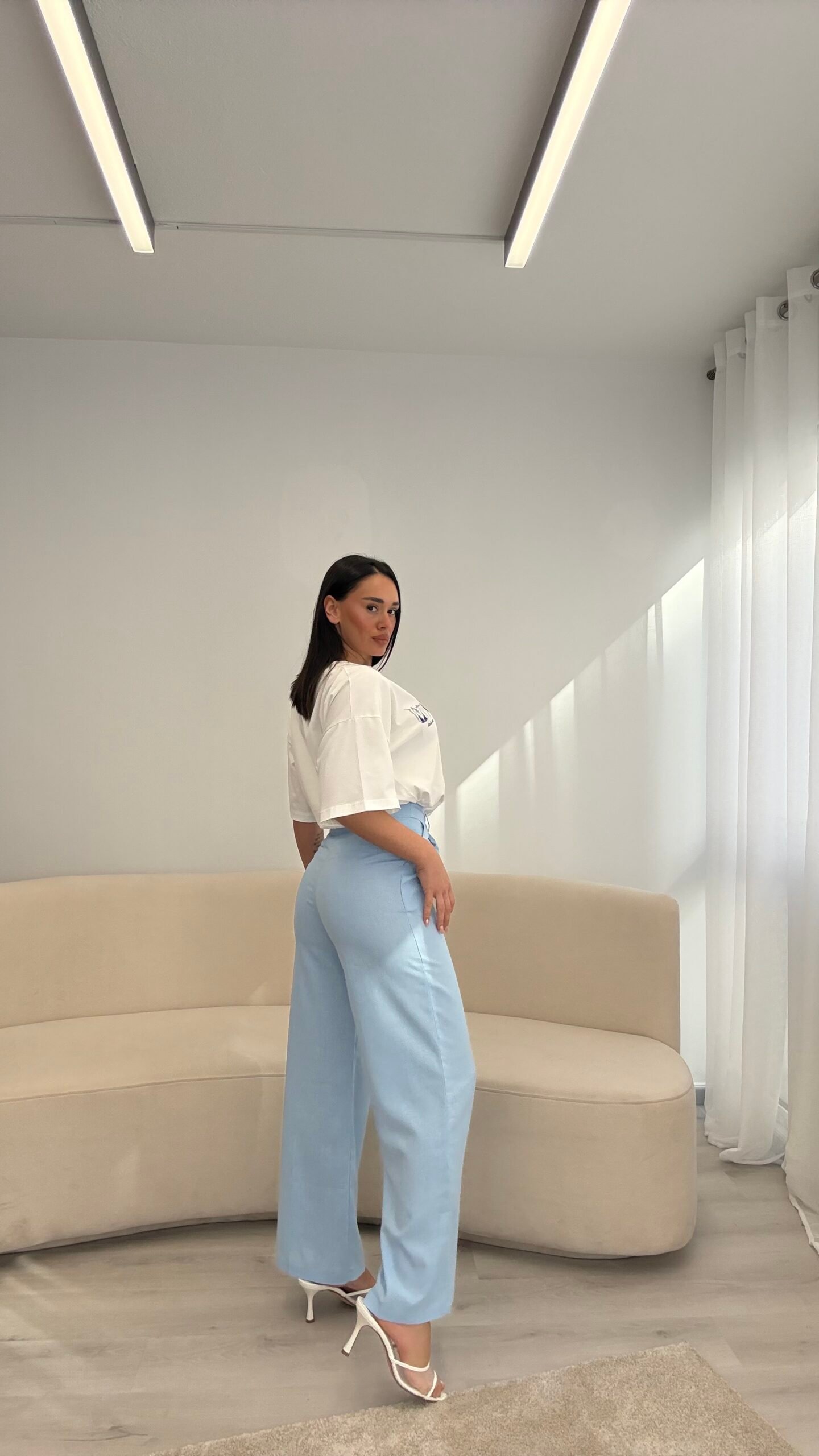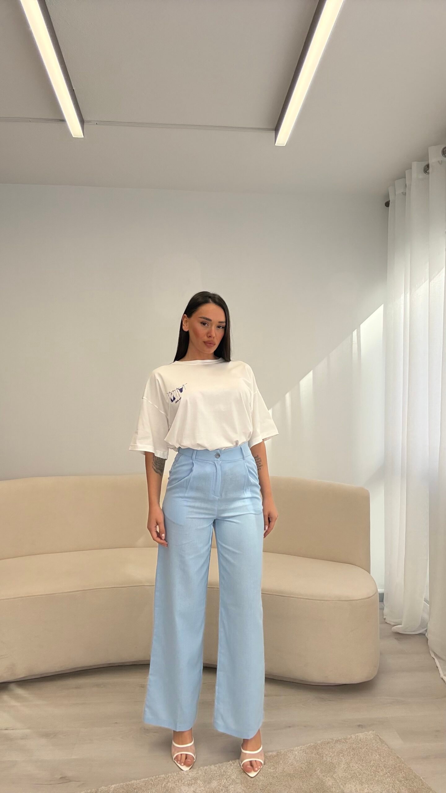 Pantallona lino me prerje të drejtë që zgjasin siluetën dhe krijojnë një look të pastër e të rafinuar. Materiali i lehtë dhe i freskët i bën ideale për ditët e ngrohta, ndërsa forma minimaliste i përshtatet lehtësisht çdo kombinimi. Një zgjedhje që bashkon rehati dhe elegancë në çdo moment.