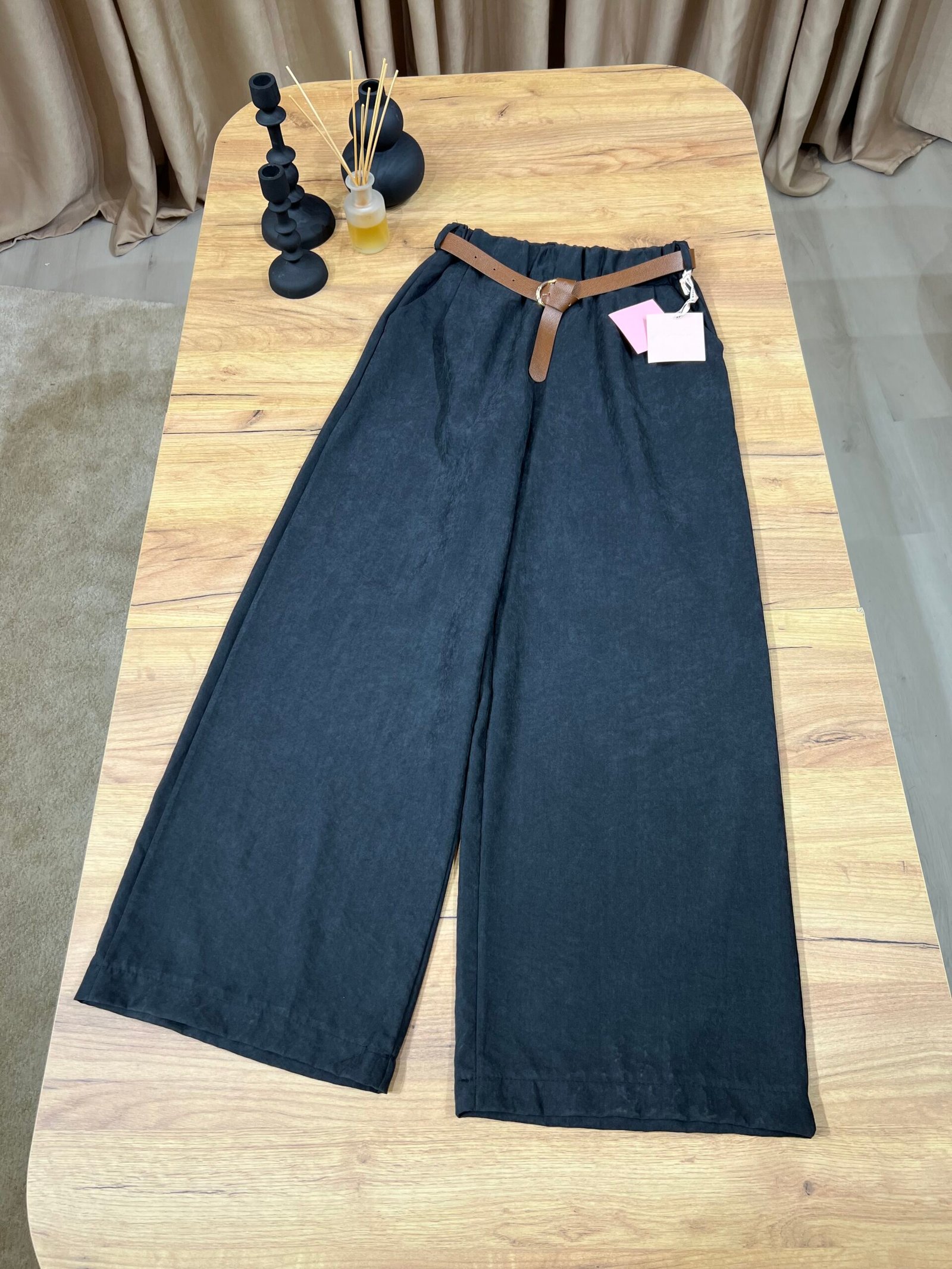 Pantallona me prerje wide leg dhe bel elastik për rehati maksimale. Model casual chic me rrip dekorativ që thekson belin dhe krijon siluetë elegante. Material i lehtë dhe i ajrosshëm, ideal për sezonin pranverë–verë, pushime apo kombinime të përditshme.