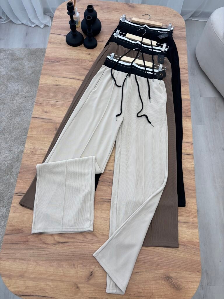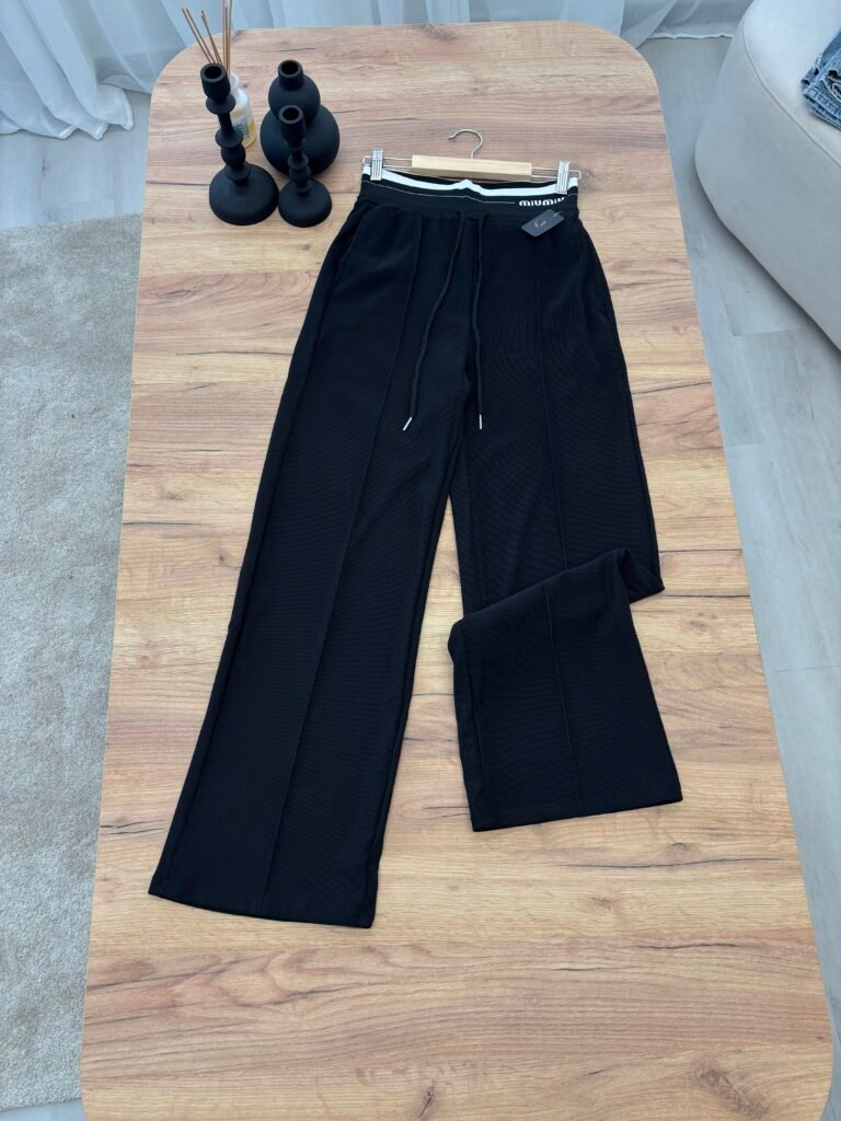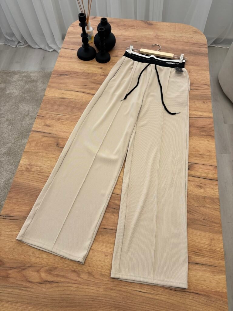 Pantallona me prerje wide leg dhe bel elastik sport chic me lidhëse rregulluese për rehati maksimale. Të punuara nga material elastik që përshtatet bukur në trup dhe krijon një siluetë elegante.