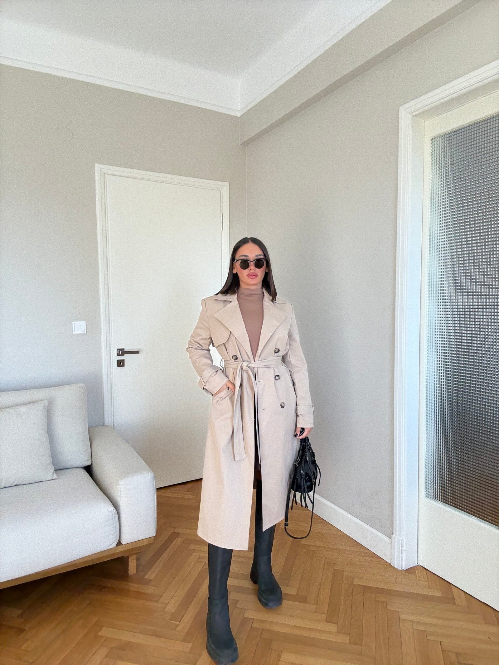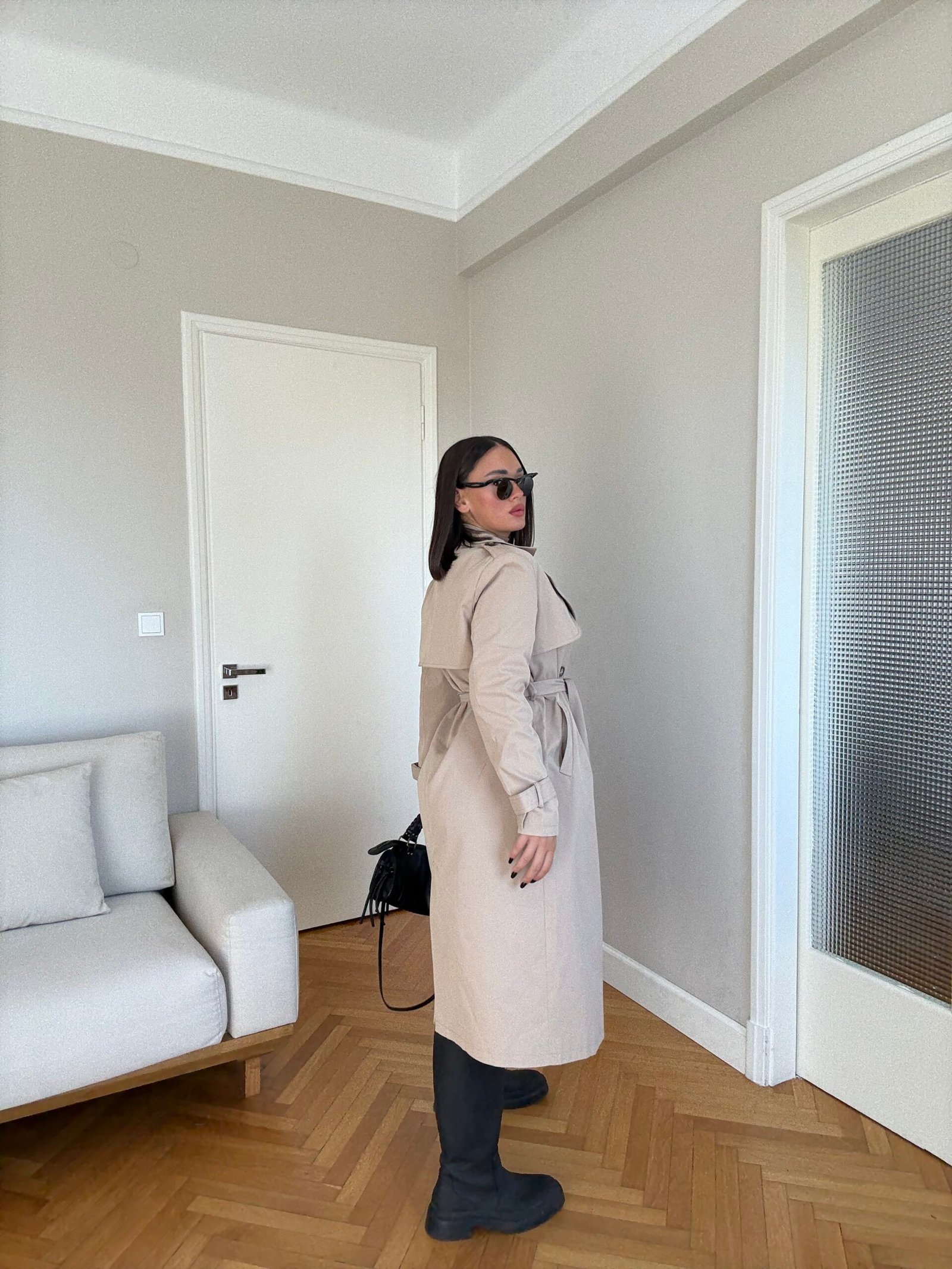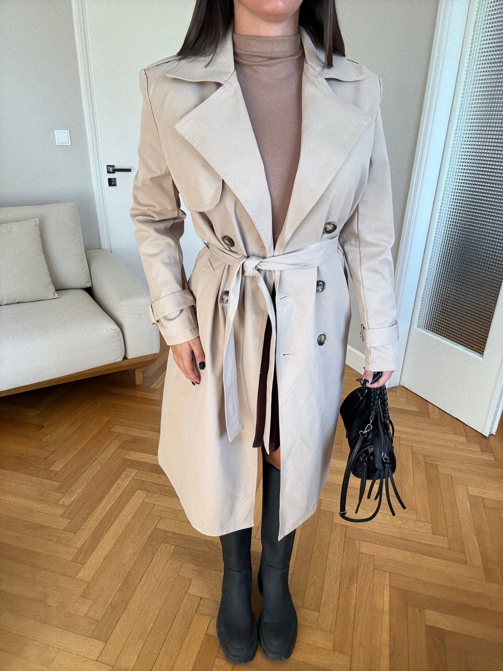 Pardesy elegante me dizajn të gjatë dhe prerje të drejtë, e pajisur me rrip në bel dhe mbyllje me dy rreshta kopsa. Materiali rezistent dhe linjat e pastra e bëjnë një veshje ikonike që i shton finesë çdo kombinimi dhe qëndron në trend për çdo sezon.