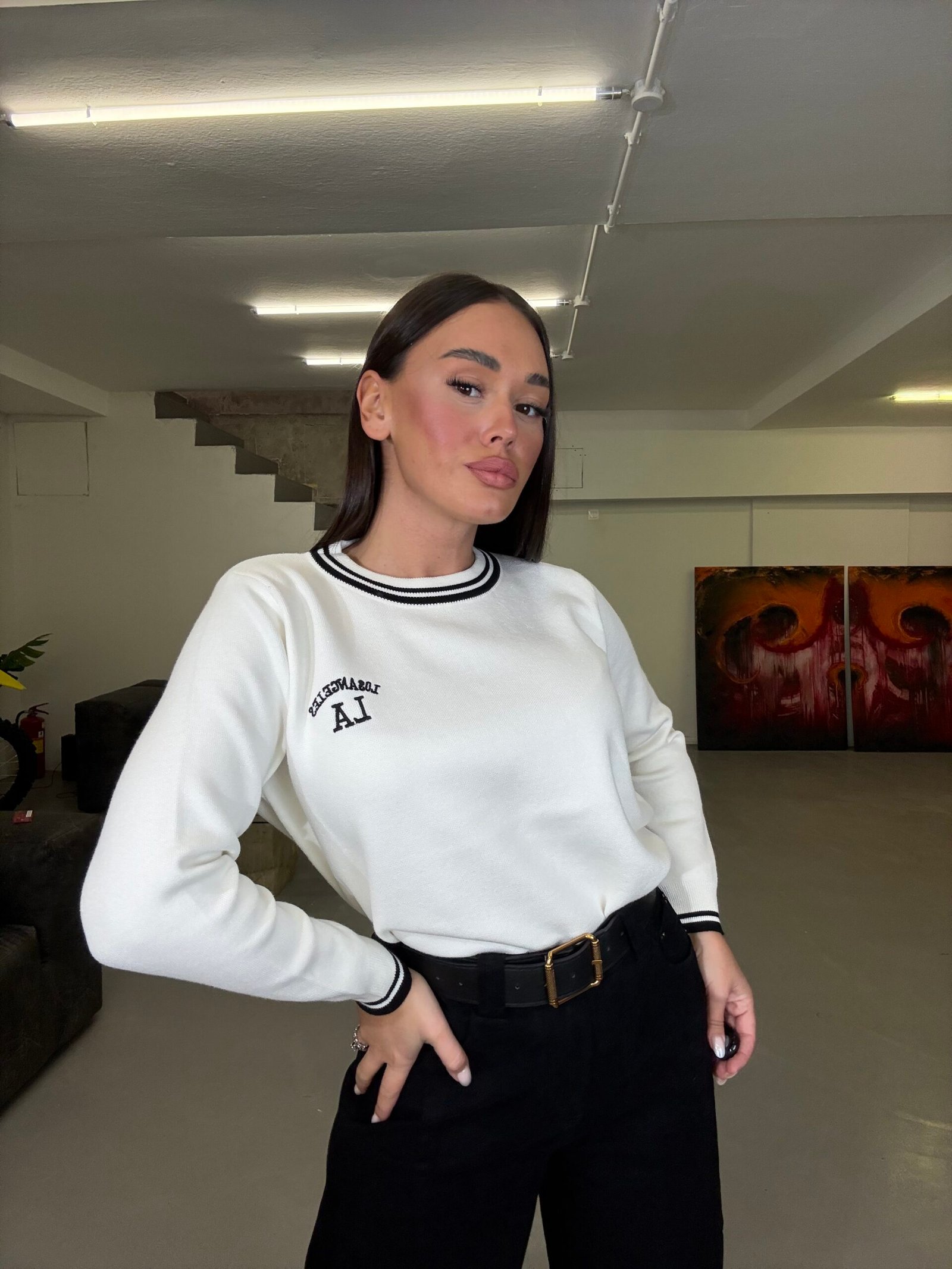 Pulovër sportive me dizajn të thjeshtë dhe detajin “LA” perfekte për një stil casual dhe modern. Detajet kontrastuese te jakë dhe te mëngët i japin një pamje të freskët dhe të kuruar. Përshtatet lehtësisht, duke krijuar kombinime të thjeshta por me stil.