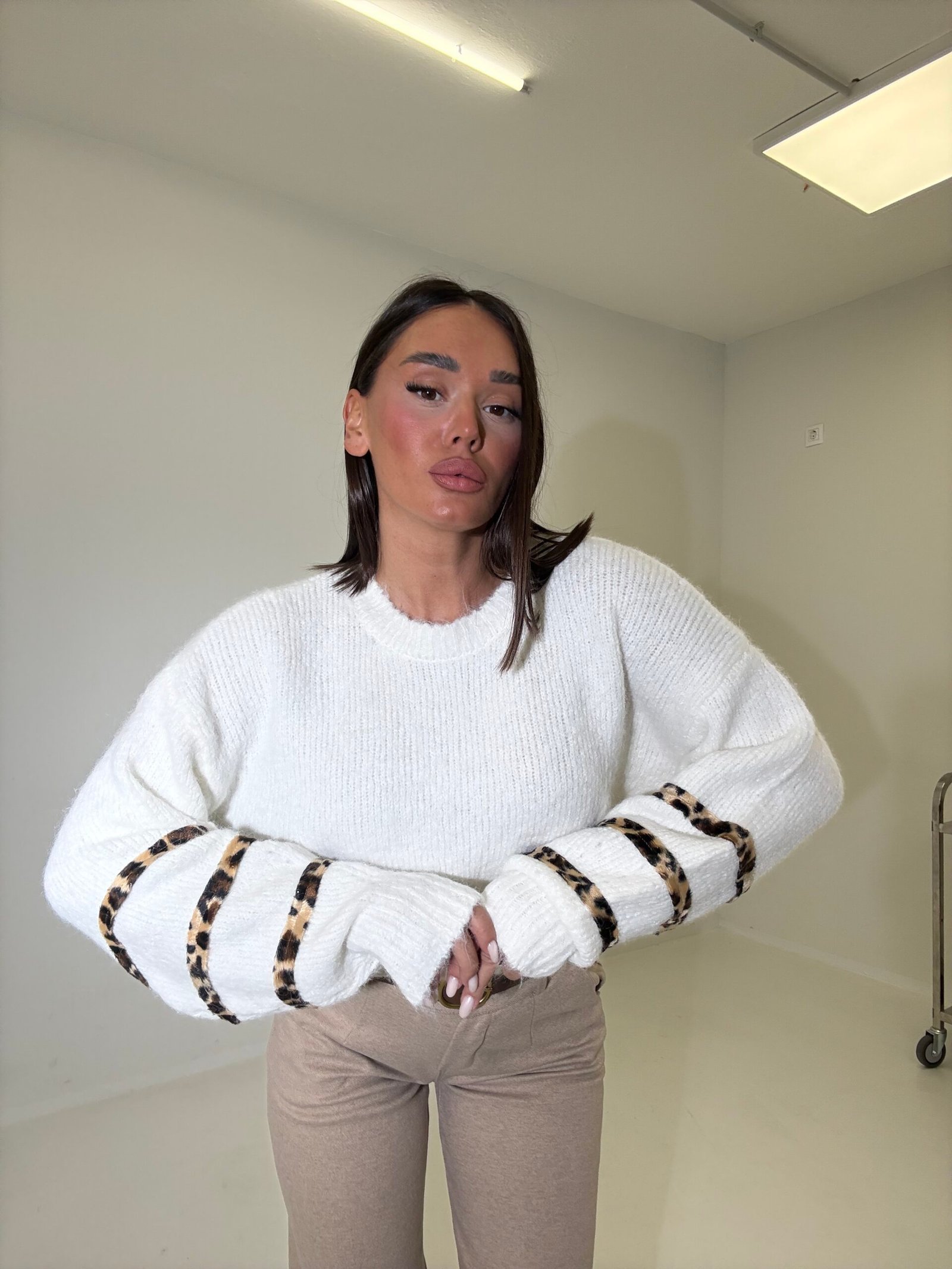 Pulovër e rehatshme me strukturë të butë dhe detaje leopard në mëngë që e bëjnë unike dhe trendi. Ideale për veshje të përditshme, duke shtuar një prekje të veçantë dhe moderne në çdo kombinim.