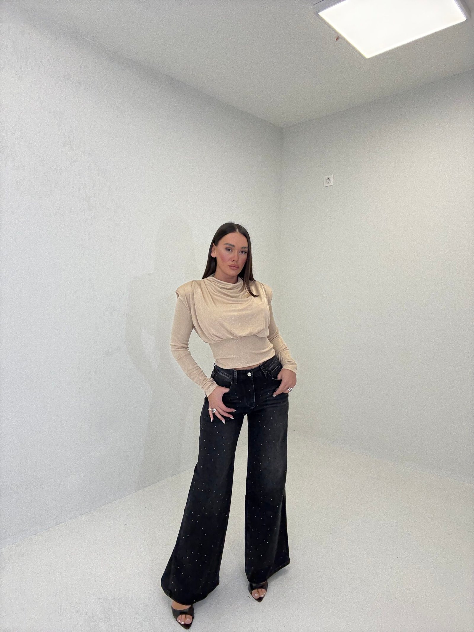 Dopio copë me astar brënda, me copë me punim xixe. Vjen në punim me pala, me jakë të ngritur në trajtë gjysmë golfi dhe llastik në pjesën fundore