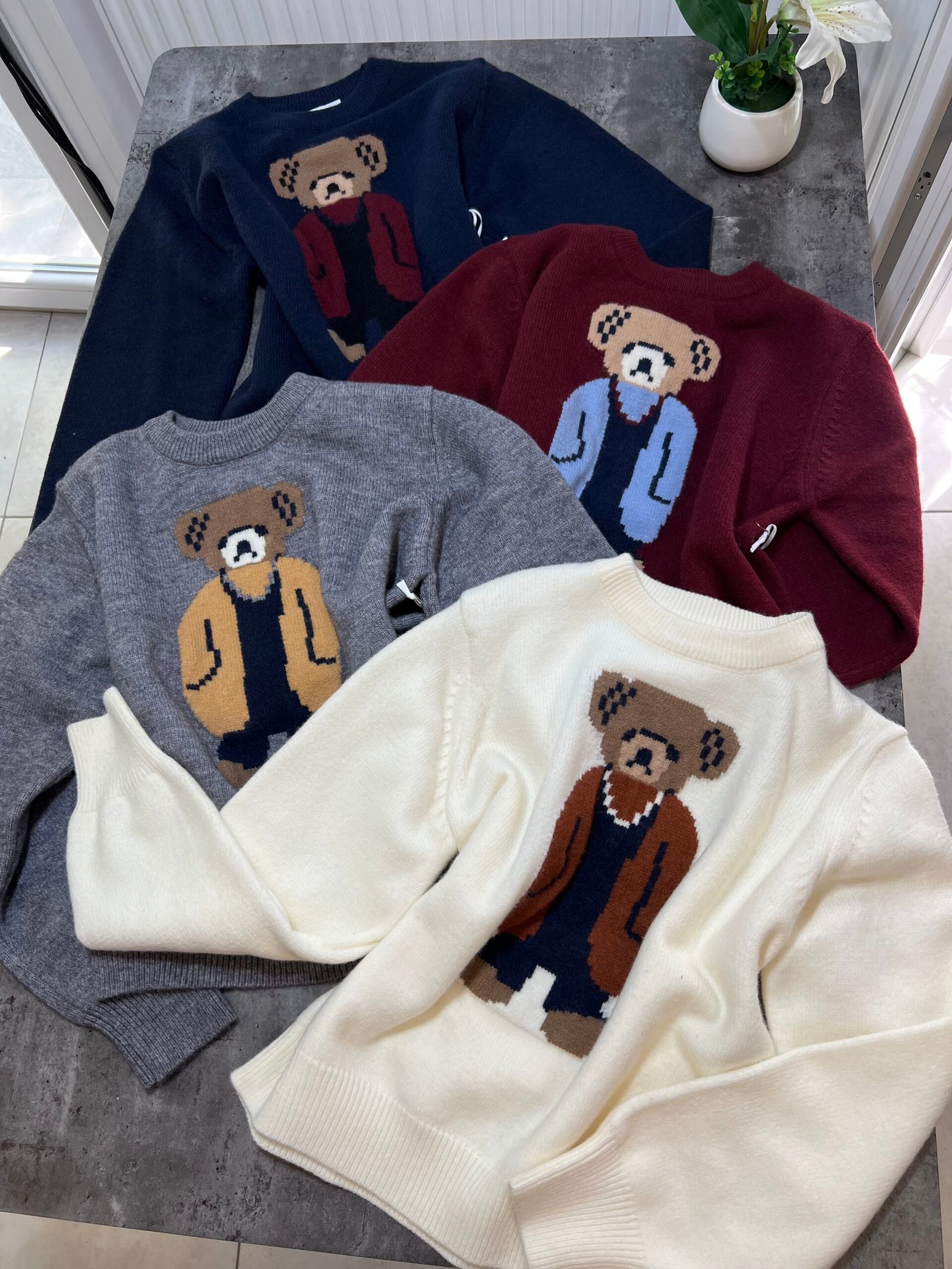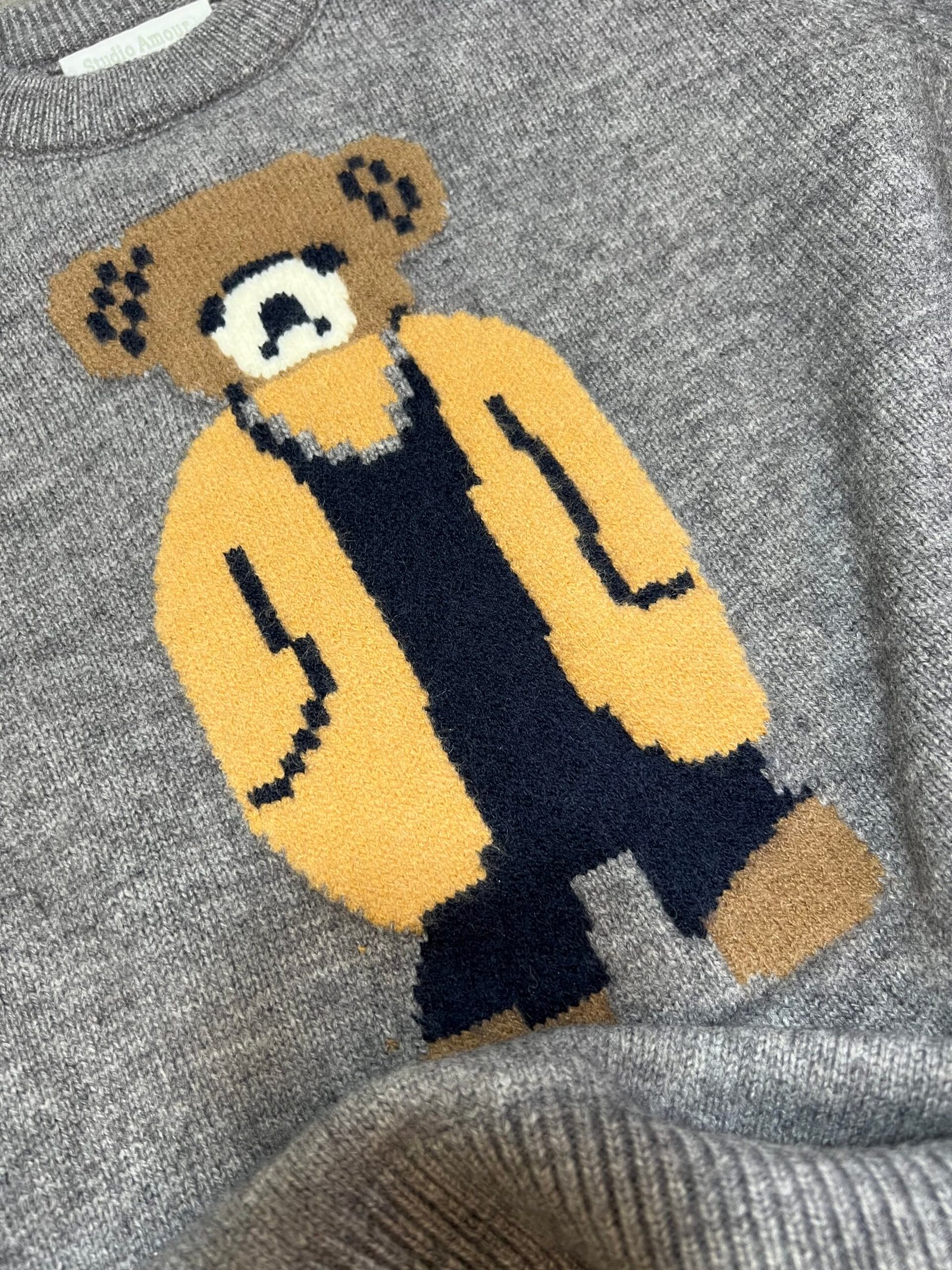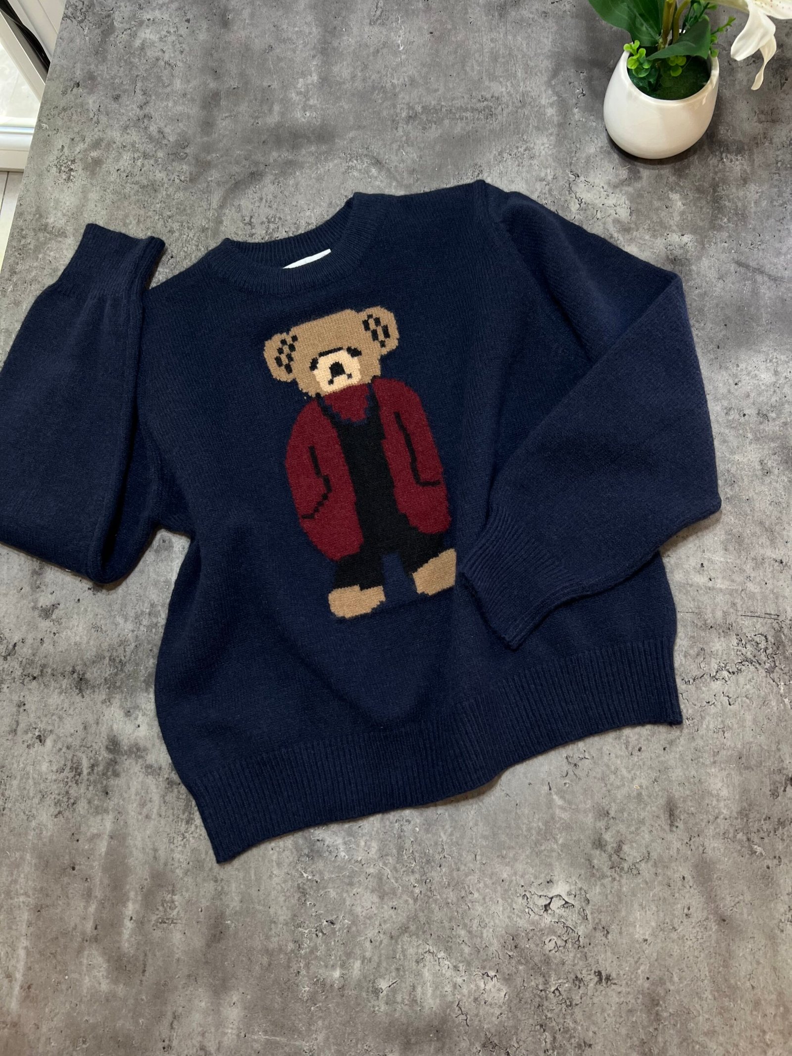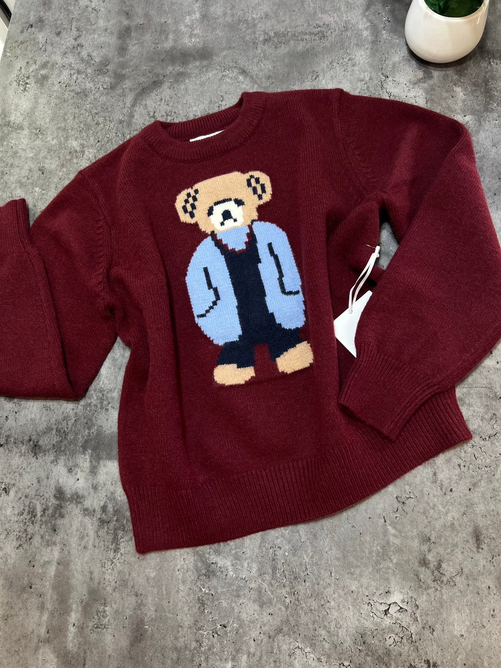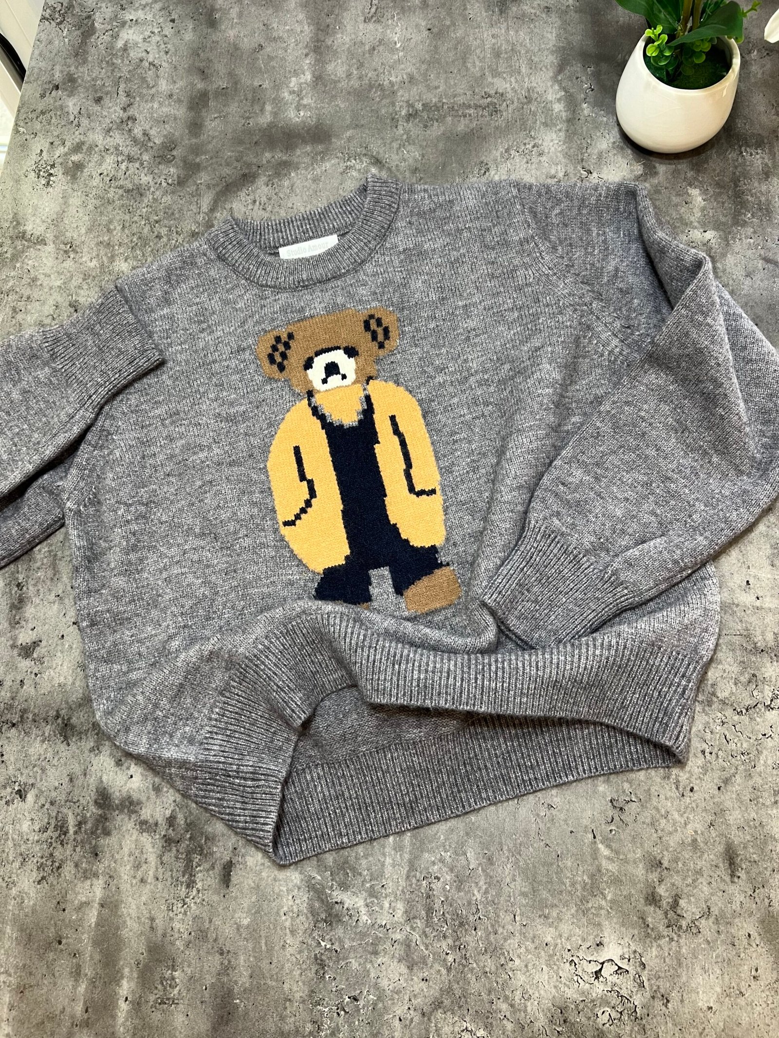 Pulovër e butë dhe komode me dizajn unik të një arushi të thurur në pjesën e përparme. Një model që bashkon ngrohtësinë me stilin modern, duke e bërë dallues në çdo gardërobë. Një zgjedhje ideale për pamje të kuruar dhe trendi në përditshmër