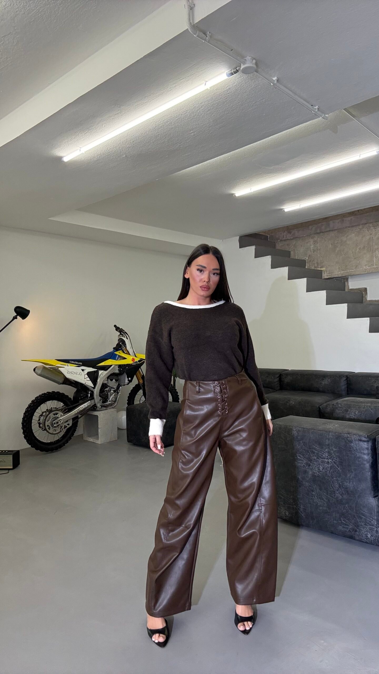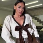 Pulovër e butë dhe elegante me dekolte V dhe fjongo dekorative që mund të vishet si përpara ashtu edhe pas, duke ofruar dy stile në një veshje të vetme. Materiali i ngrohtë dhe i rehatshëm, pamje moderne dhe shumë feminine. Një model i veçantë që shton finesë në garderobë.
