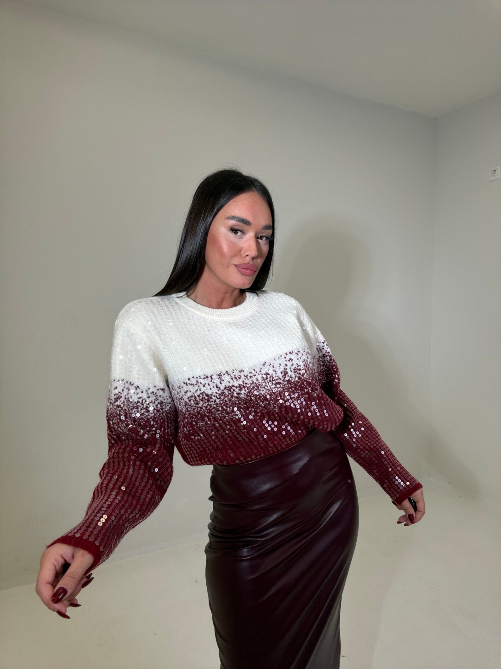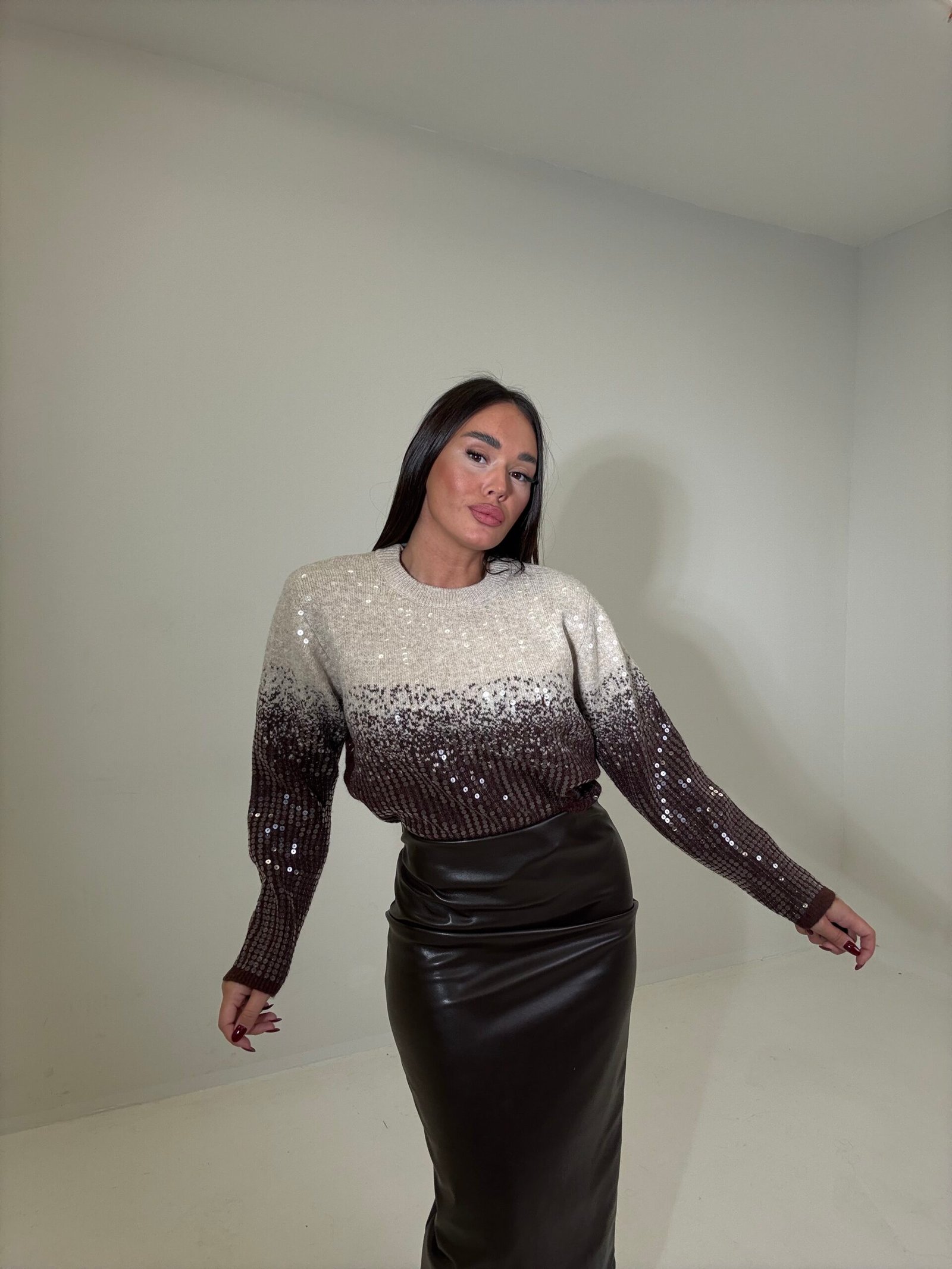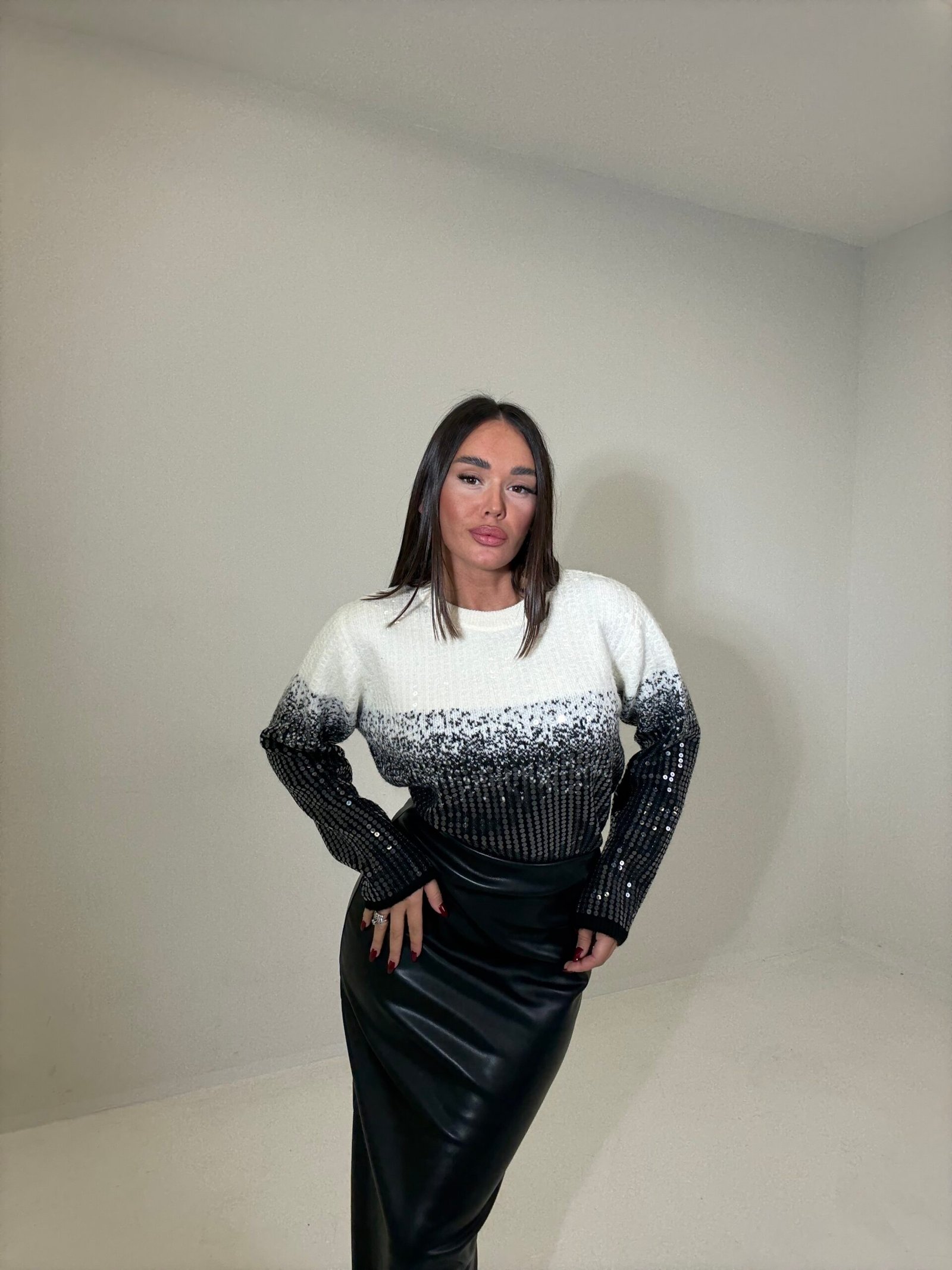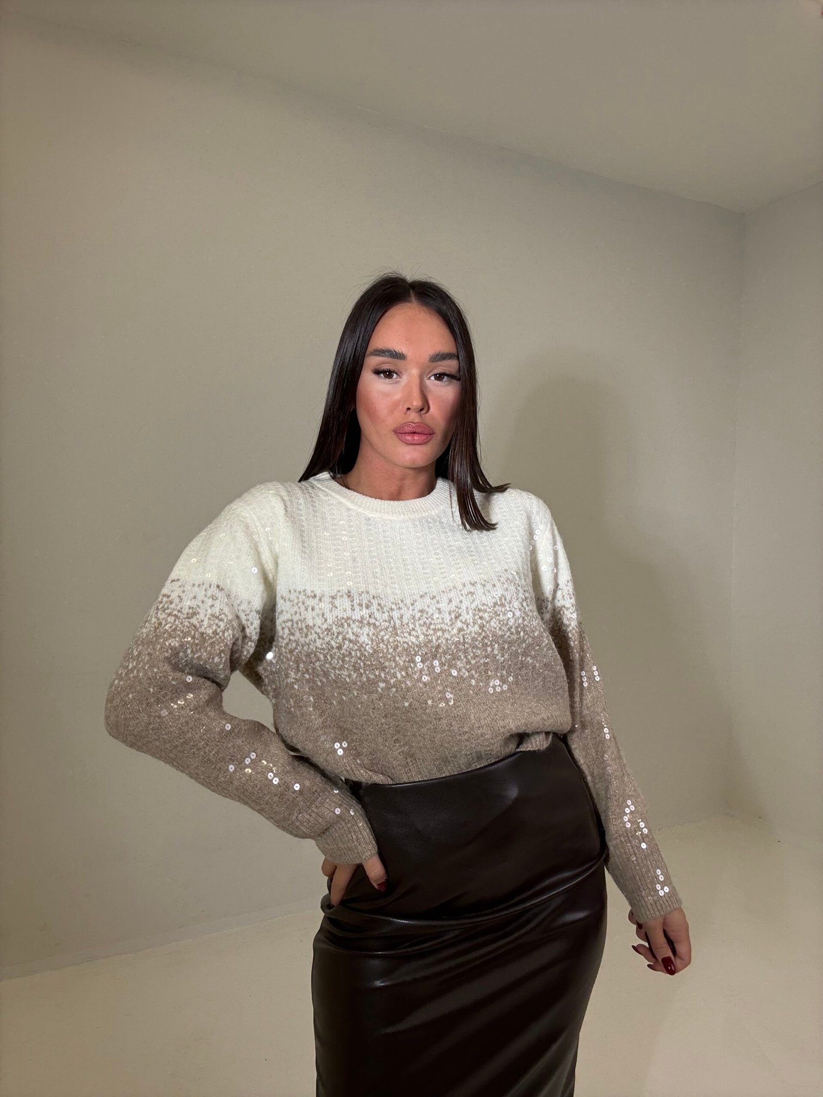 PULOVËR ME SHKËLQIM DHE EFEKT GRADIENT