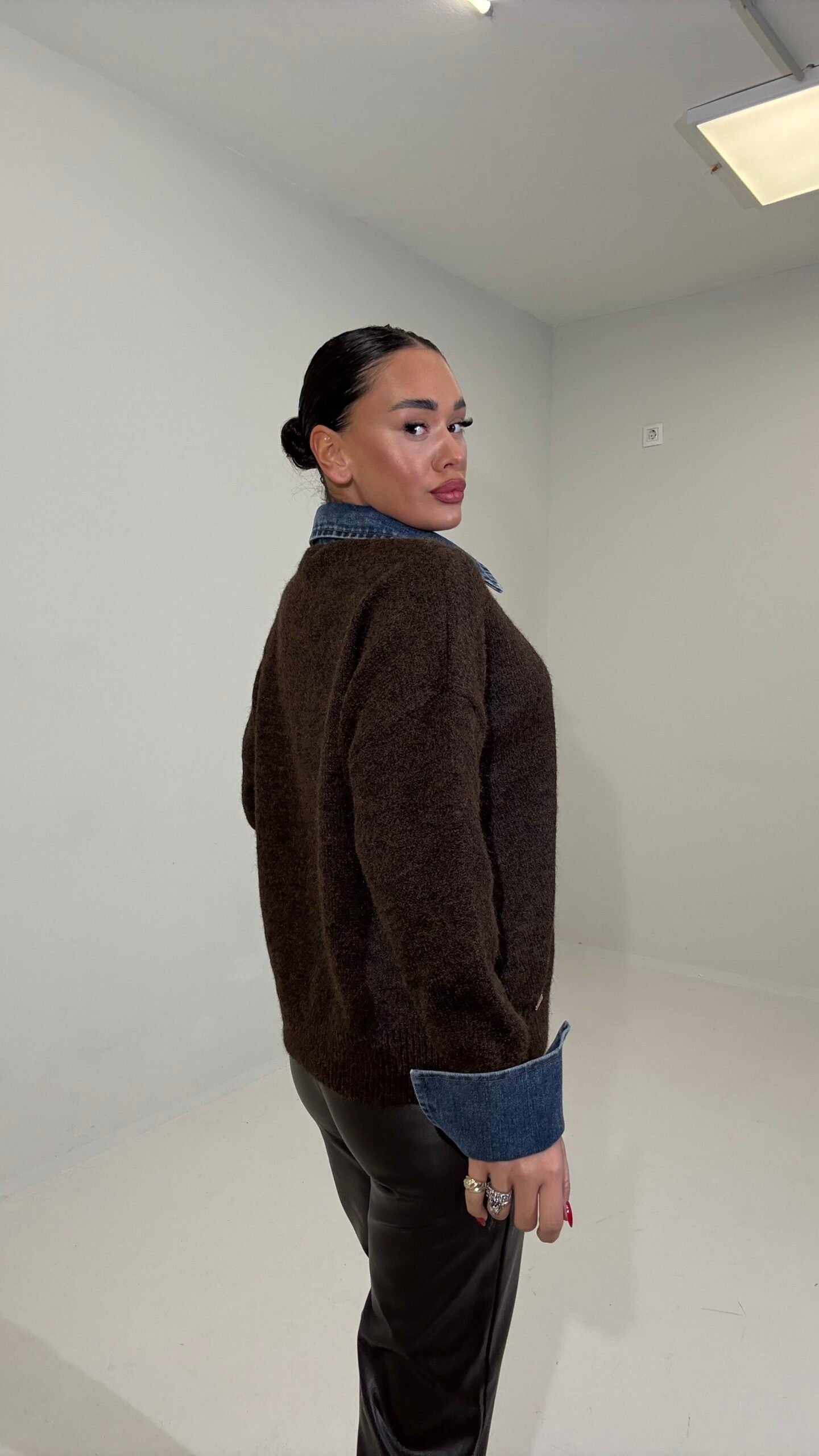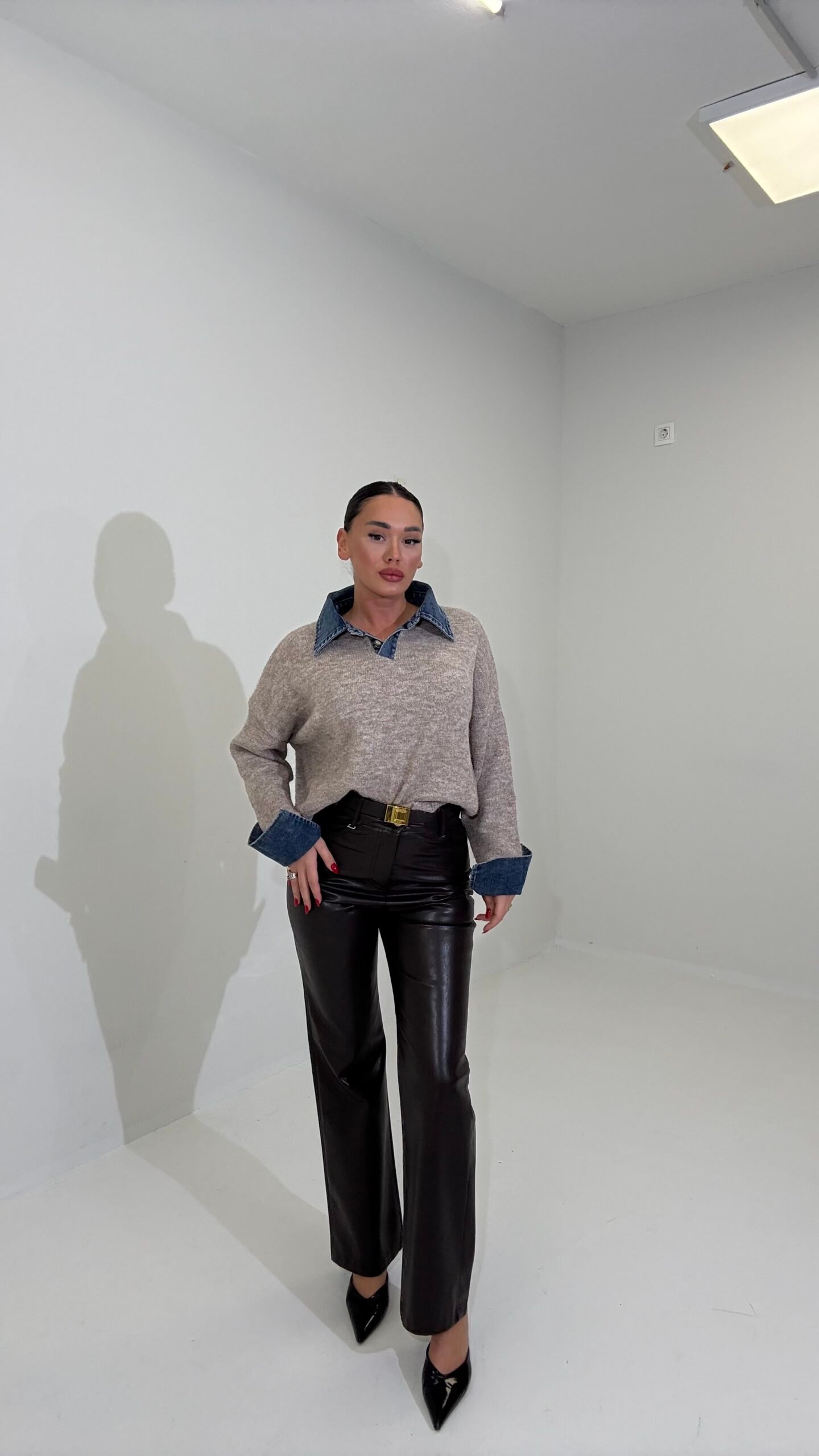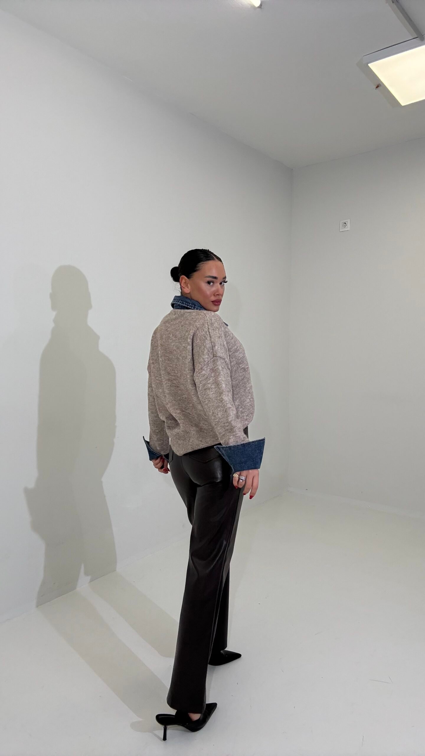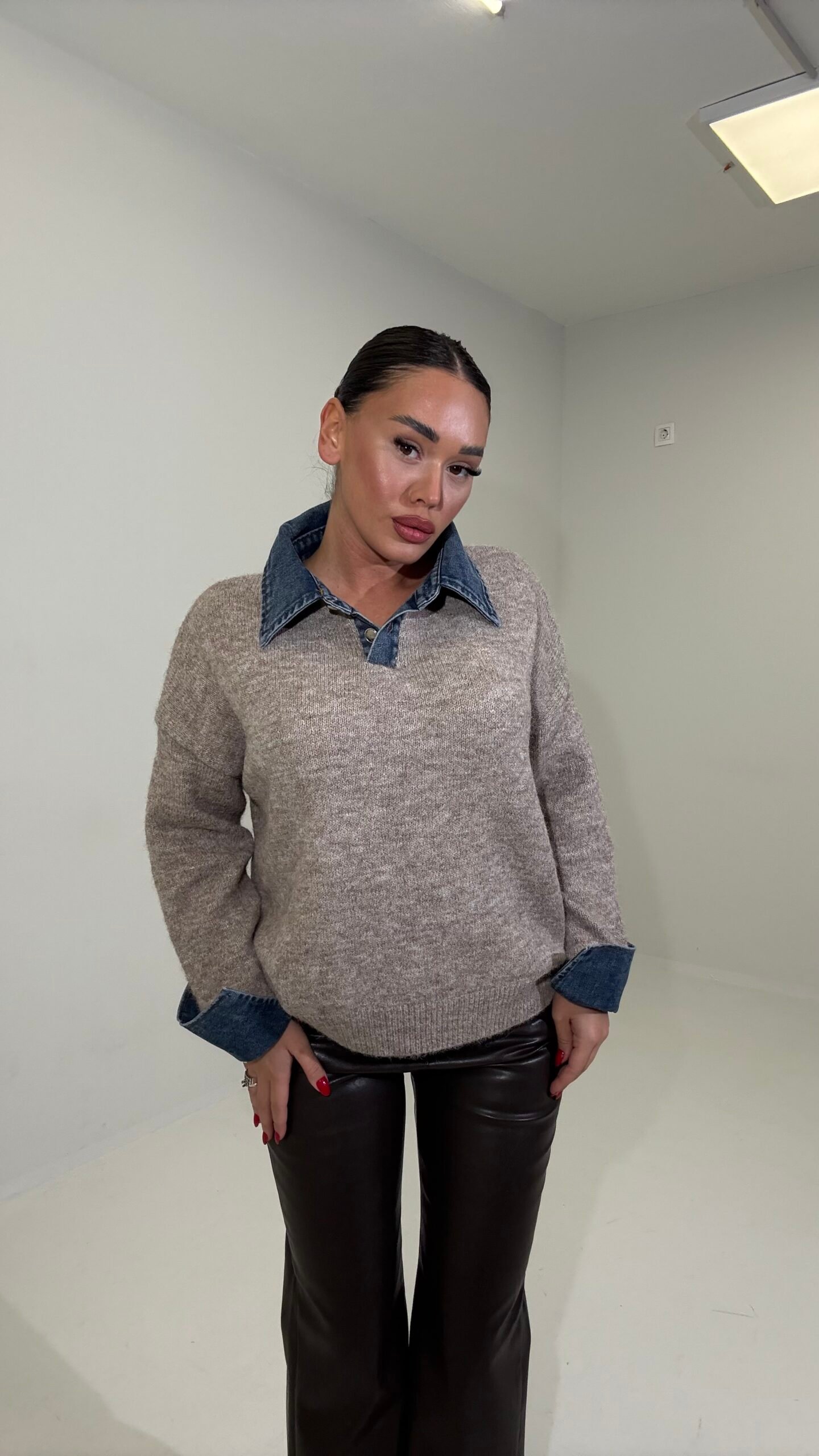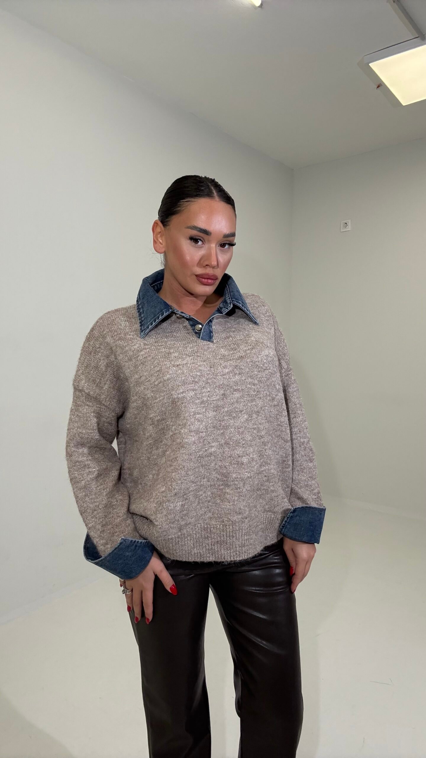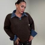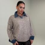Pulovër oversize e butë me jakë dhe mëngë të theksuara në denim, që krijojnë kontrast modern dhe shumë stil. Prerja e lirshme ofron komoditet maksimal, ndërsa kombinimi i materialit triko me detajin xhinsi e bën ideal për look-e të përditshme dhe layering perfekt.