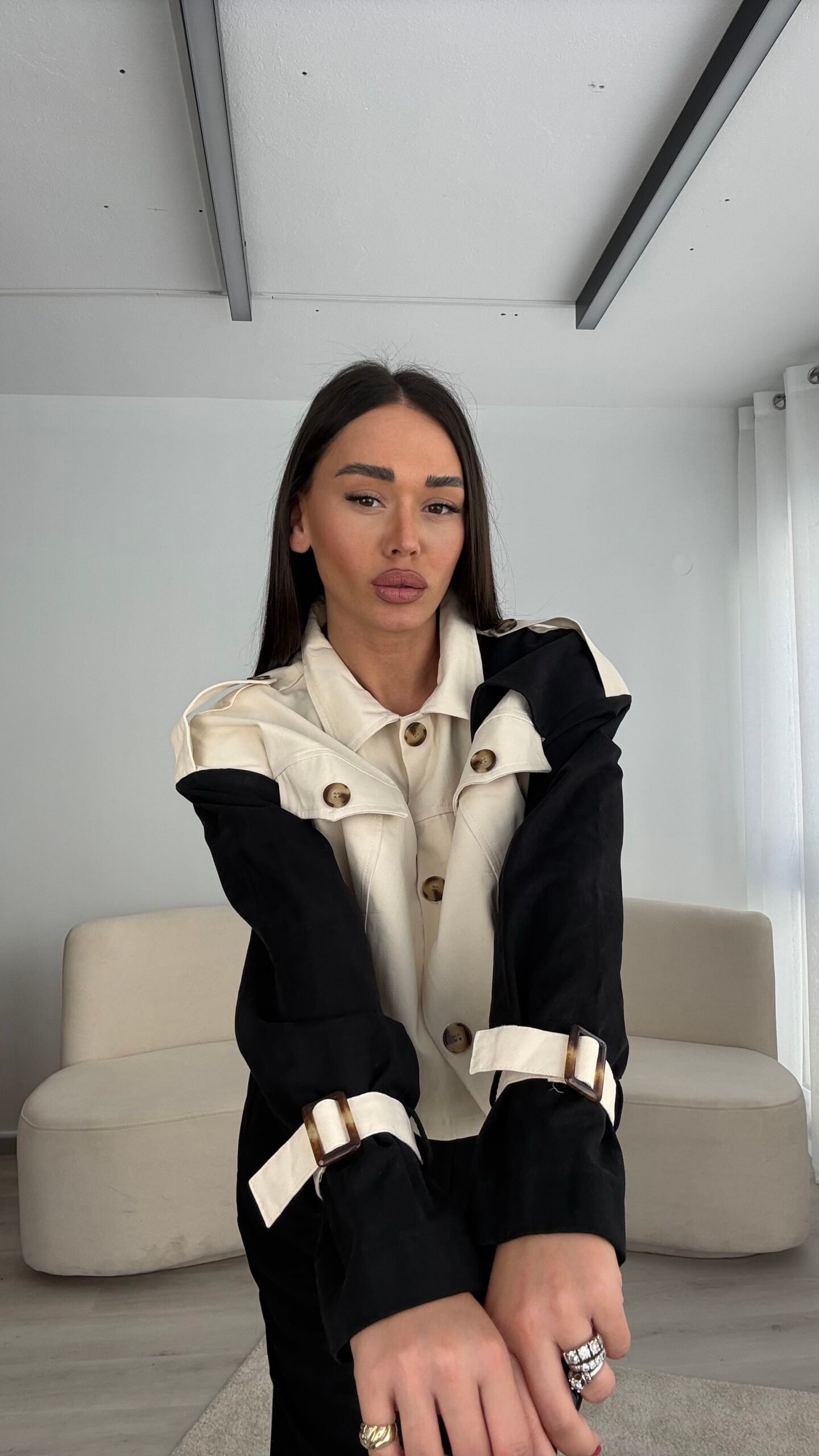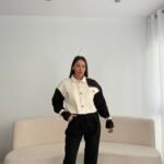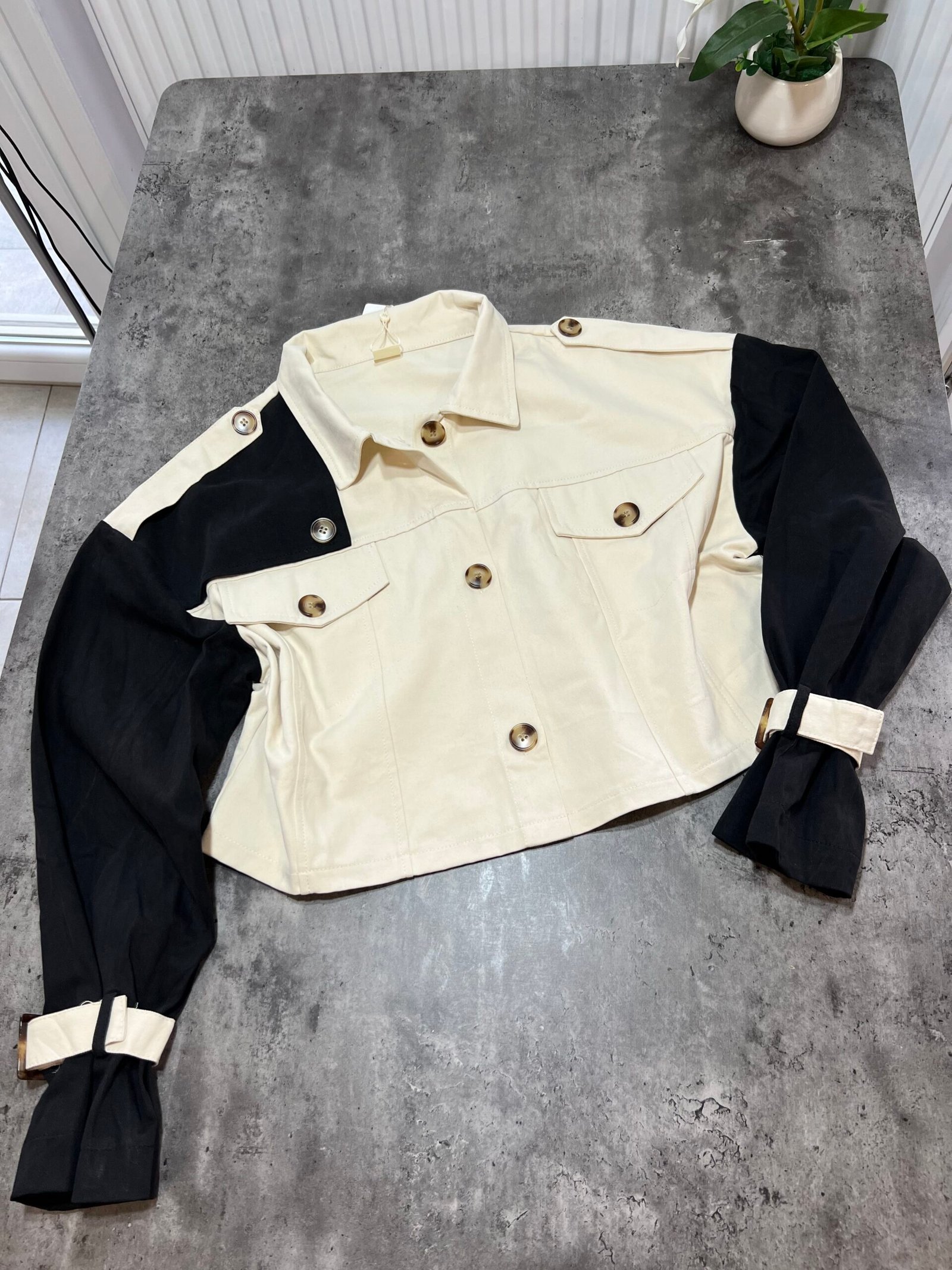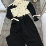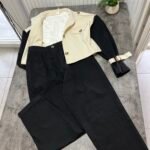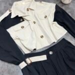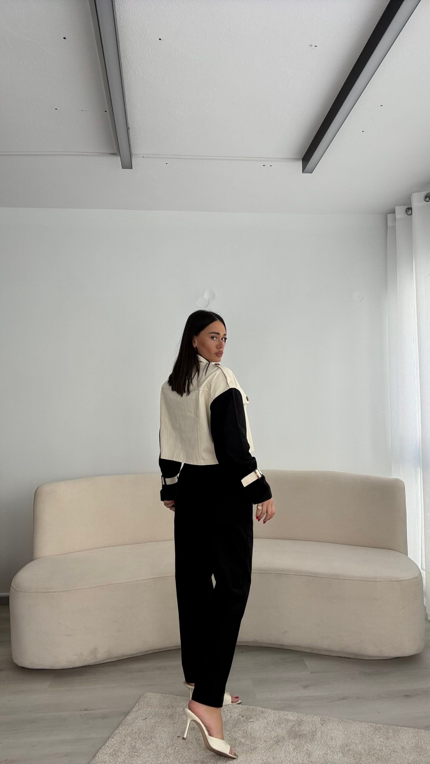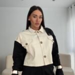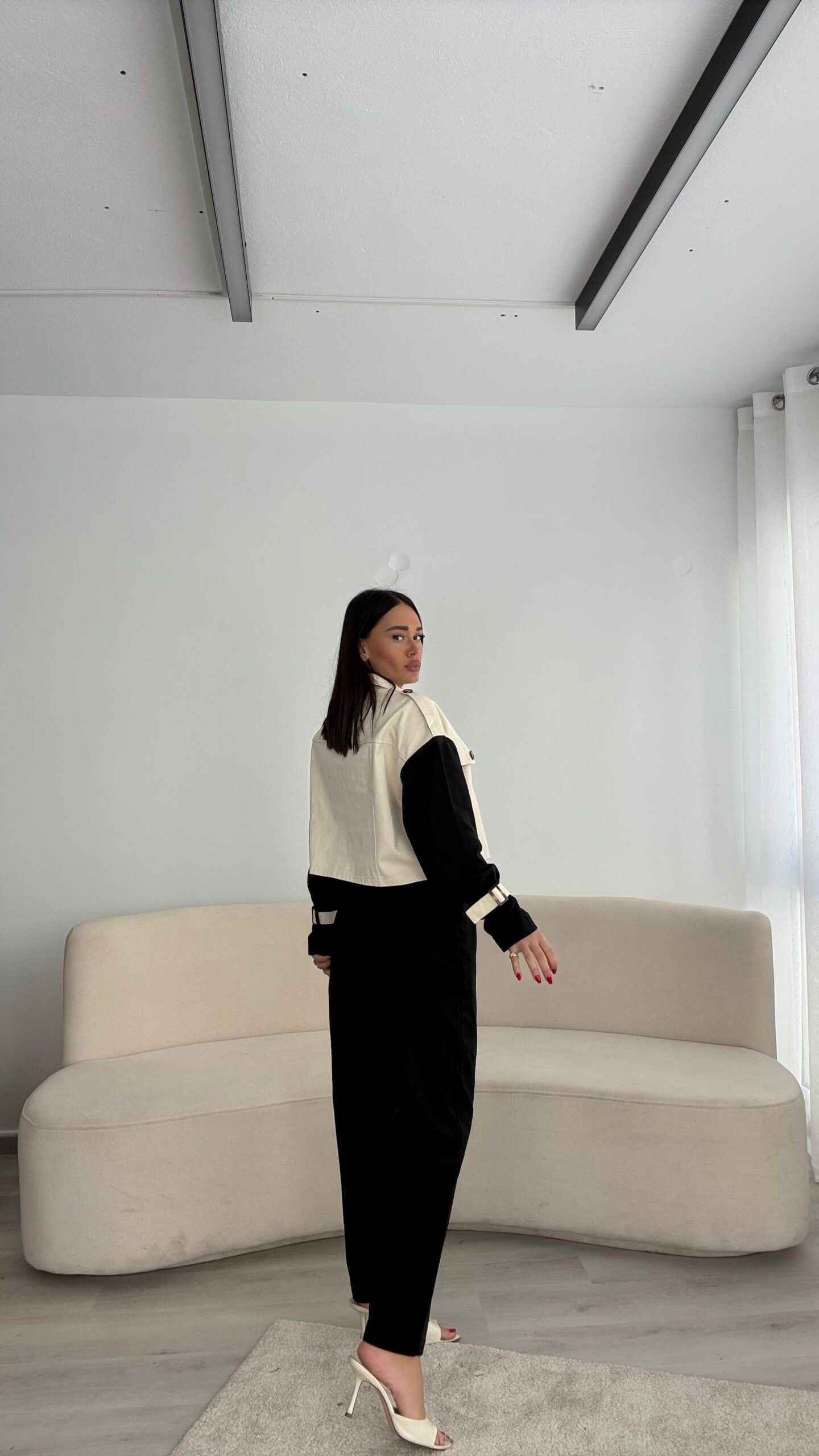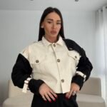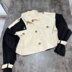 Xhaketë në prerje të lirshme në trajtë pardesyje të shkurtër. Me shirita në pjesën e supeve dhe shirita shtrëngues tek duart.