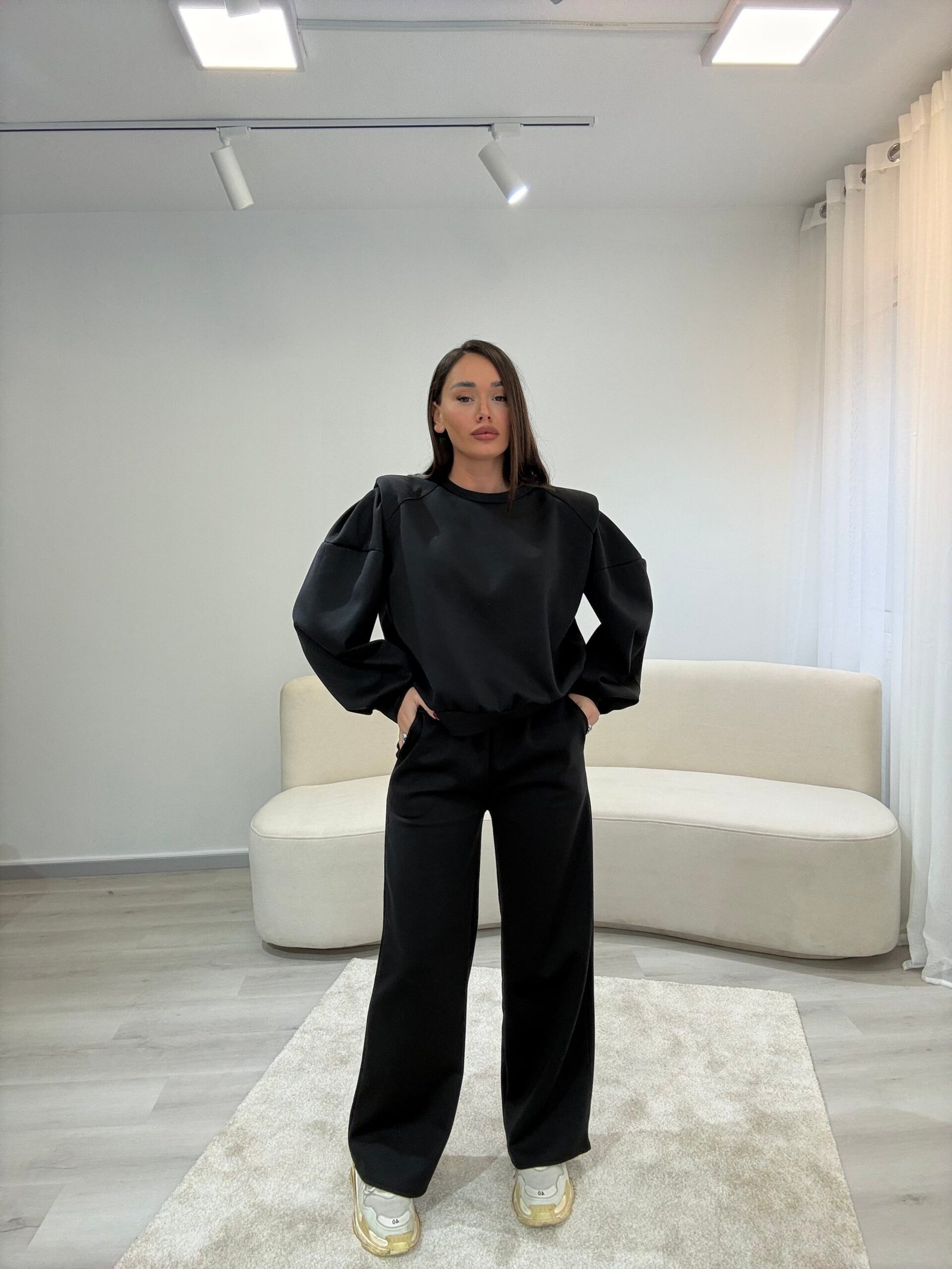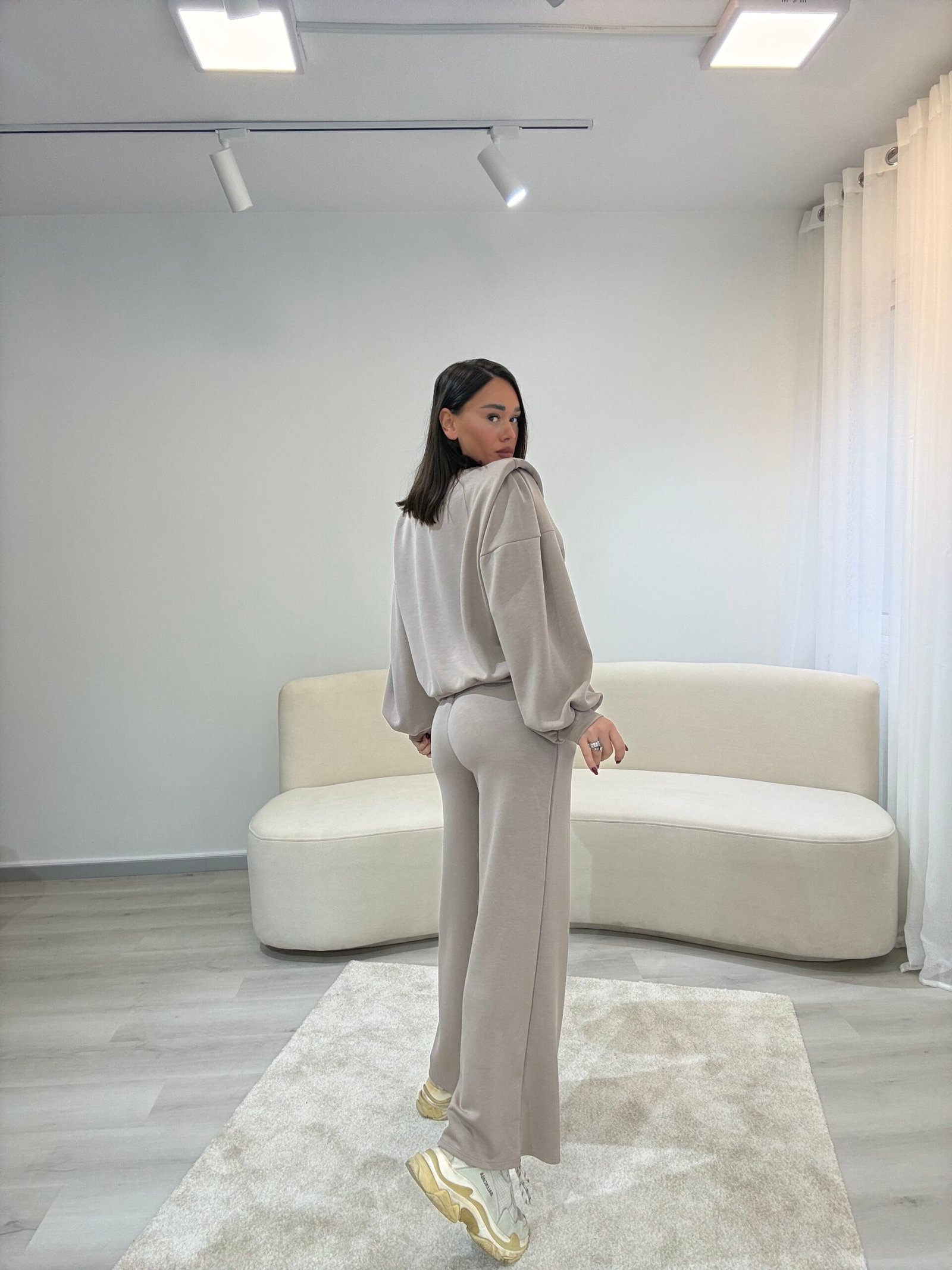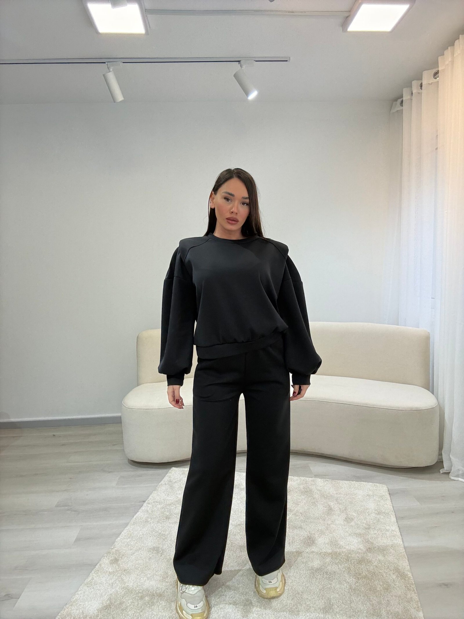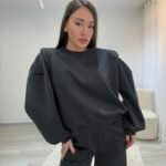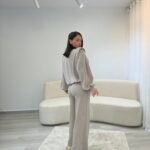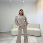 Set modern dhe minimalist me pantallona të gjera dhe bluzë me prerje të relaksuar, ideal për përditshmëri aktive dhe stil urban. Material i butë dhe komod që ofron rehati maksimale, duke ruajtur një pamje të pastër dhe elegante për çdo moment të ditës.