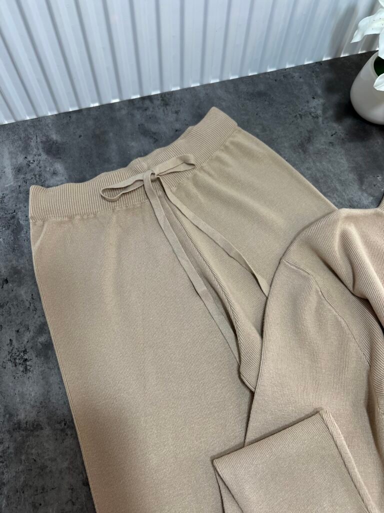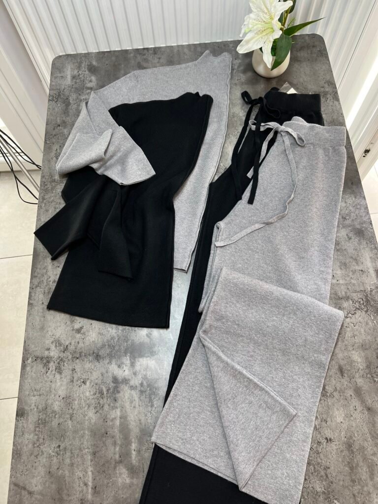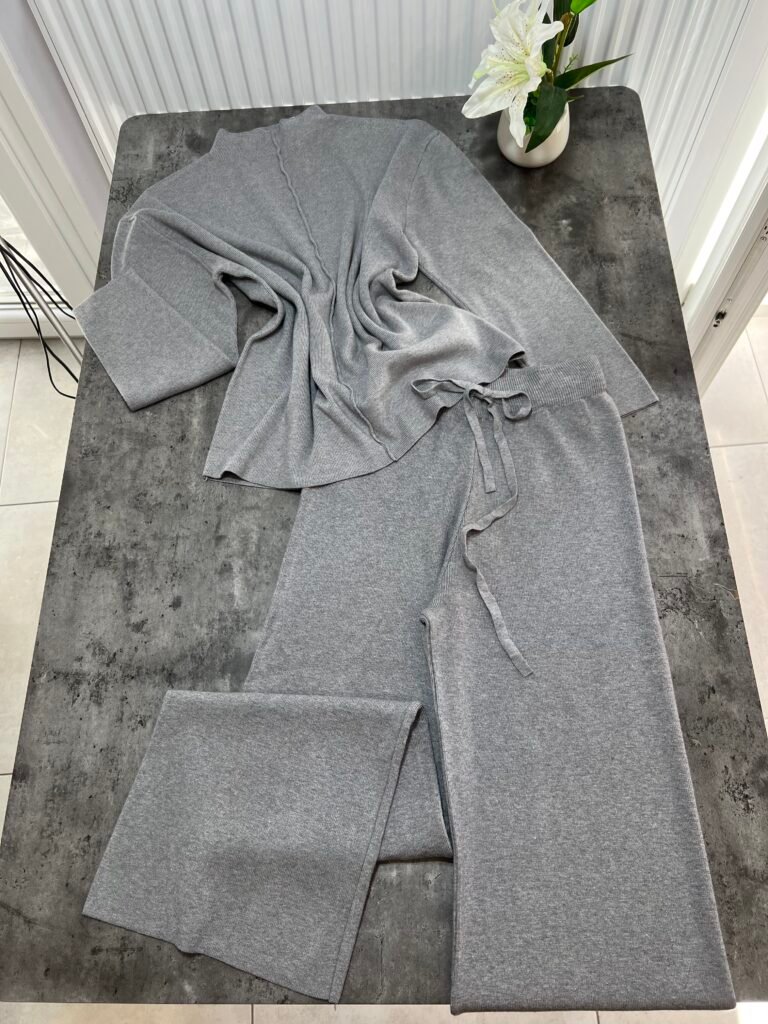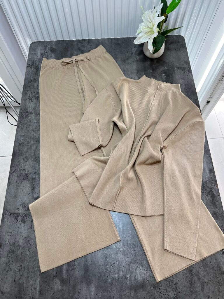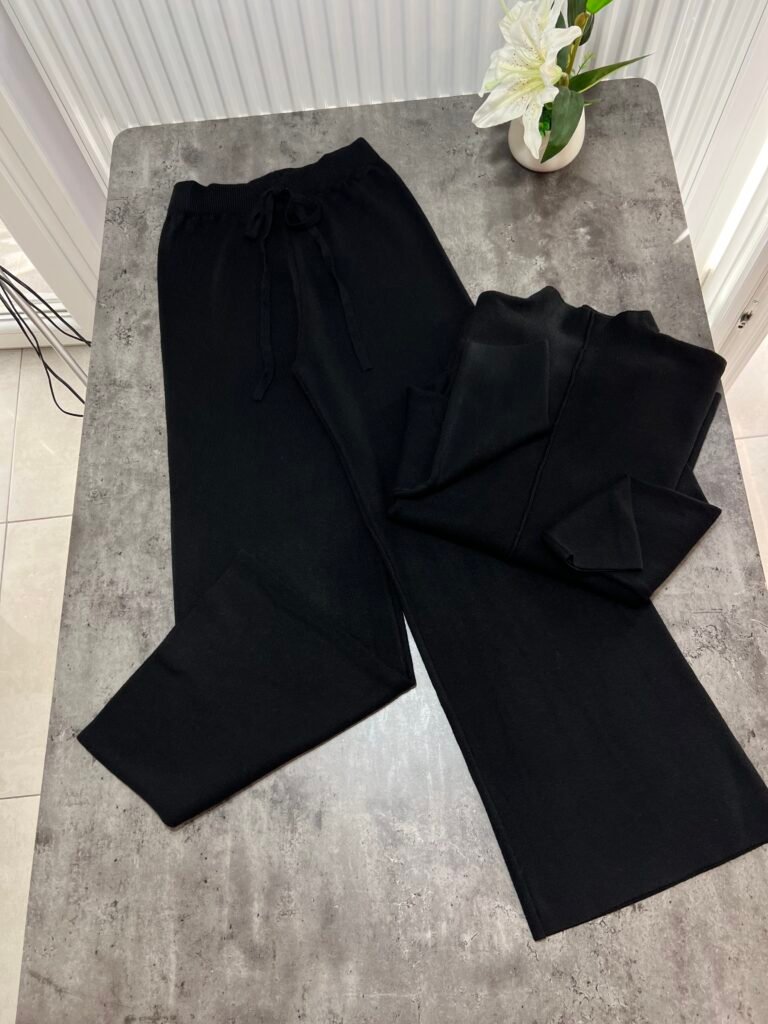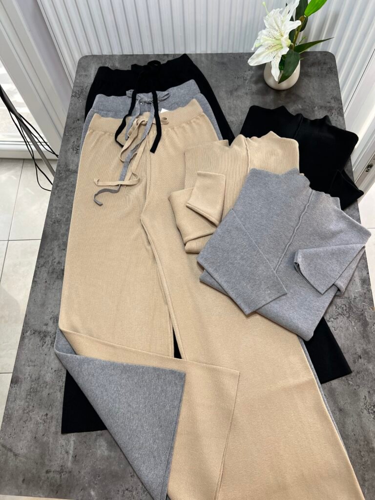 Pantallona me bel të lartë në prerje paralel. Me llastik dhe lidhëse ne pjesën e belit.
