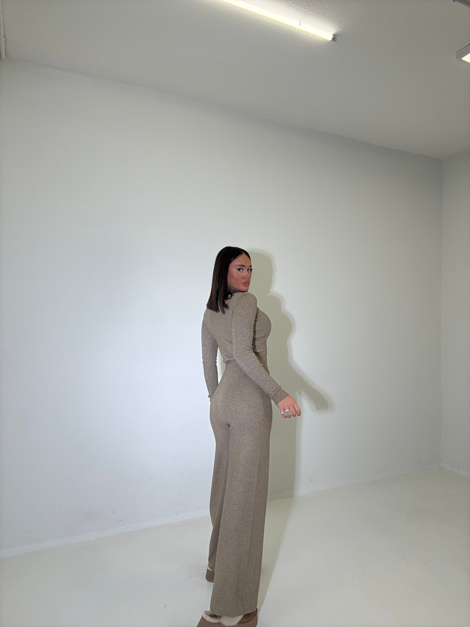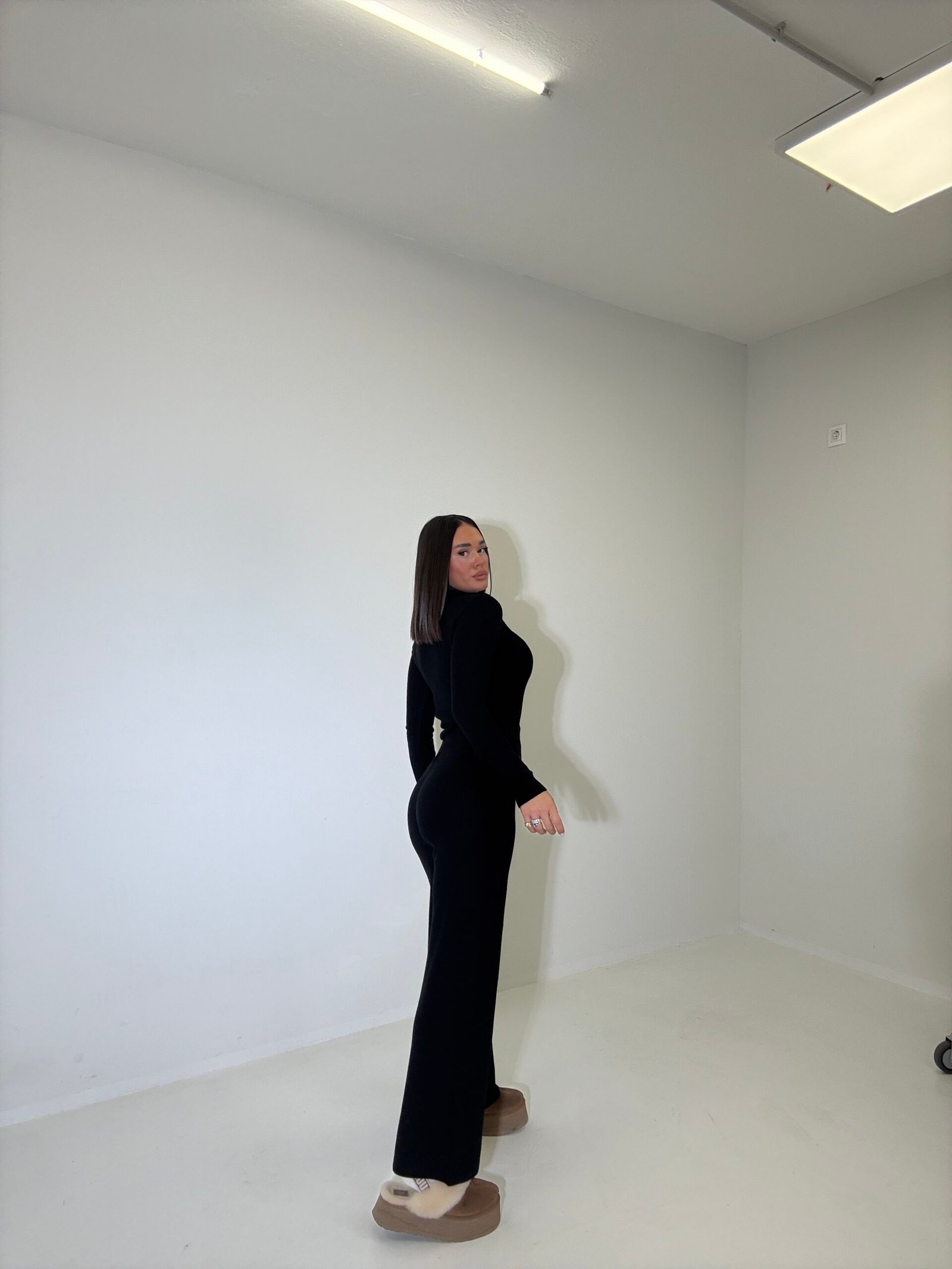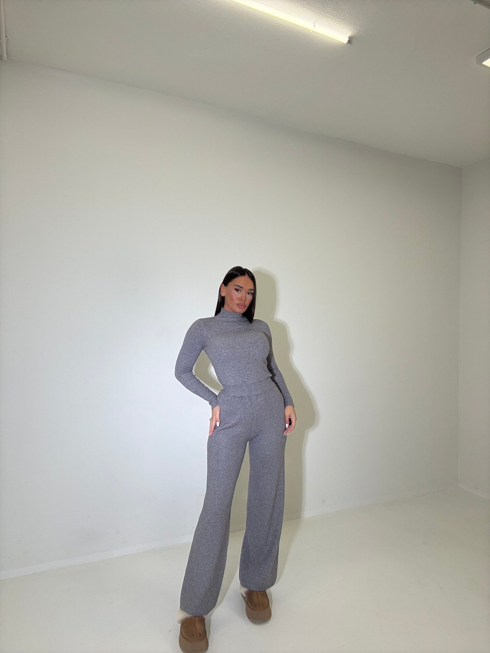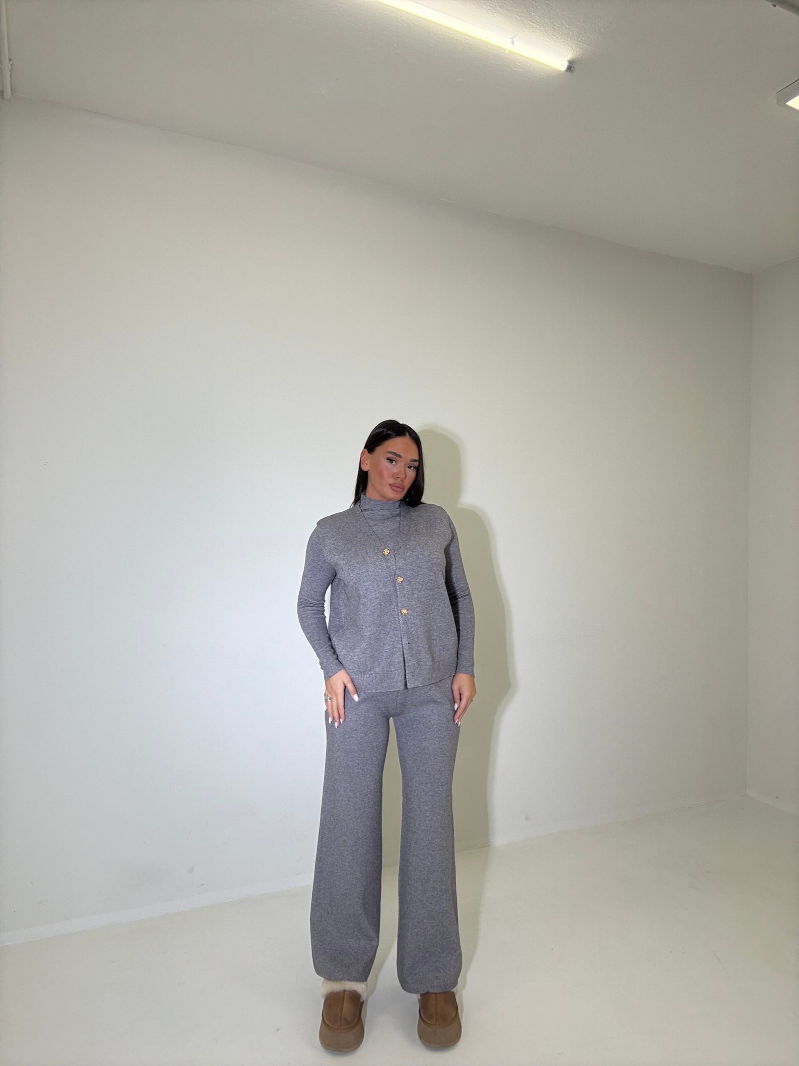 Set i butë dhe elegant me pantallona të gjata, golf të ngushtë dhe jelek me kopsa dekorative. Realizuar nga material elastik dhe i ngrohtë, ky set ofron rehati maksimale dhe pamje moderne për çdo ditë të ftohtë — perfekt për pamje “cozy chic”.