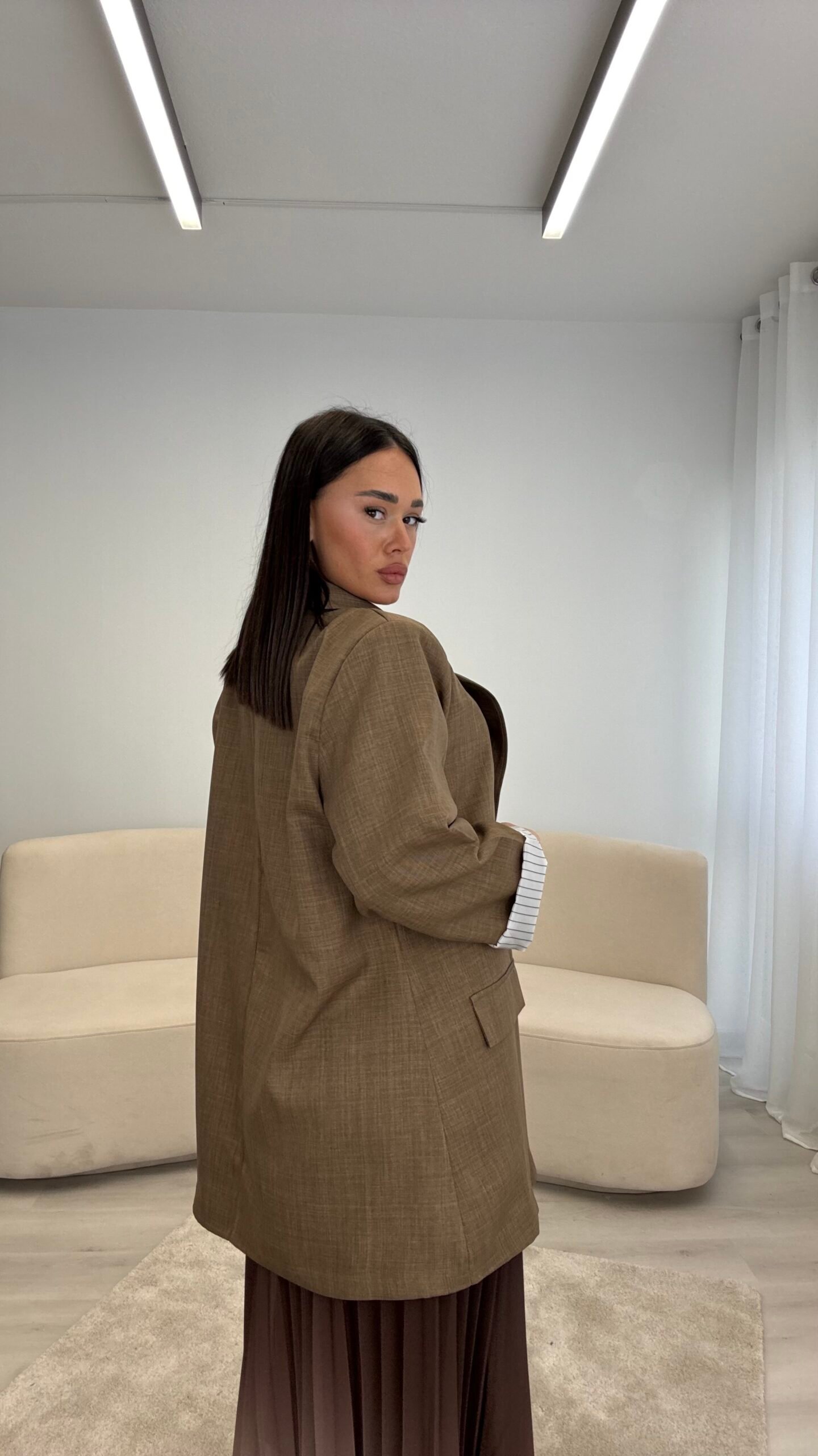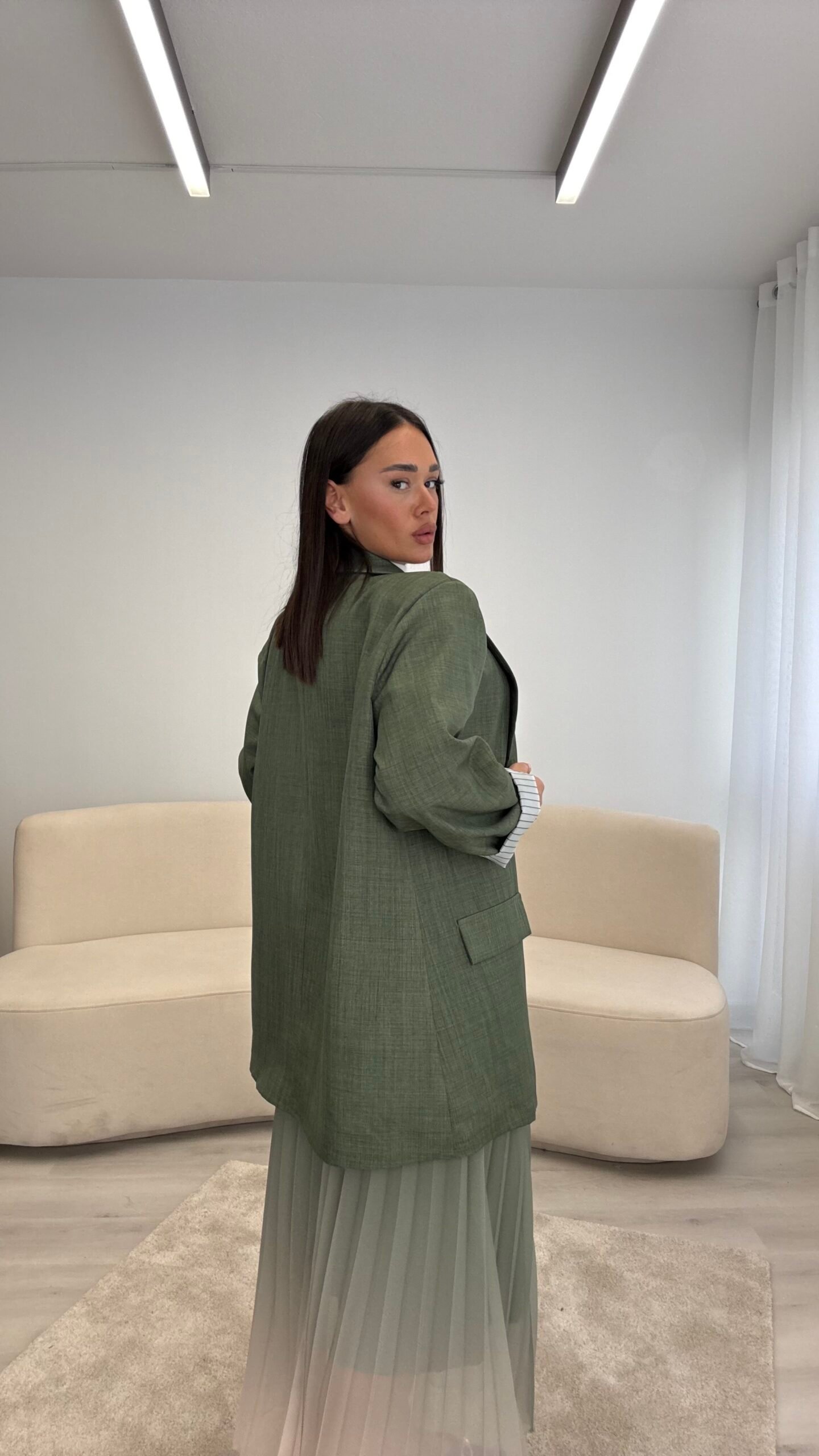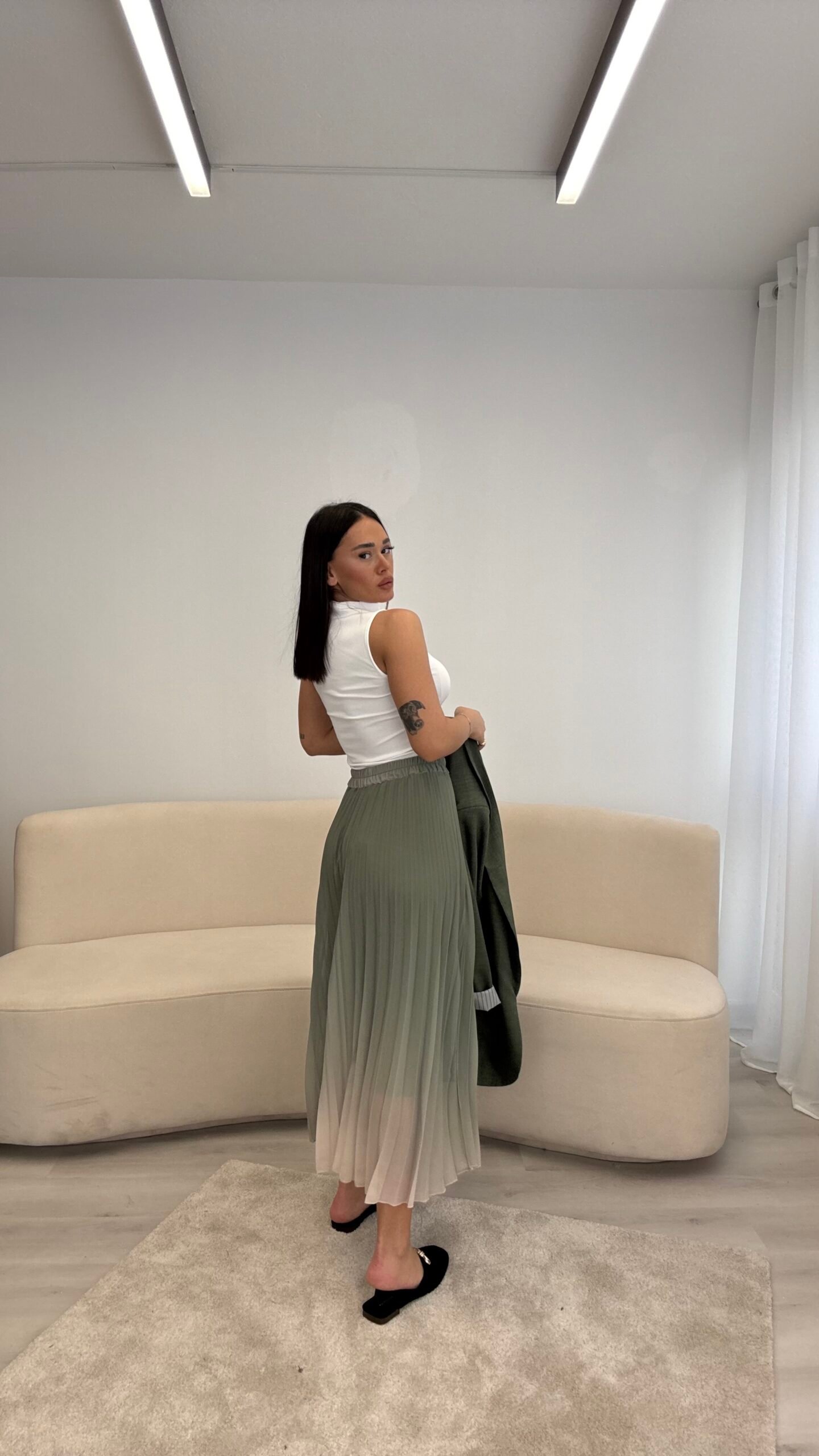 Set modern me xhaketë strukturuar dhe fund me pala me lëvizje fluide, i dizajnuar për një look elegant dhe të rafinuar. Pjesët mund të porositen edhe veçmas, duke ofruar fleksibilitet maksimal për kombinime të ndryshme. Ideal për outfit-e nga dita në darkë, me një balancë perfekte mes klasikes dhe trendit.