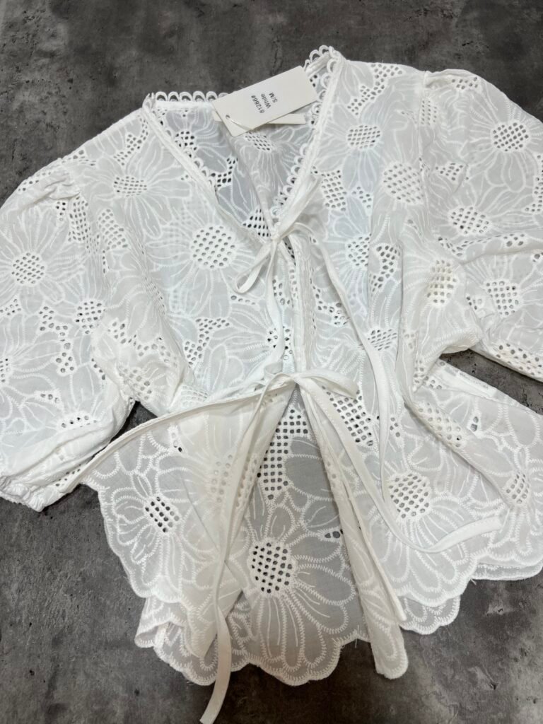 Këmishe me mënge të shkurtra e hapur përpara me mbërthim lidhësesh.