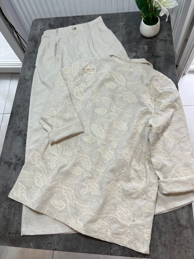 Pantallona me bel të lartë, në prerje paralel. Me llastik në pjesën e belit dhe vendosje për rrip.