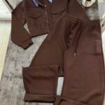 Ky komplet casual është perfekt për një stil modern dhe të rehatshëm. Përbëhet nga një triko me jakë këmishe me xhepa të mëdhenj përpara dhe pantallona të gjera me bel të lartë dhe lidhëse, duke ofruar komoditet gjatë gjithë ditës.