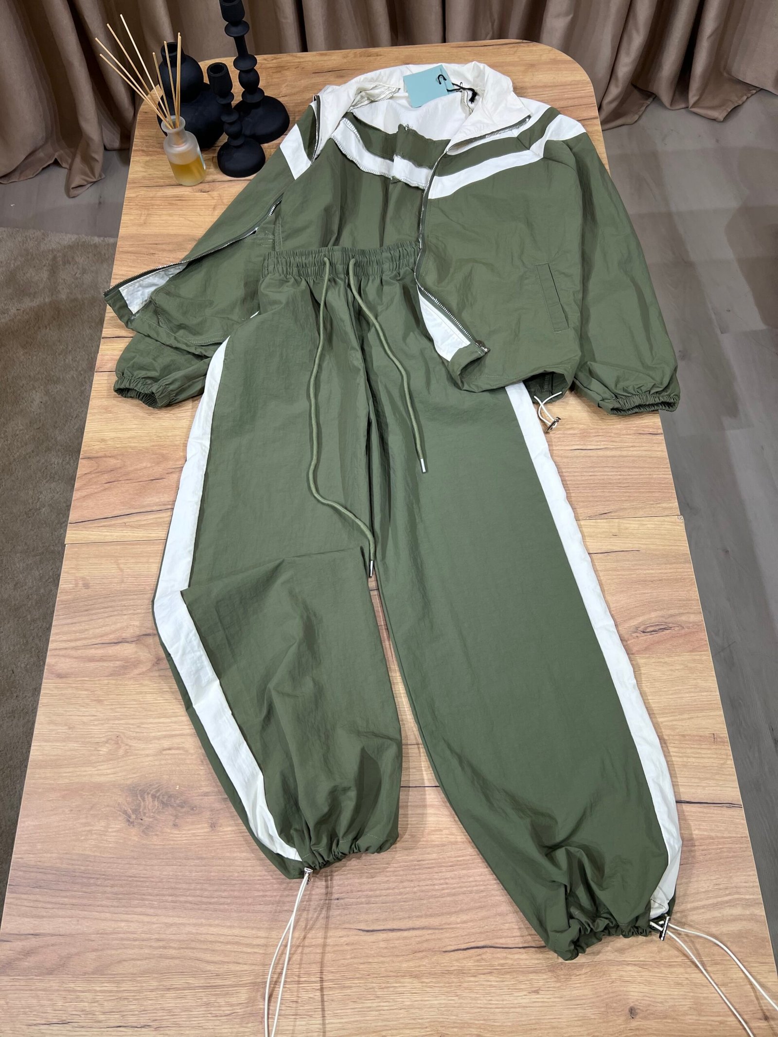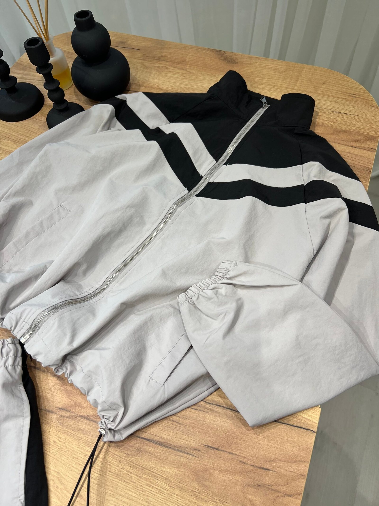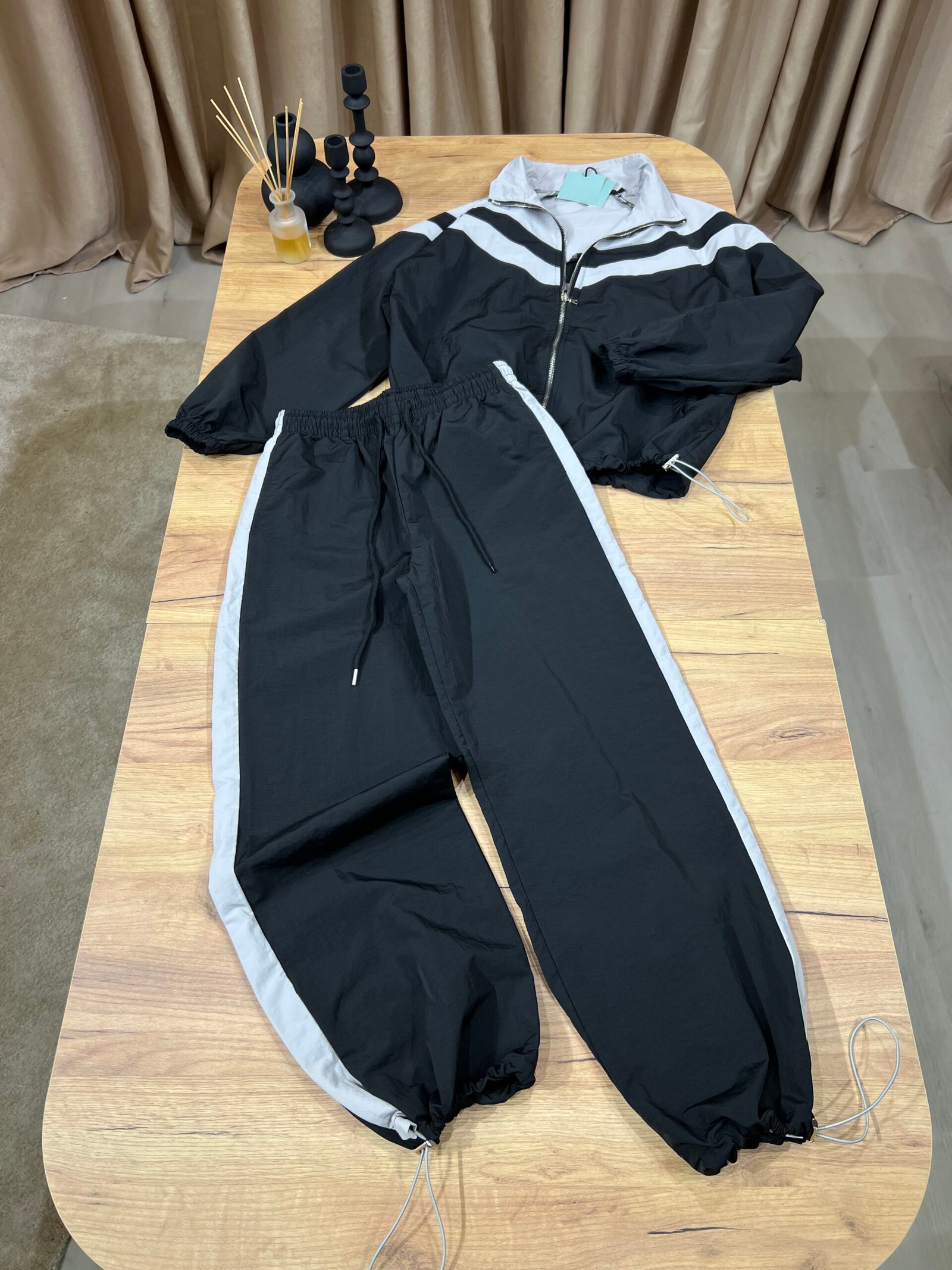 Set sportiv dy pjesësh, me xhaketë zip dhe pantallona me bel elastik, ideal për stil casual & streetwear. Dizajni modern me vija kontrasti anash i jep një look urban dhe sportiv, perfekt për pranverë, vjeshtë dhe ditë aktive. Material i lehtë, komod dhe praktik për përditshmëri, udhëtime apo kombinime sportive chic.