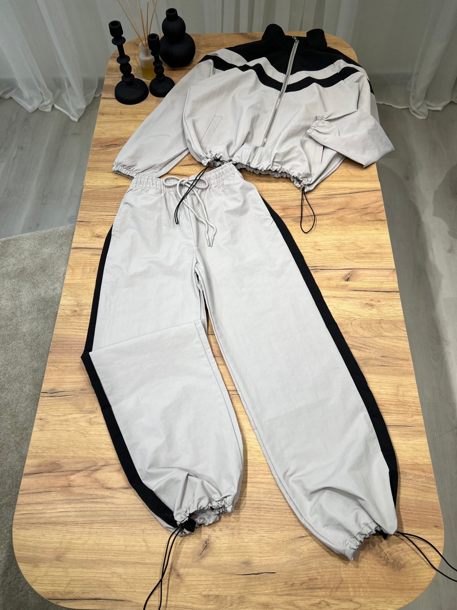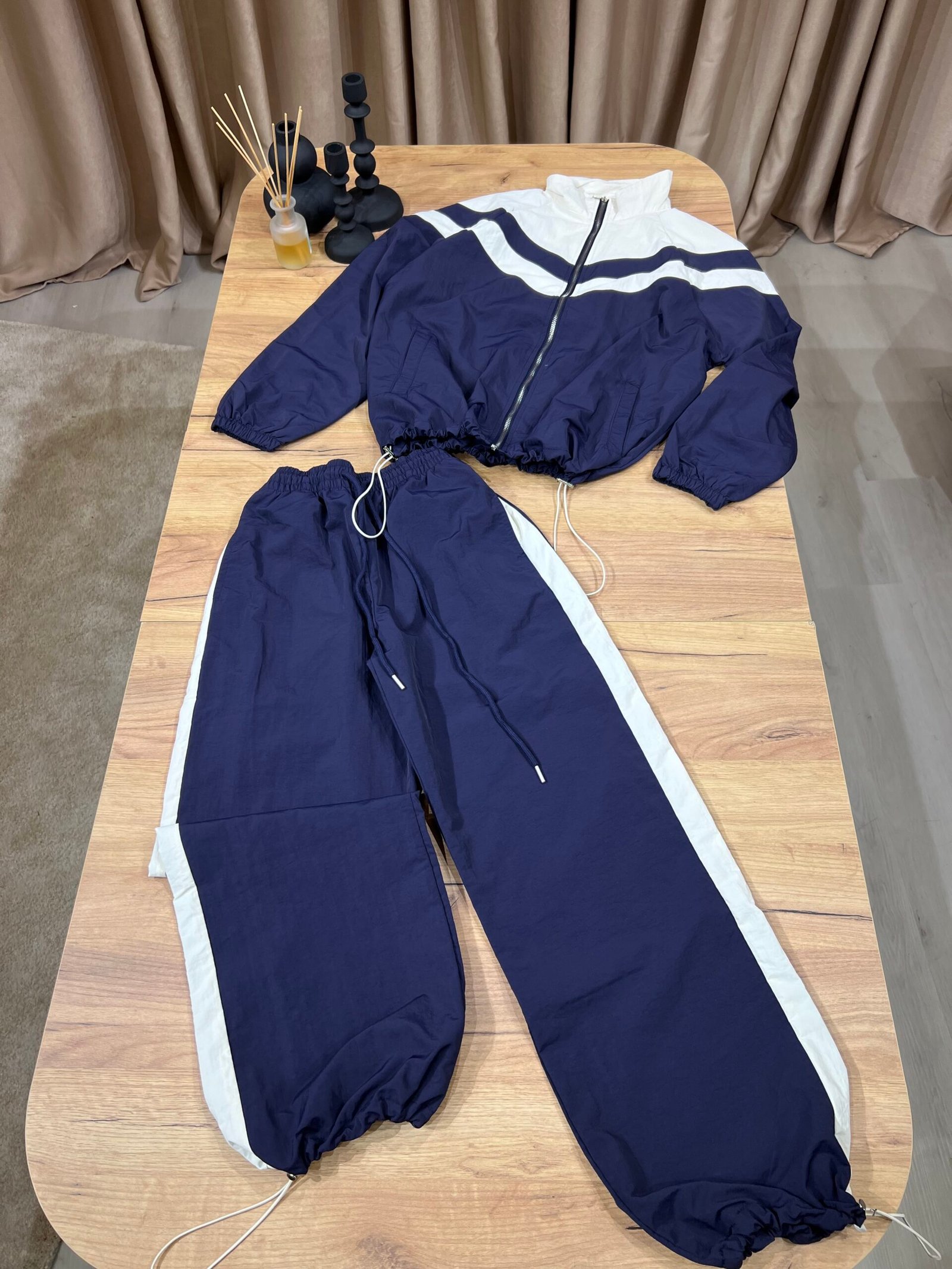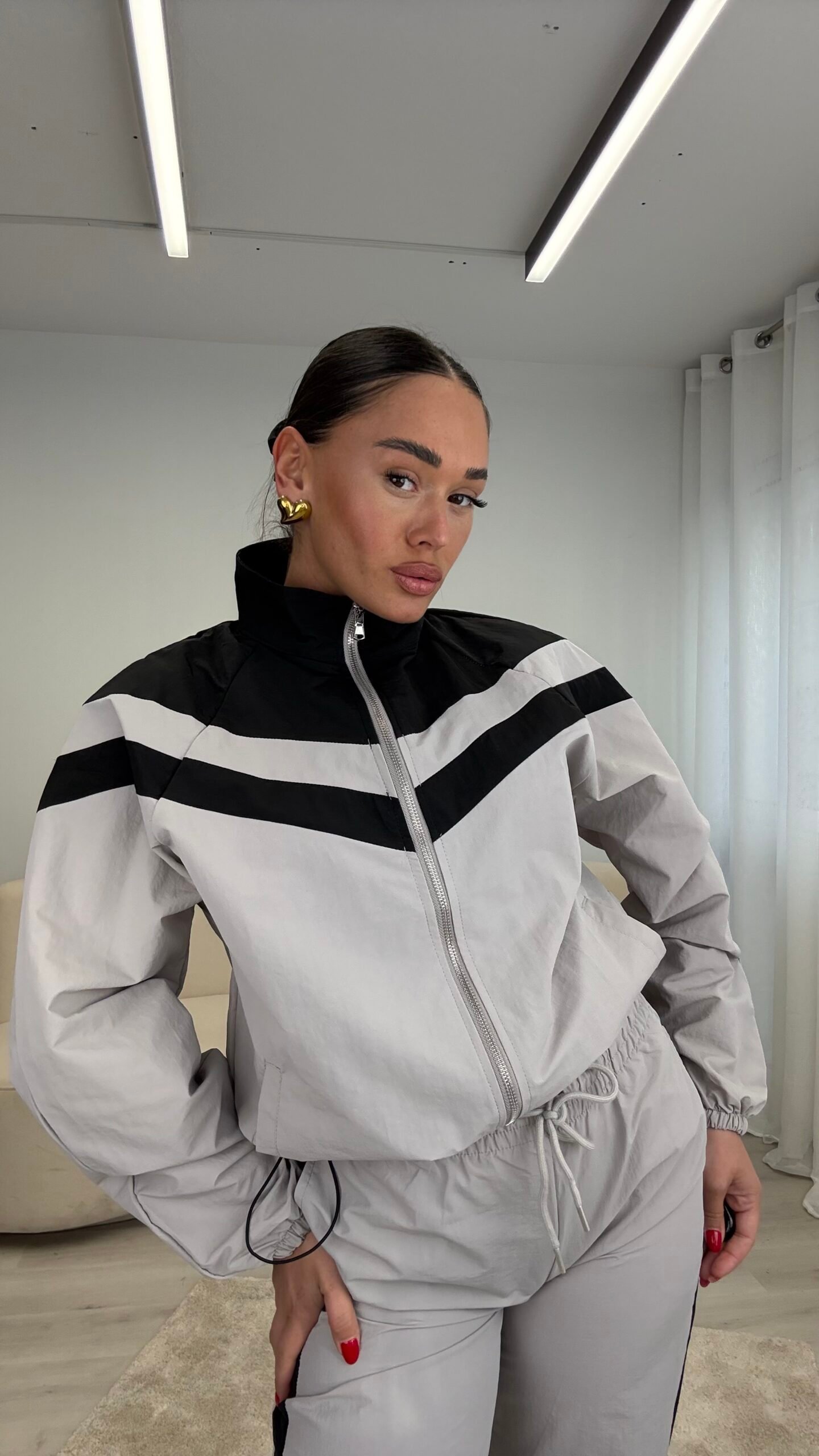 Set sportiv dy pjesësh, me xhaketë zip dhe pantallona me bel elastik, ideal për stil casual & streetwear. Dizajni modern me vija kontrasti anash i jep një look urban dhe sportiv, perfekt për pranverë, vjeshtë dhe ditë aktive. Material i lehtë, komod dhe praktik për përditshmëri, udhëtime apo kombinime sportive chic.