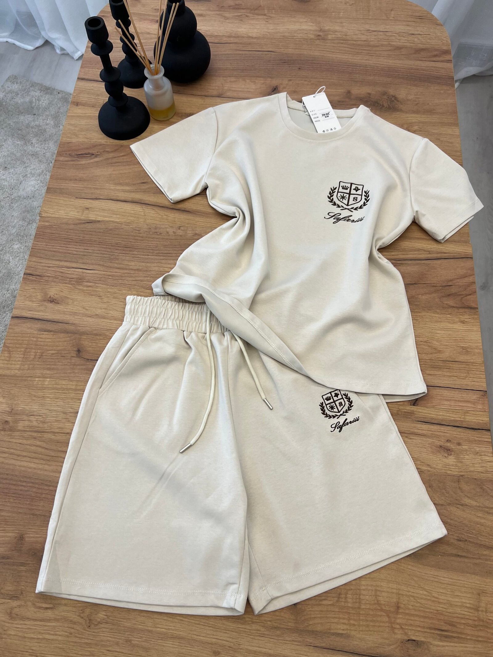 Set sportiv , i përbërë nga T-shirt dhe pantallona të shkurtra me bel elastik dhe lidhëse rregulluese. Material i butë, komod dhe i përshtatshëm për përdorim të përditshëm, dalje casual apo udhëtime. Dizajn minimalist me logo elegante që jep pamje “clean” dhe të kuruar. Zgjedhje ideale për rehati dhe stil në çdo moment.